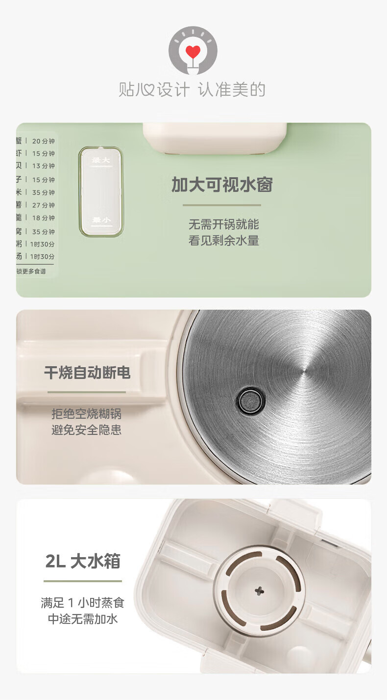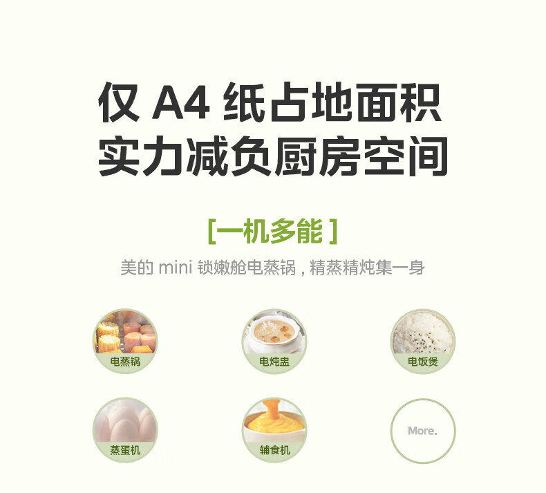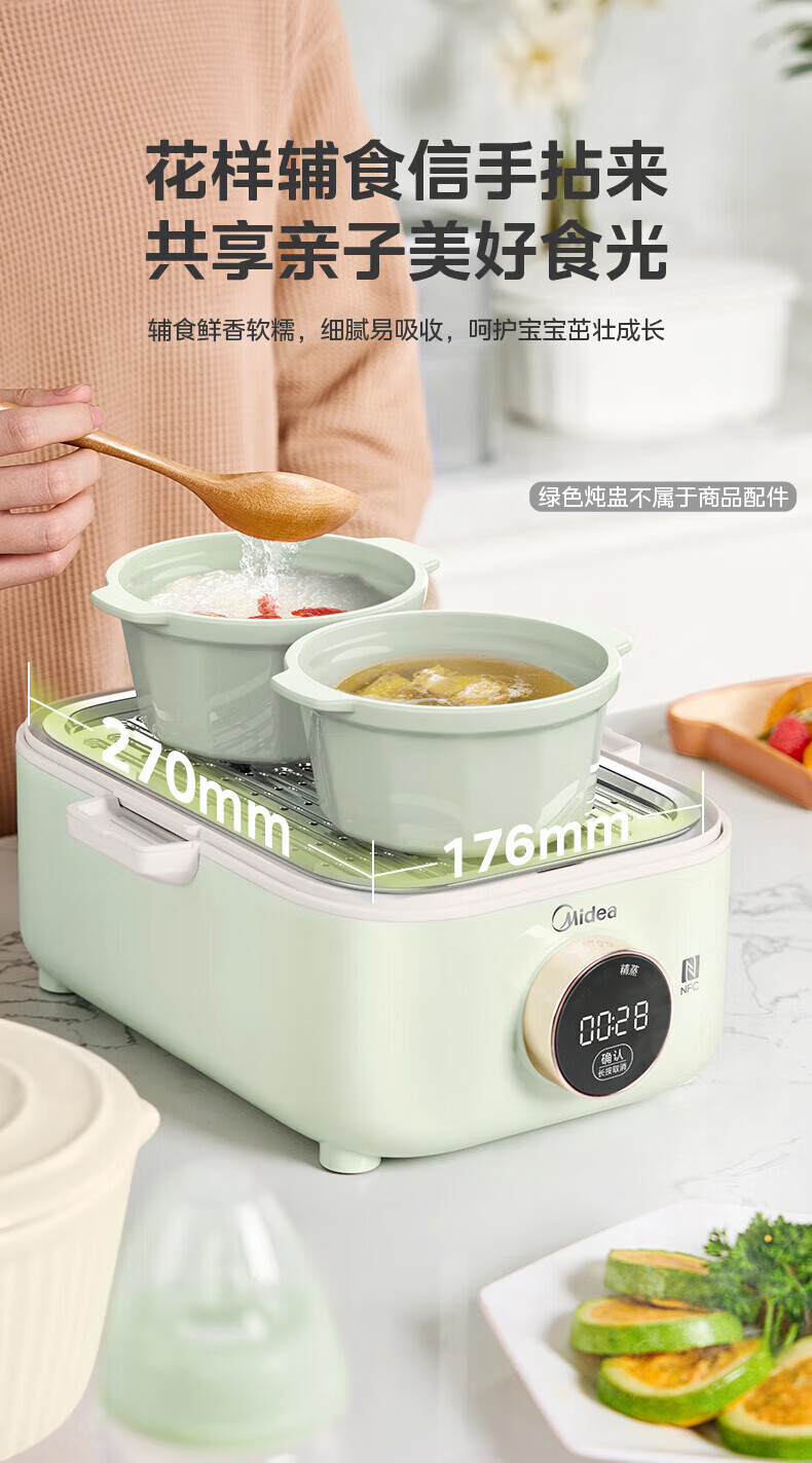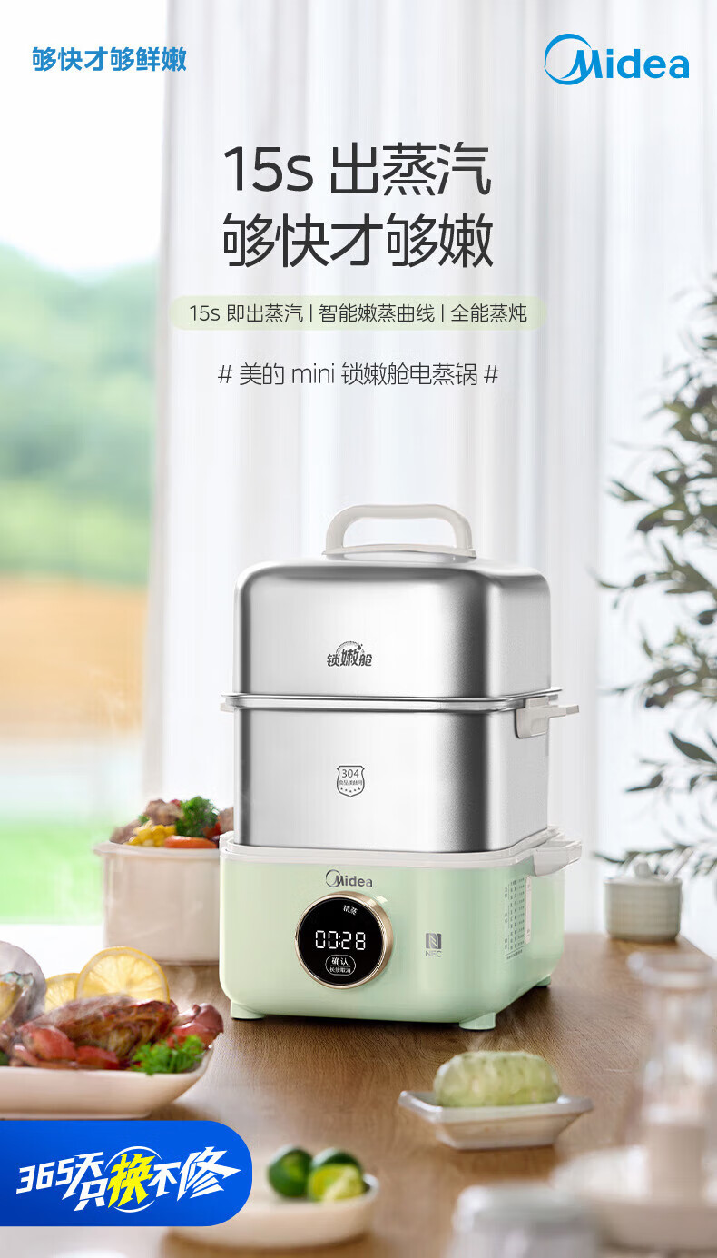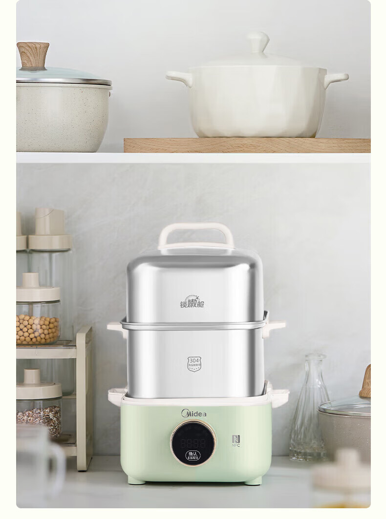 美的(Midea)锁嫩舱mini电蒸锅 多功能家用电锅蒸包子锅电热锅煮蛋器蒸炖锅不锈钢双层蒸笼大容量ZGC2818X99
