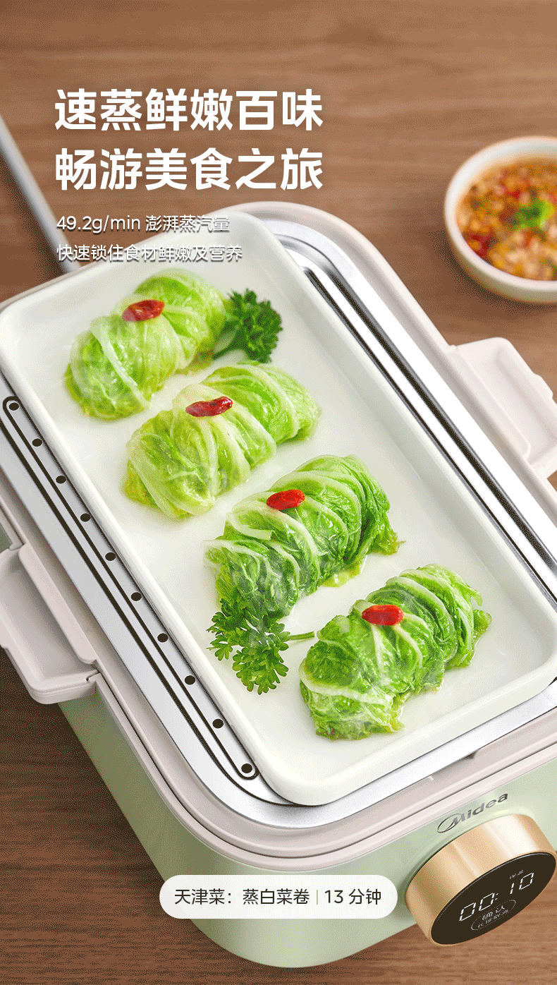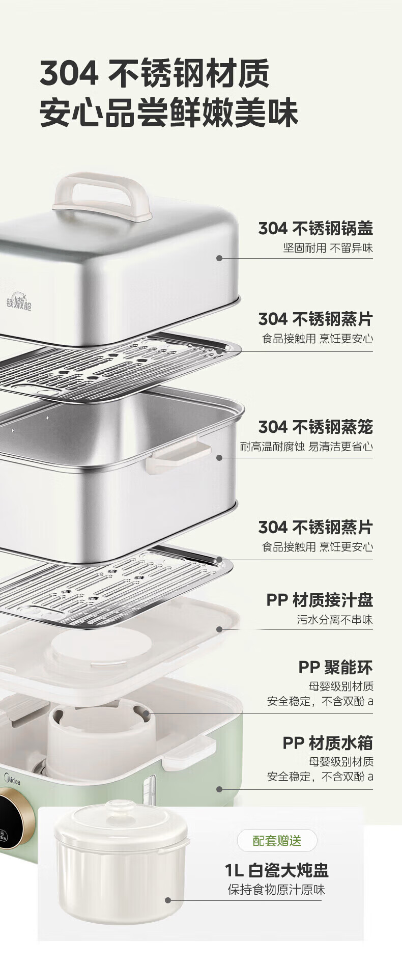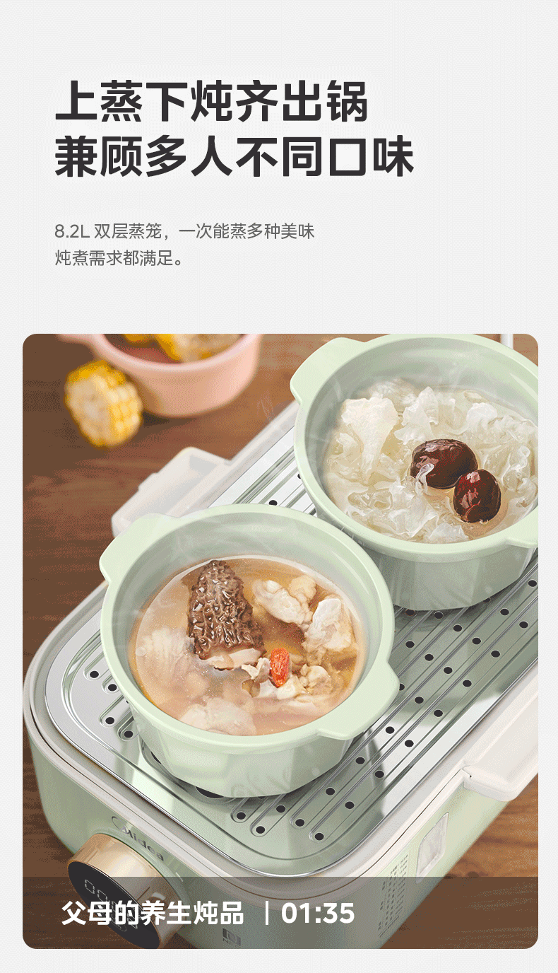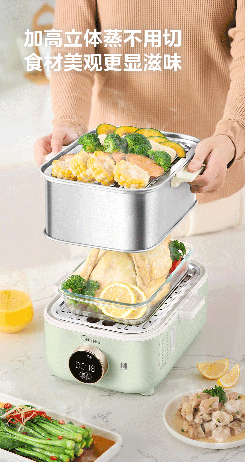美的(Midea)锁嫩舱mini电蒸锅 多功能家用电锅蒸包子锅电热锅煮蛋器蒸炖锅不锈钢双层蒸笼大容量ZGC2818X99