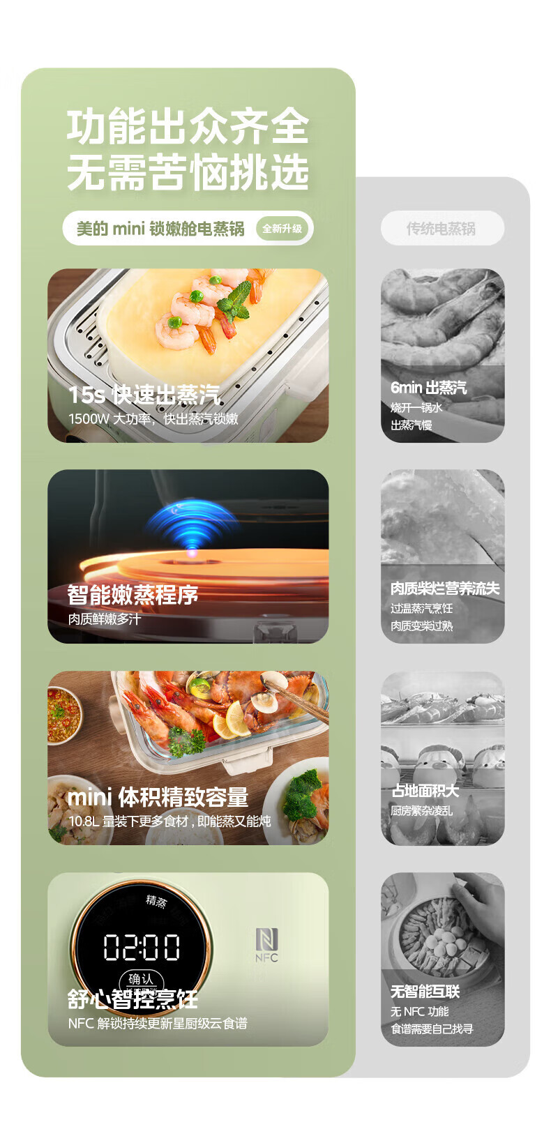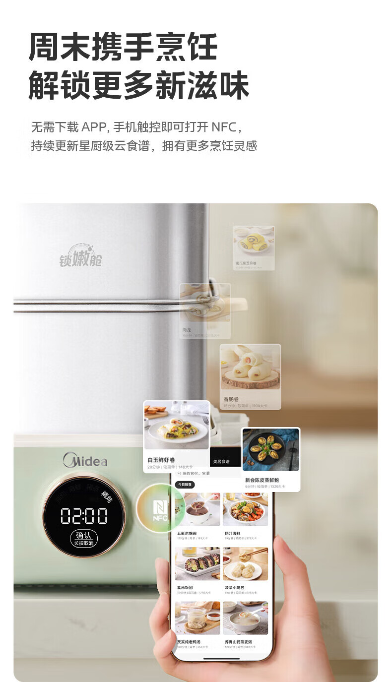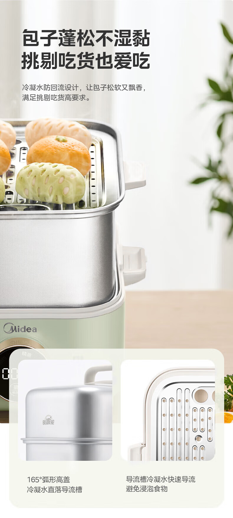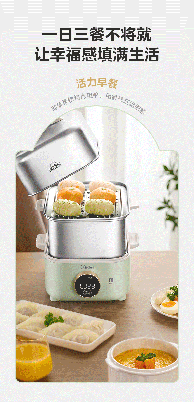 美的(Midea)锁嫩舱mini电蒸锅 多功能家用电锅蒸包子锅电热锅煮蛋器蒸炖锅不锈钢双层蒸笼大容量ZGC2818X99