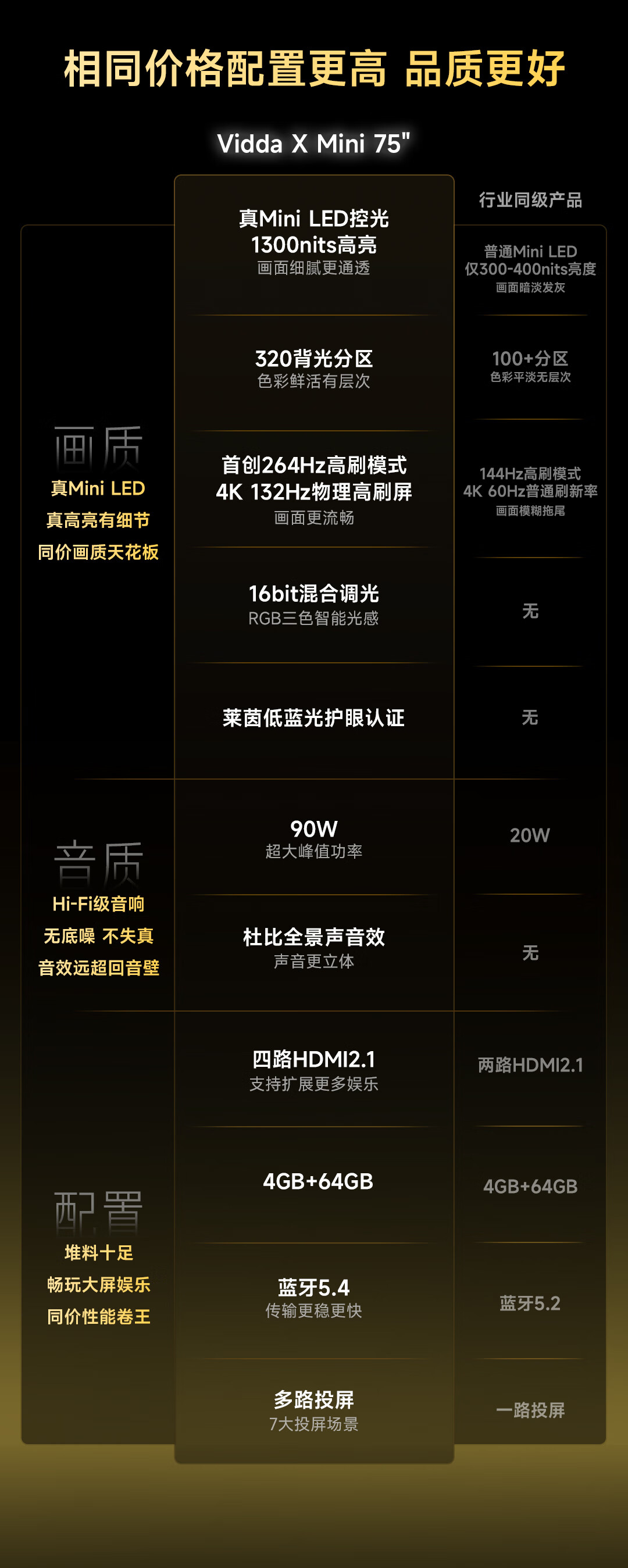 Vidda X Mini 75英寸 海信电视 Mini LED 高刷 一级能效以旧换新家电国家补贴游戏液晶电视75V1ND-X
