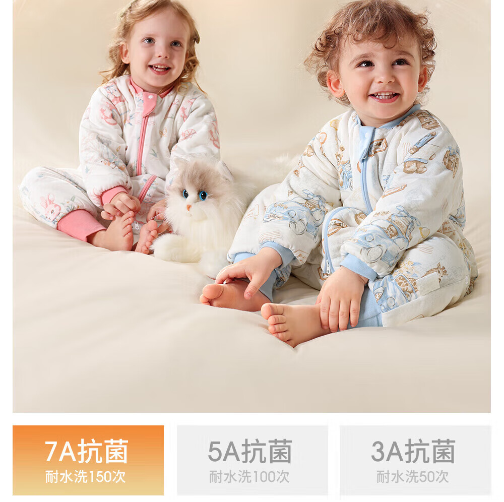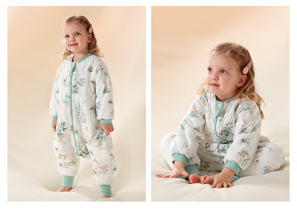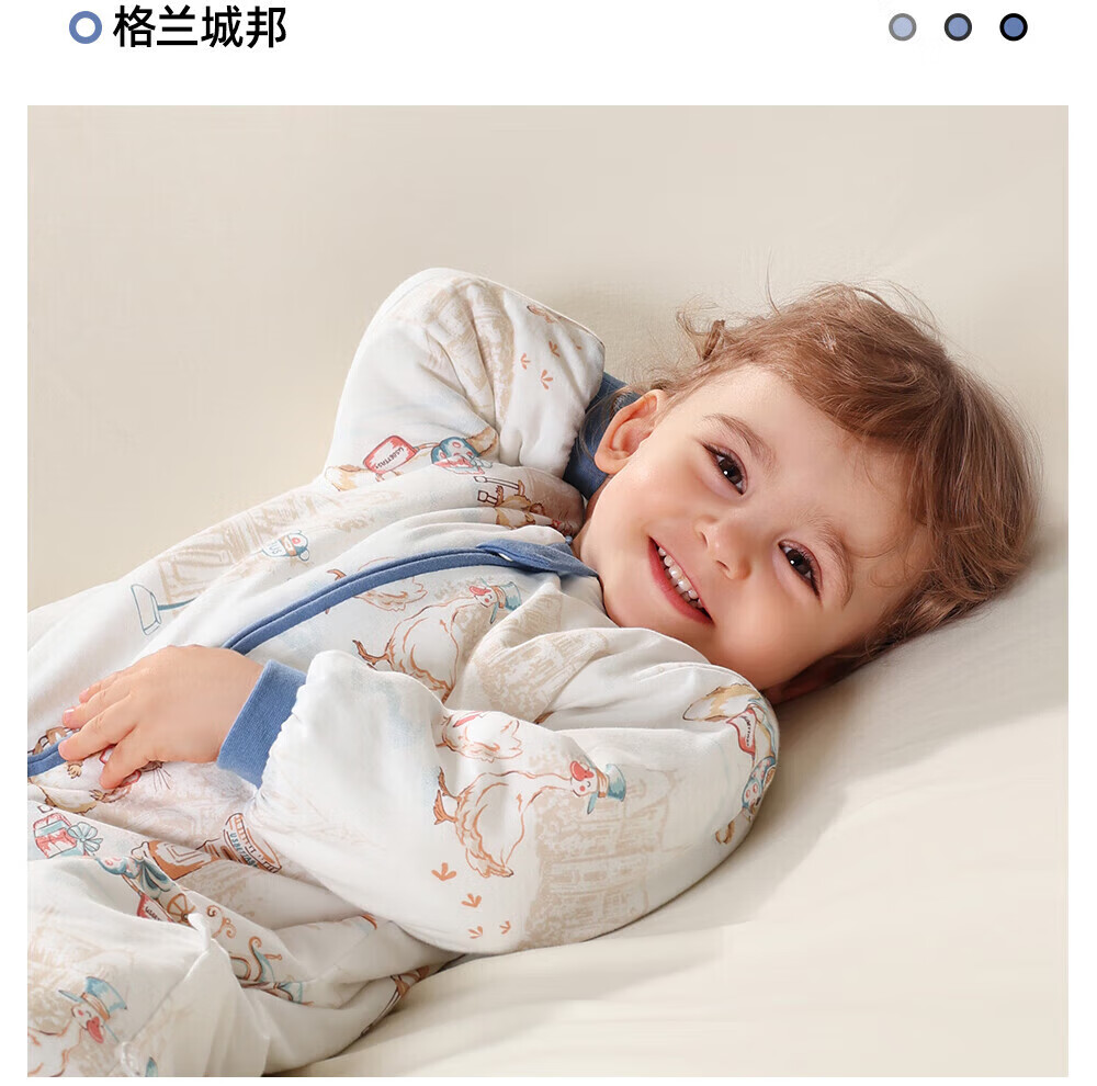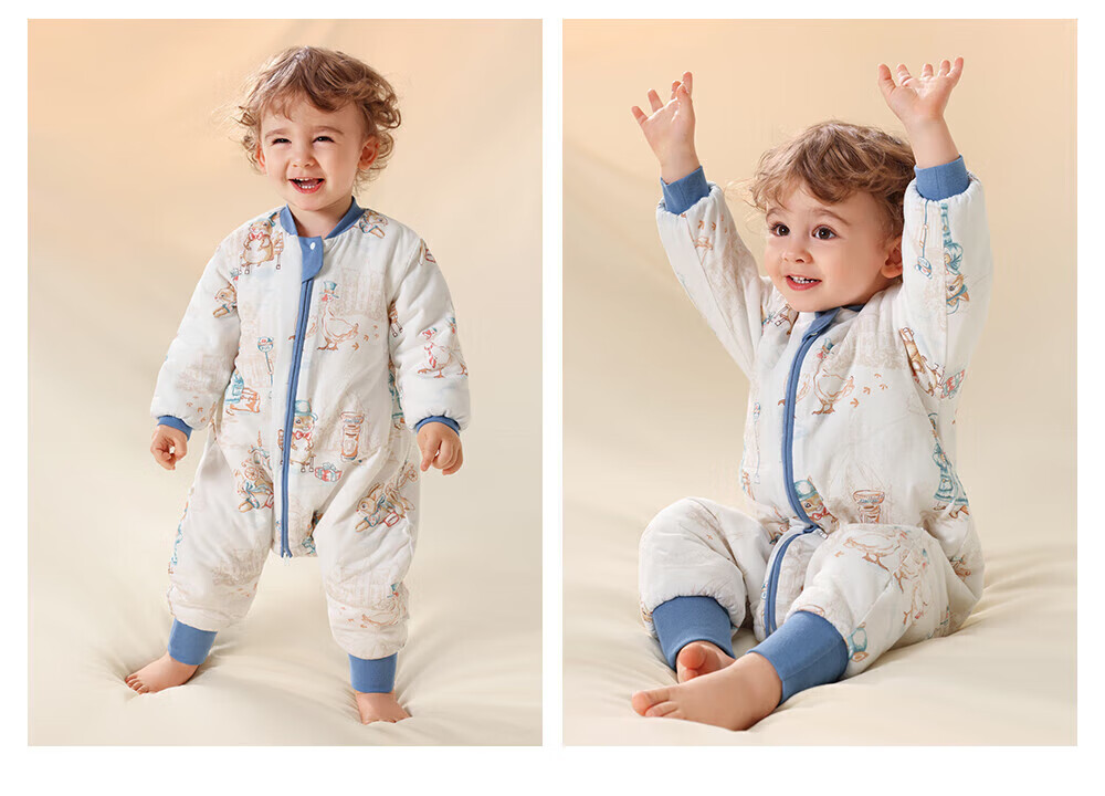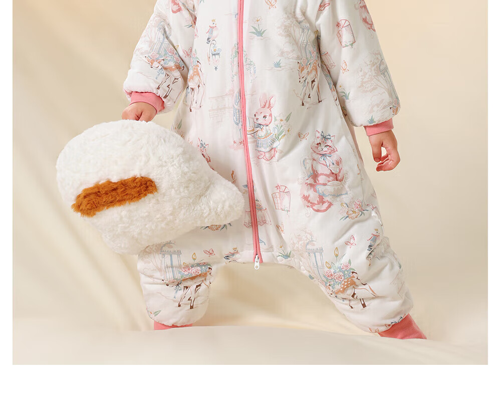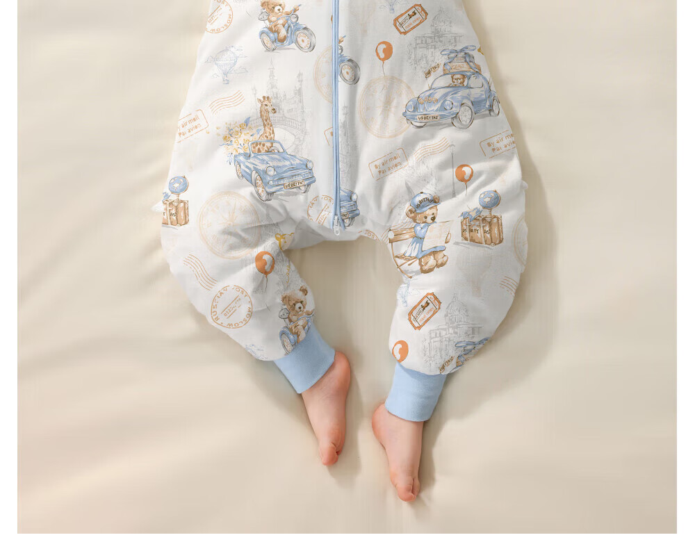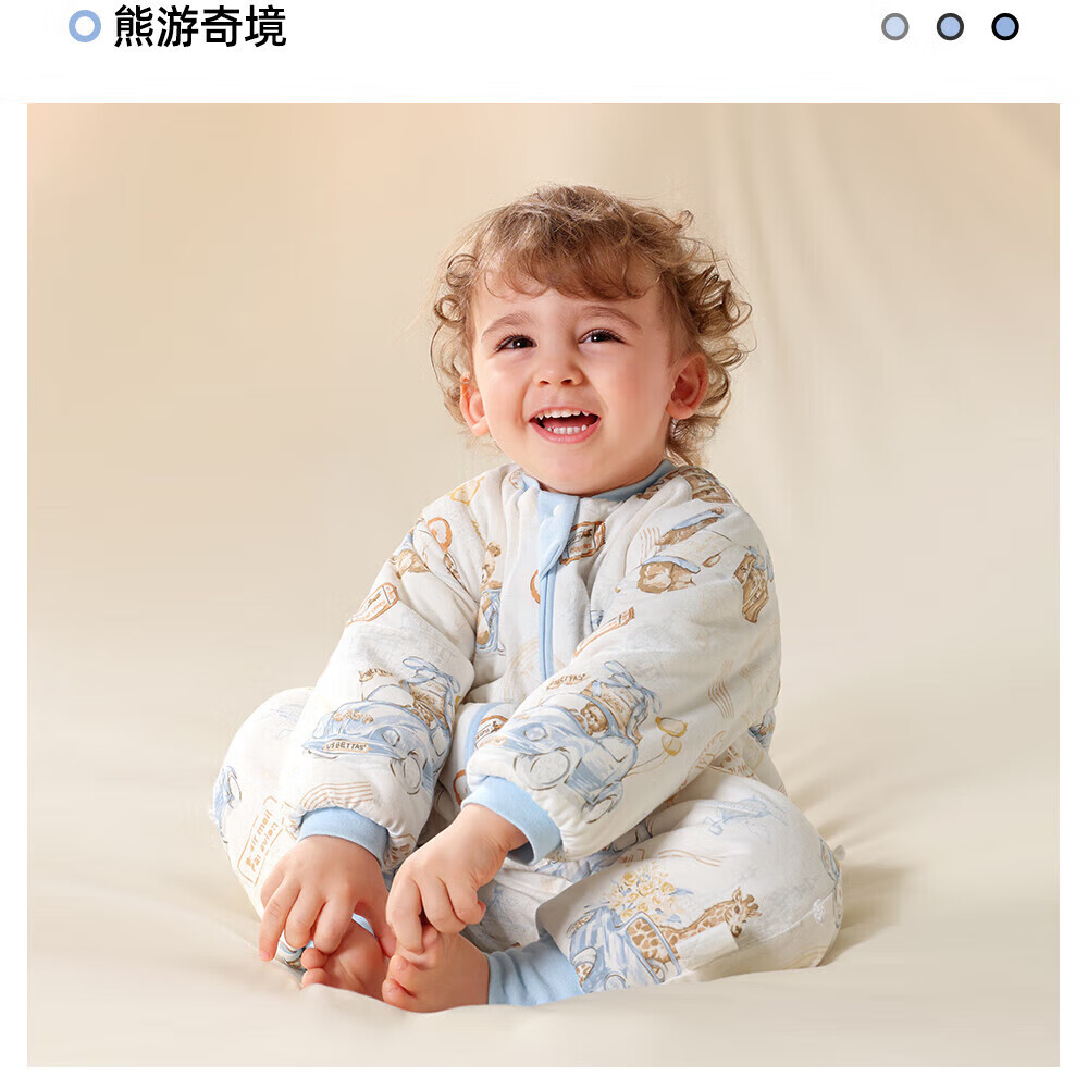 贝肽斯睡袋婴儿春秋季儿童宝宝3-6岁纯棉分腿式防踢被保暖防惊跳连体衣 熊游奇境【春秋双层 20-26°C】猫肚棉 M码 建议身高80-95cm建议1.5-2.5岁