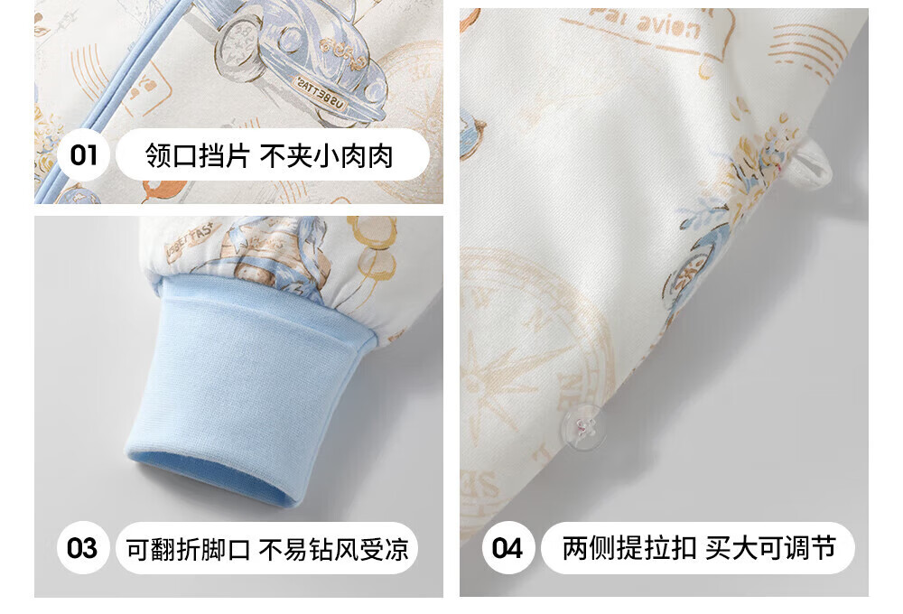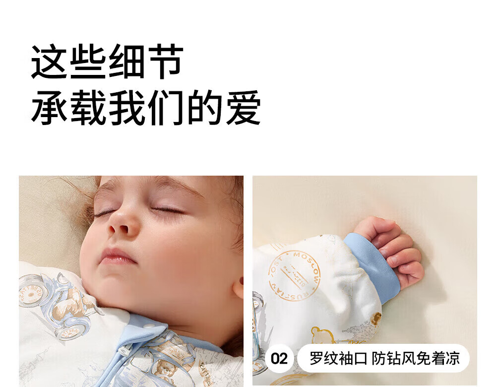 贝肽斯肽柔婴儿睡袋春秋冬新生儿童防踢被分腿感温标识春夏季防惊跳包被 春秋双层-感温(20-26℃)飞驰 M码 80-95cm(建议1.5-2.5岁)