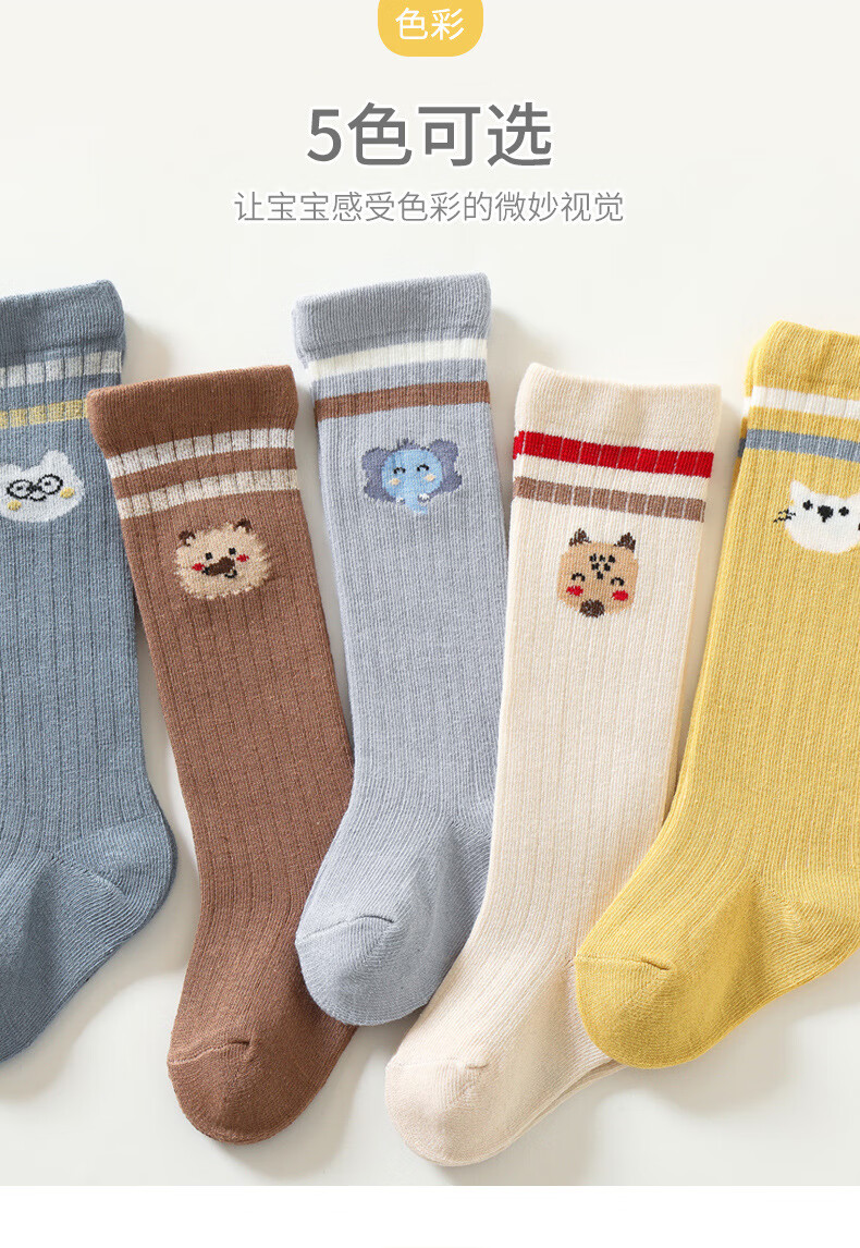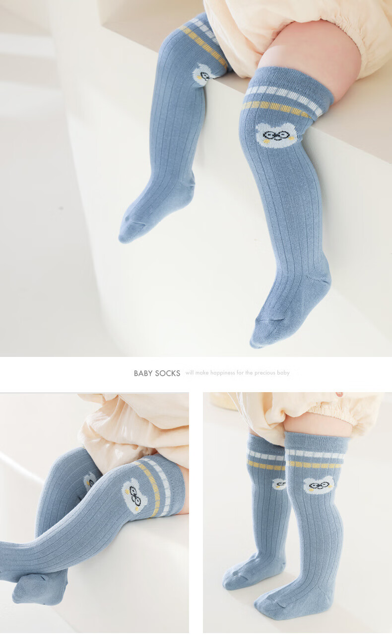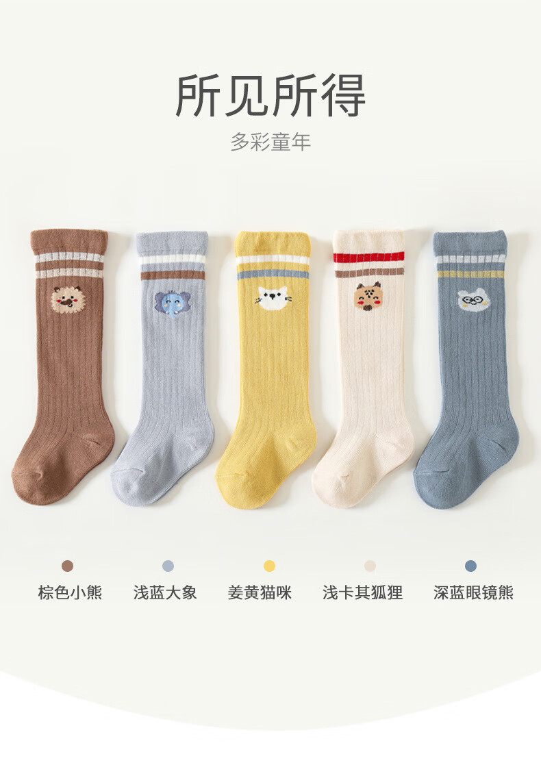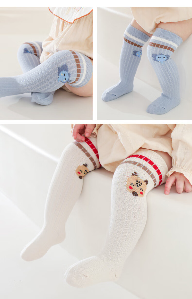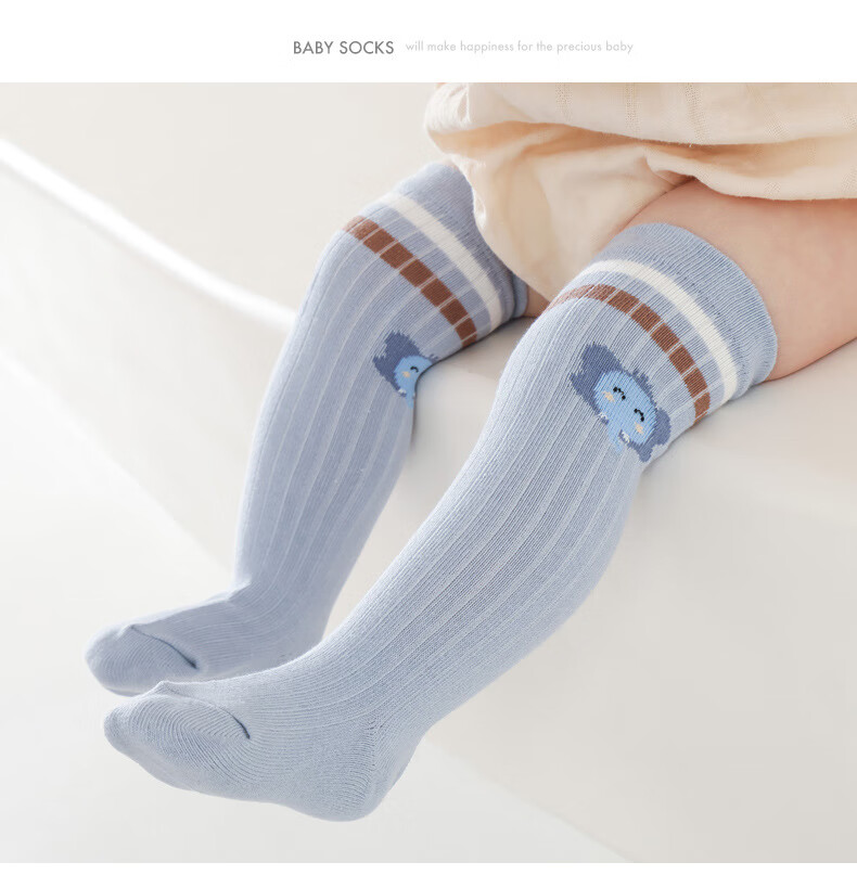 彩虹房子婴儿长筒袜学院风儿童小腿袜卡通条纹袜动物学生高筒袜 卡通条纹袜男孩款 3双 6-12月 (M) (参考脚长约12cm)