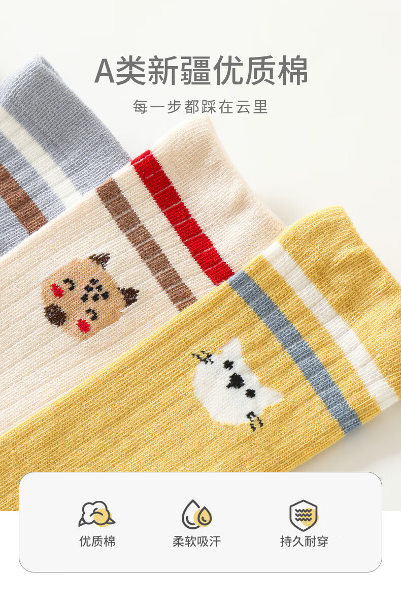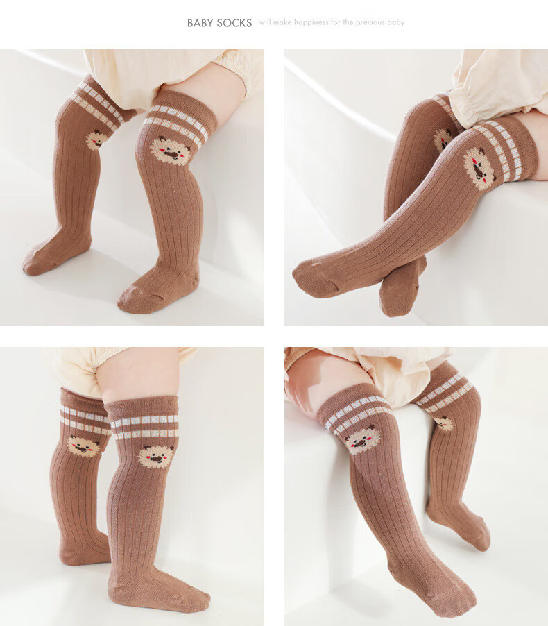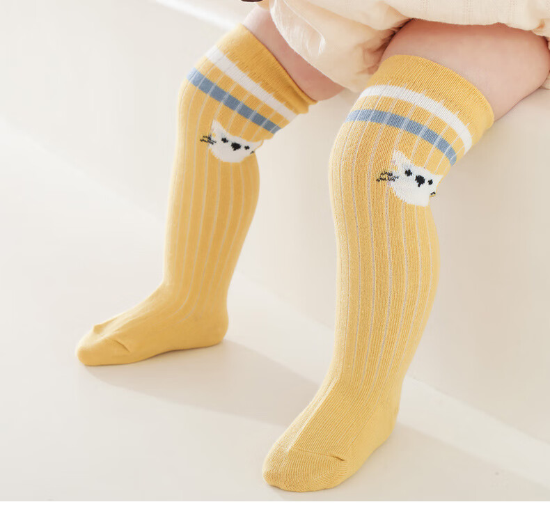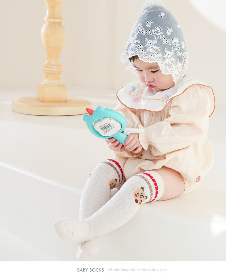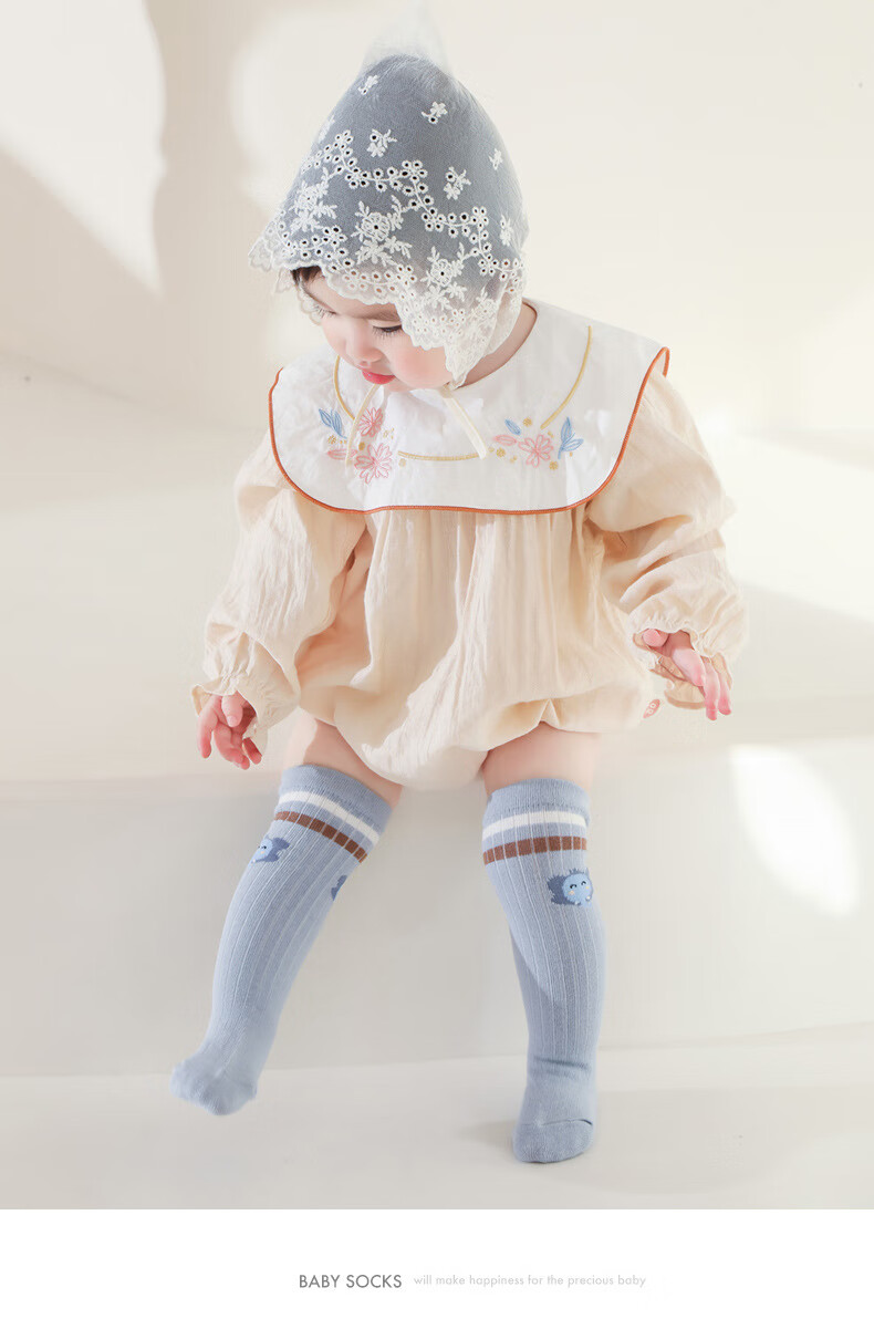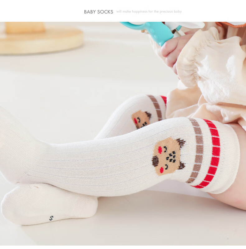 彩虹房子婴儿长筒袜学院风儿童小腿袜卡通条纹袜动物学生高筒袜 卡通条纹袜男孩款 3双 6-12月 (M) (参考脚长约12cm)