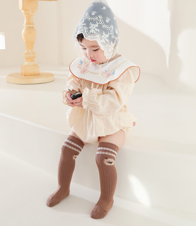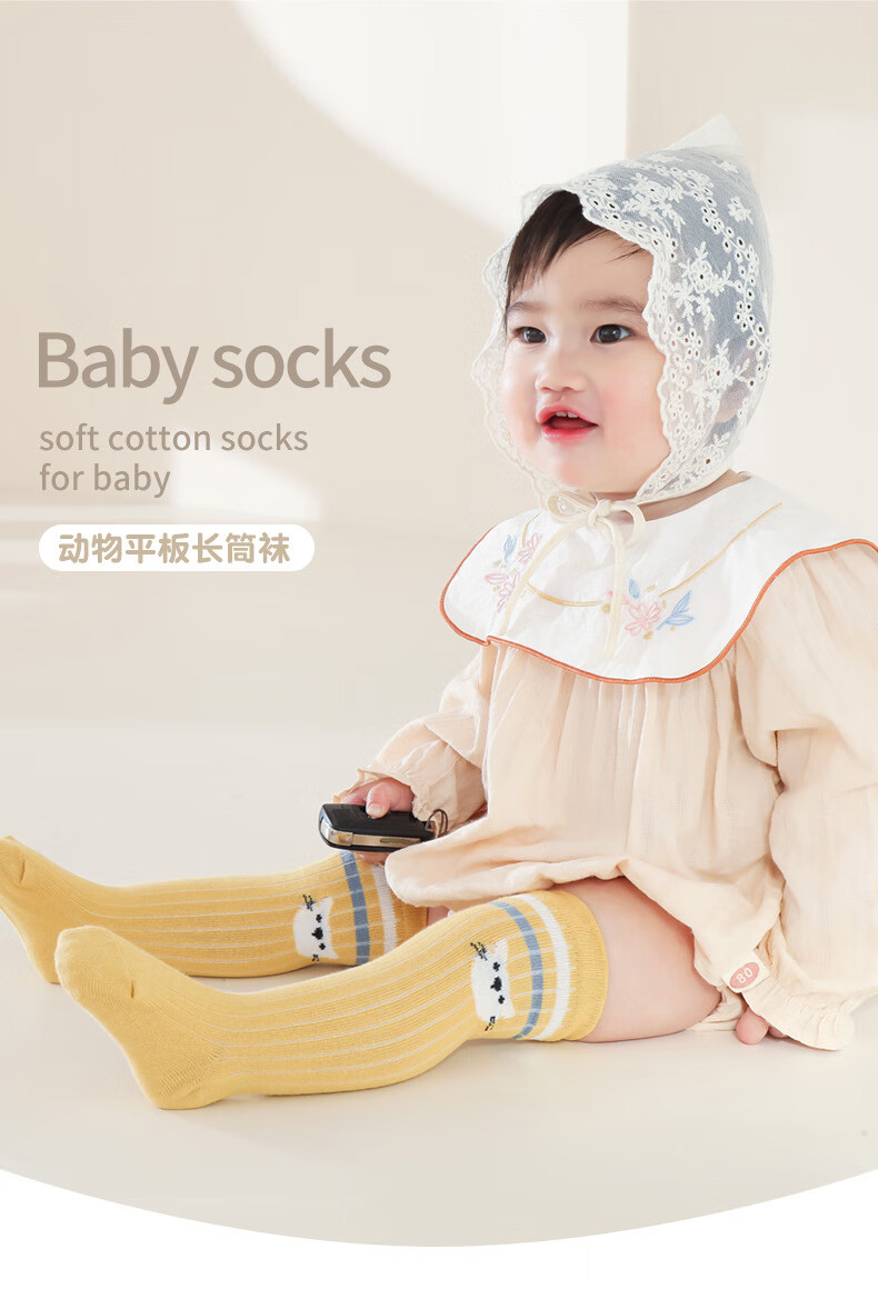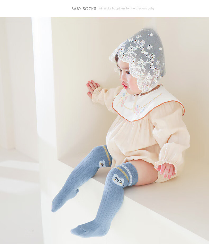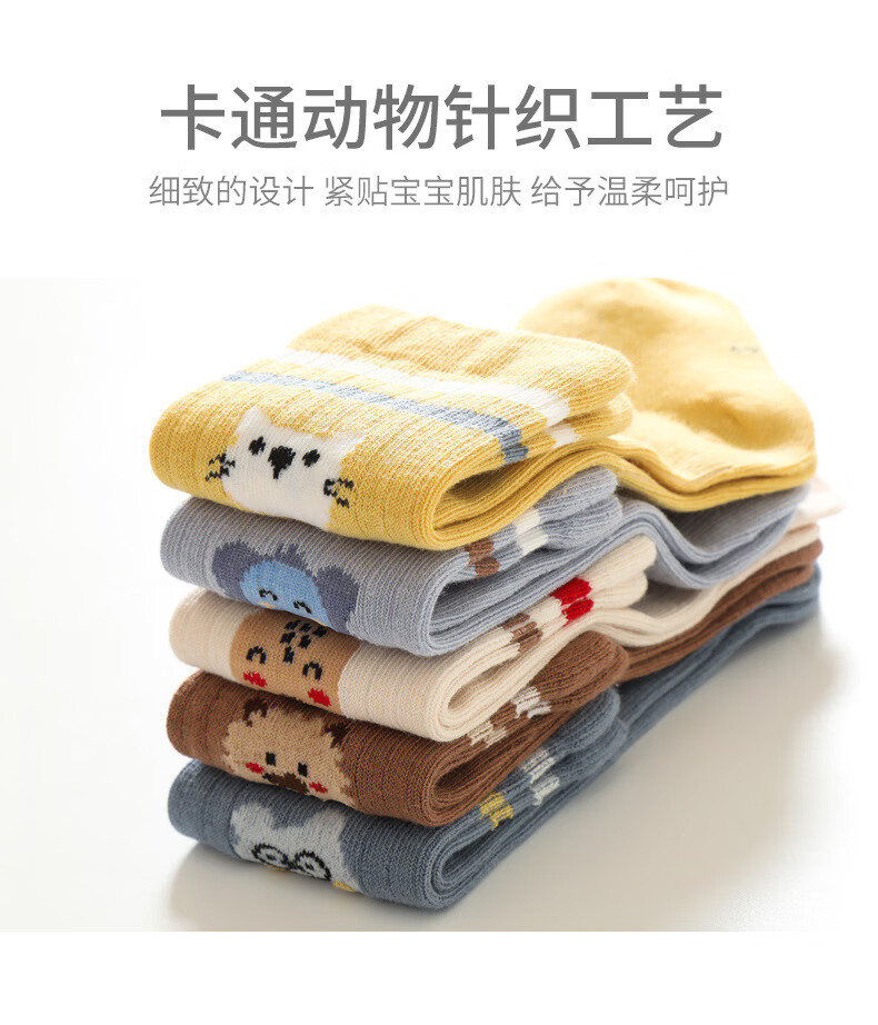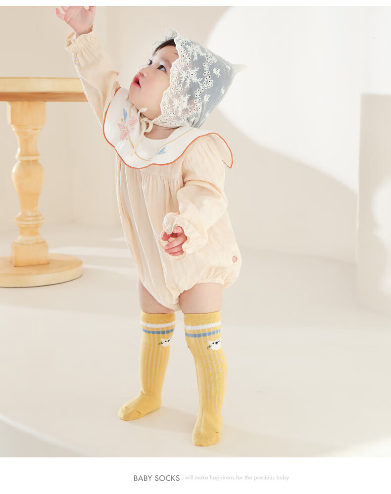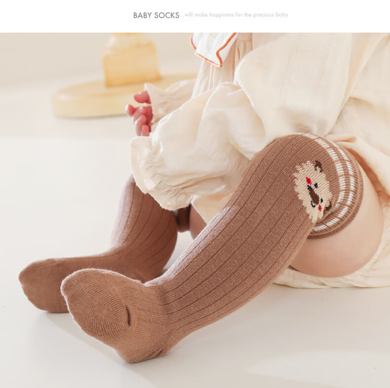彩虹房子婴儿长筒袜学院风儿童小腿袜卡通条纹袜动物学生高筒袜 卡通条纹袜男孩款 3双 6-12月 (M) (参考脚长约12cm)
