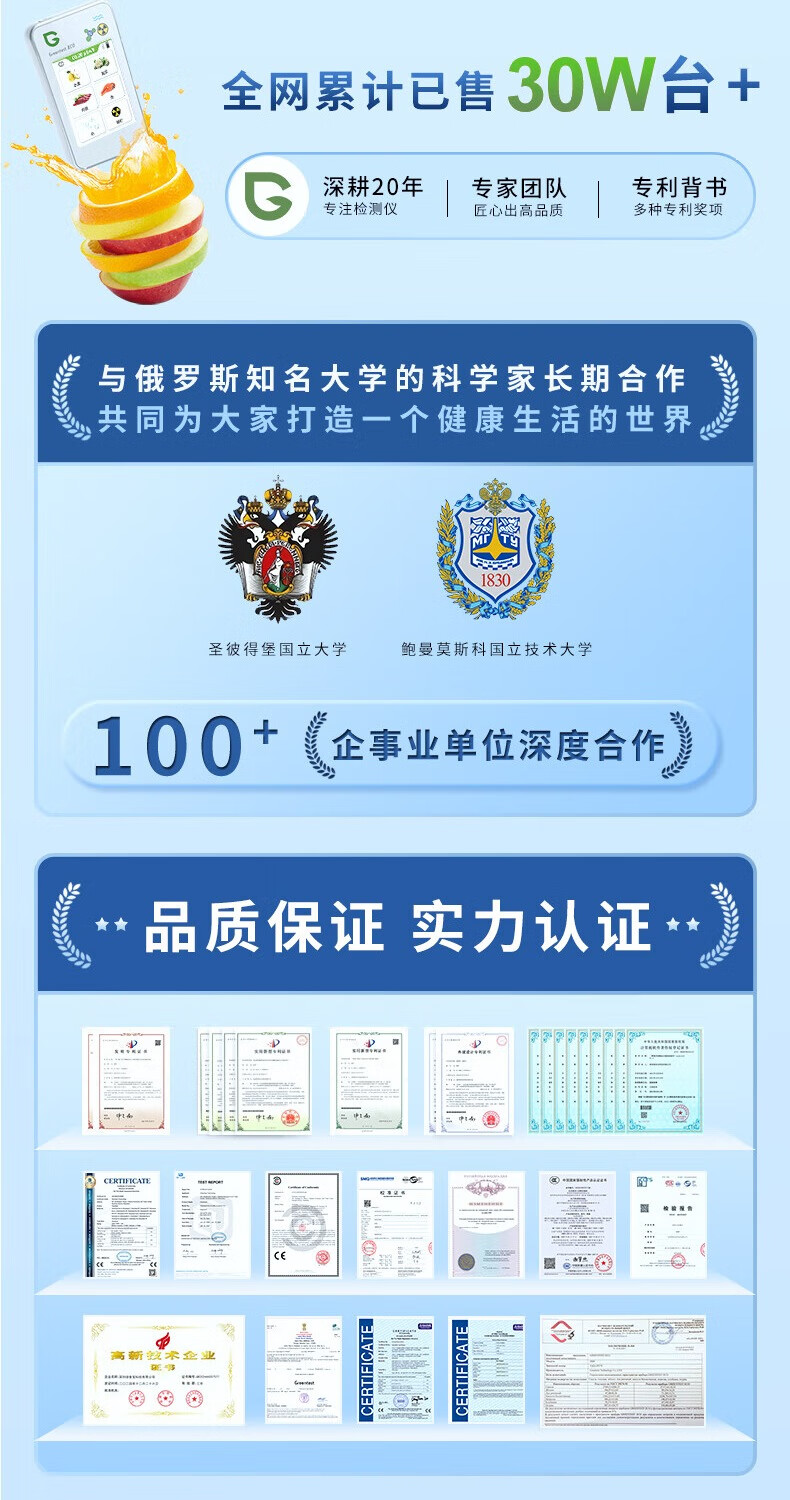 绿食宝探针便携式食品安全检测仪水质与果蔬肉鱼硝酸盐3秒快速测试 GR3F:蔬果+肉+鱼+水