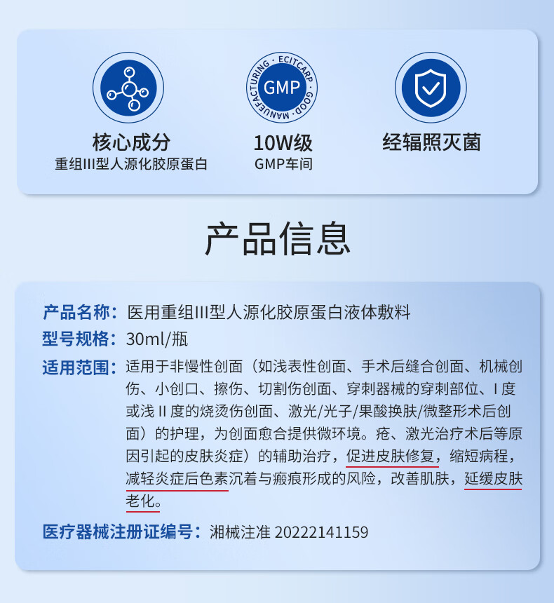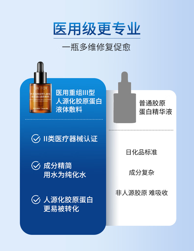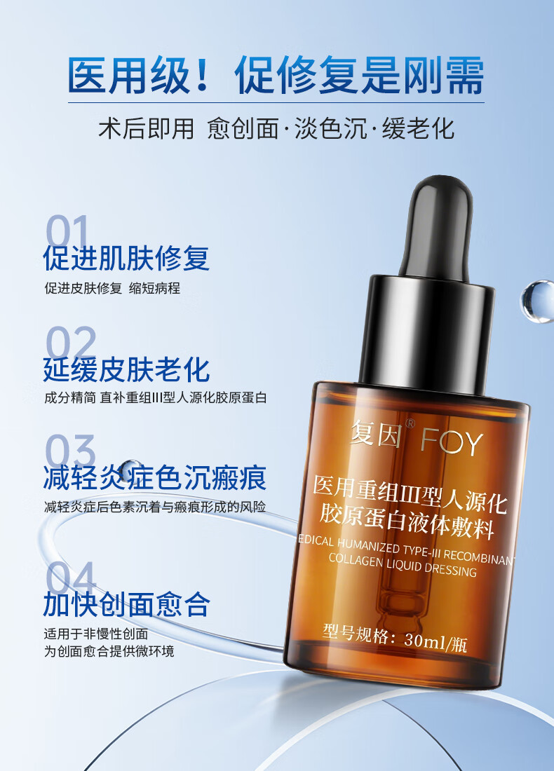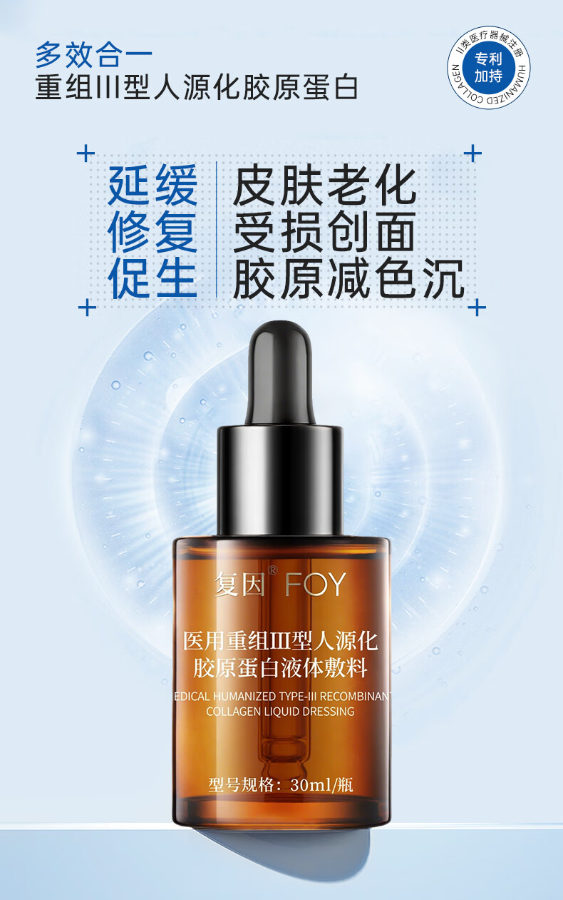 复因医用重组III型人源化胶原蛋白精华延缓老化修复减轻色素沉着瘢痕 30ml*1瓶