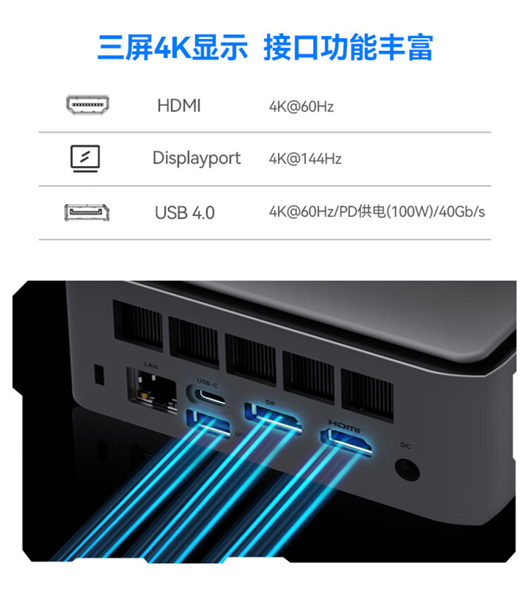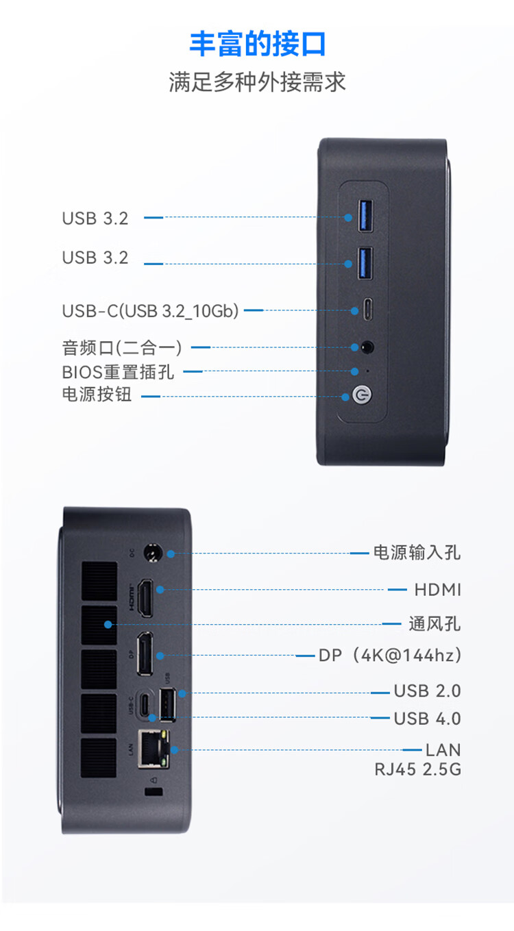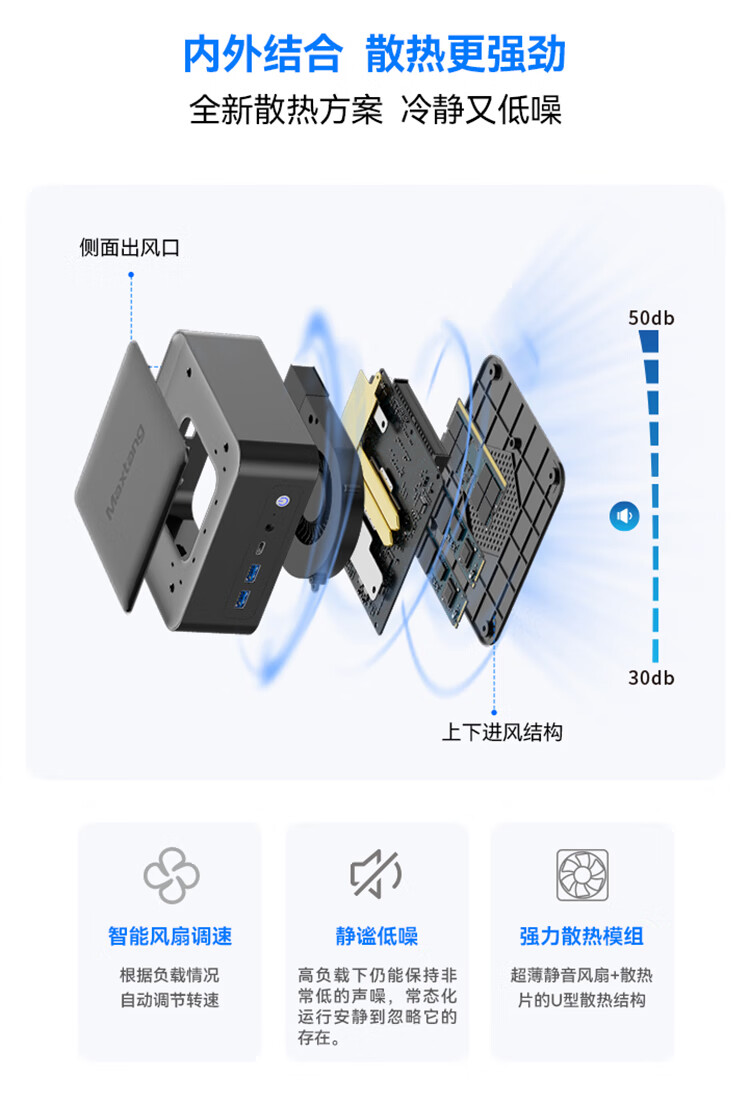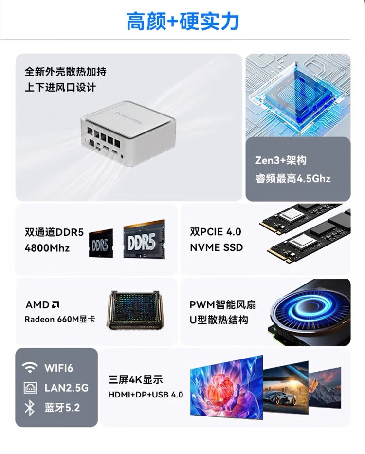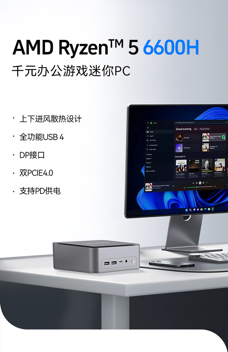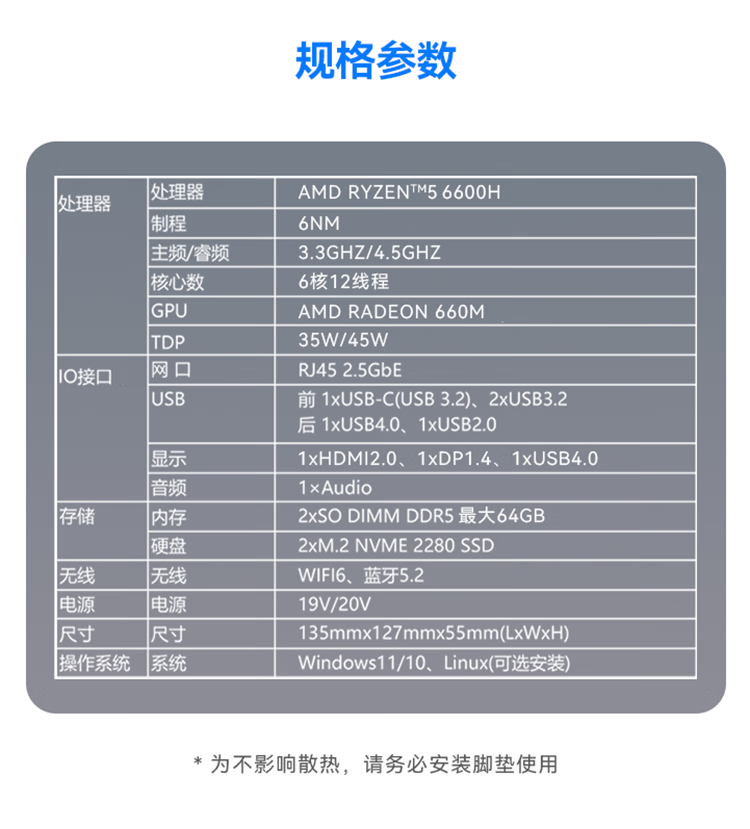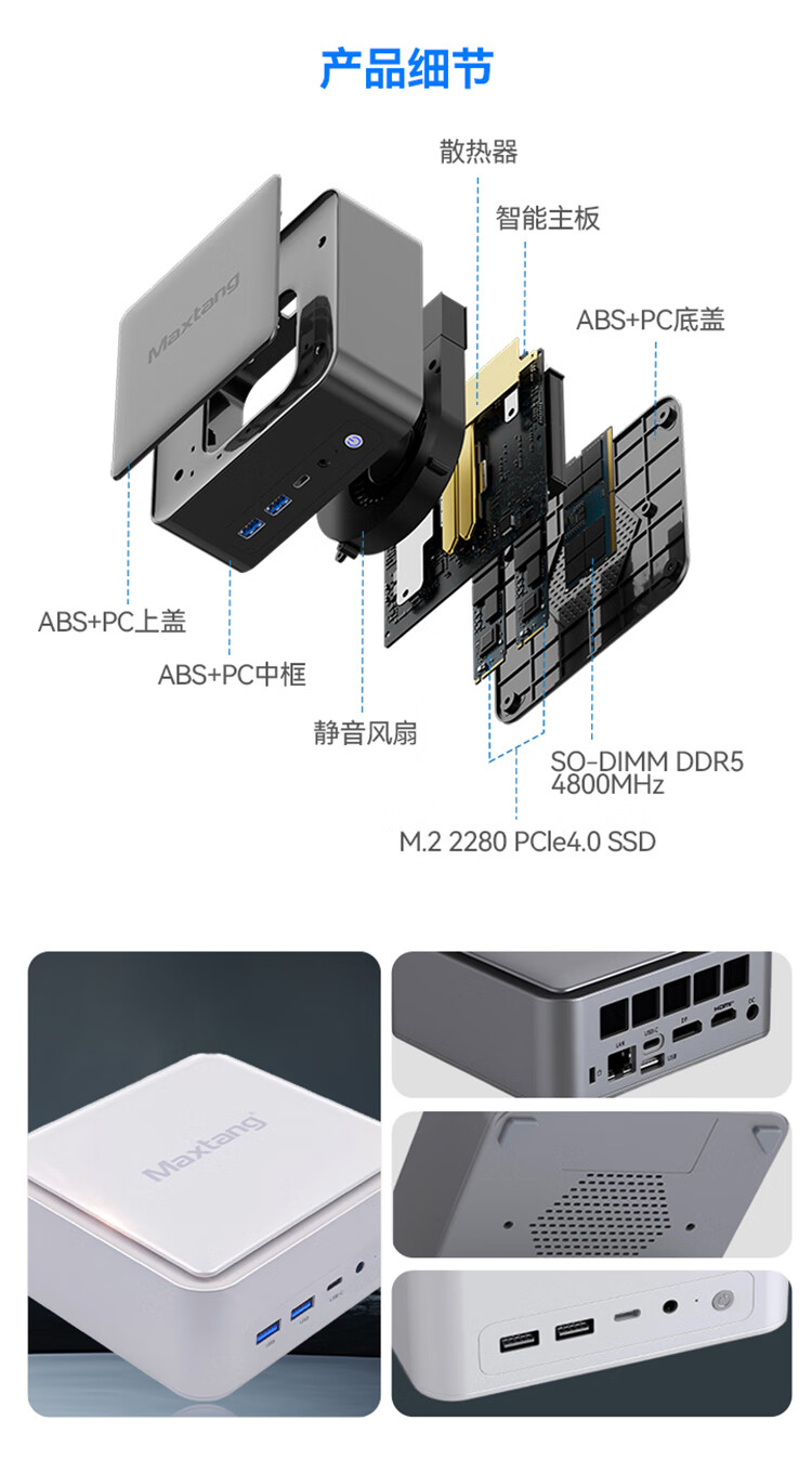 Maxtang大唐NUC锐龙5 6600H台式电脑商务办公娱乐游戏USB4双硬盘位2.5G网口WIFI6迷你组装小主机 雅致灰 准系统