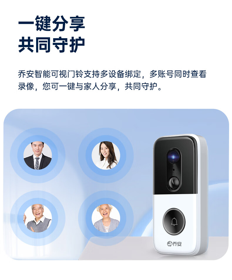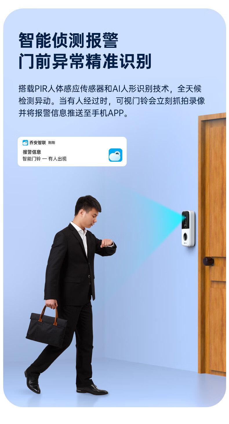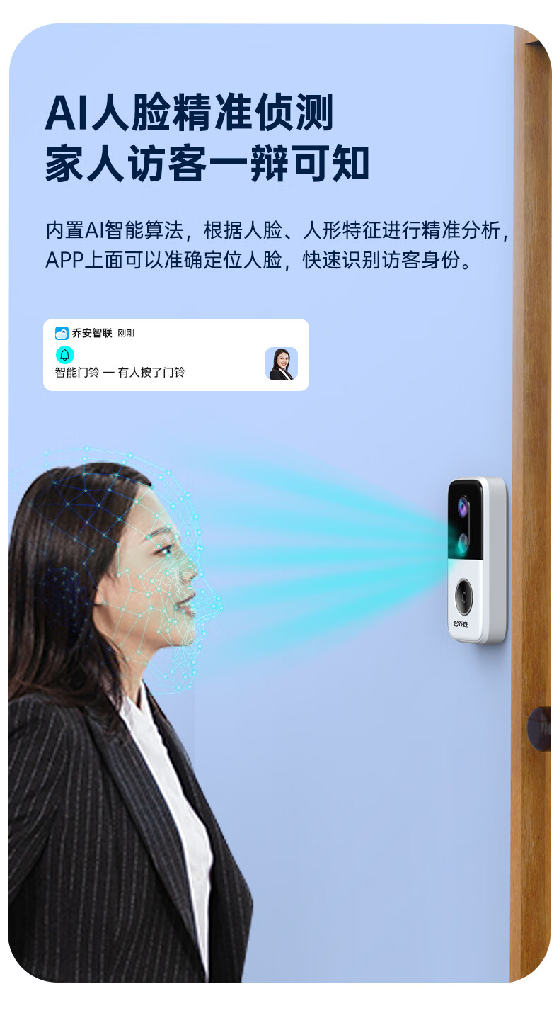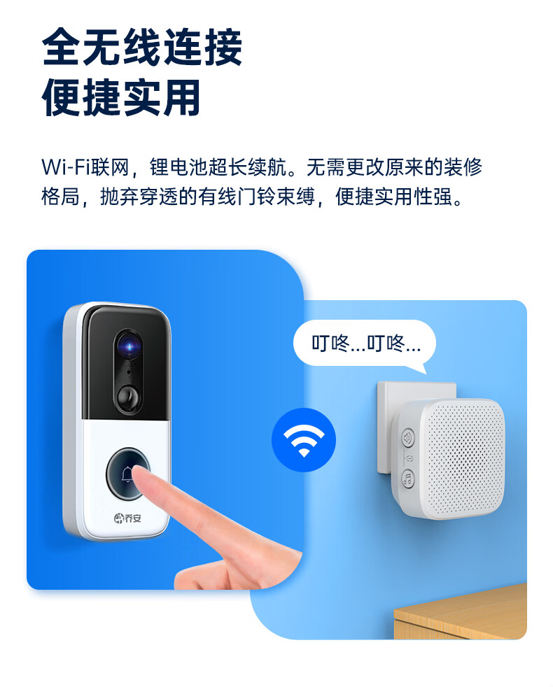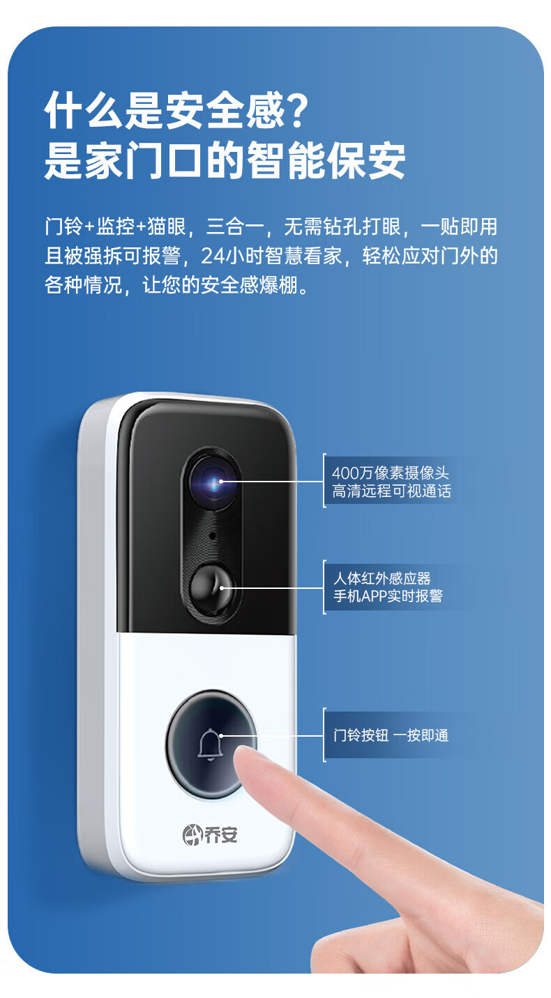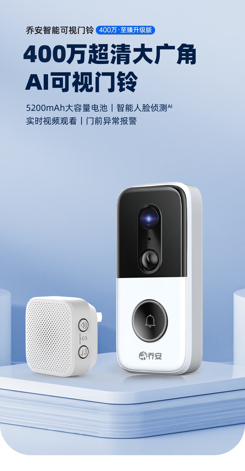 乔安400万可视门铃电子防盗智能猫眼监控入户门口摄像头家用手机无线远程可视通话超长续航