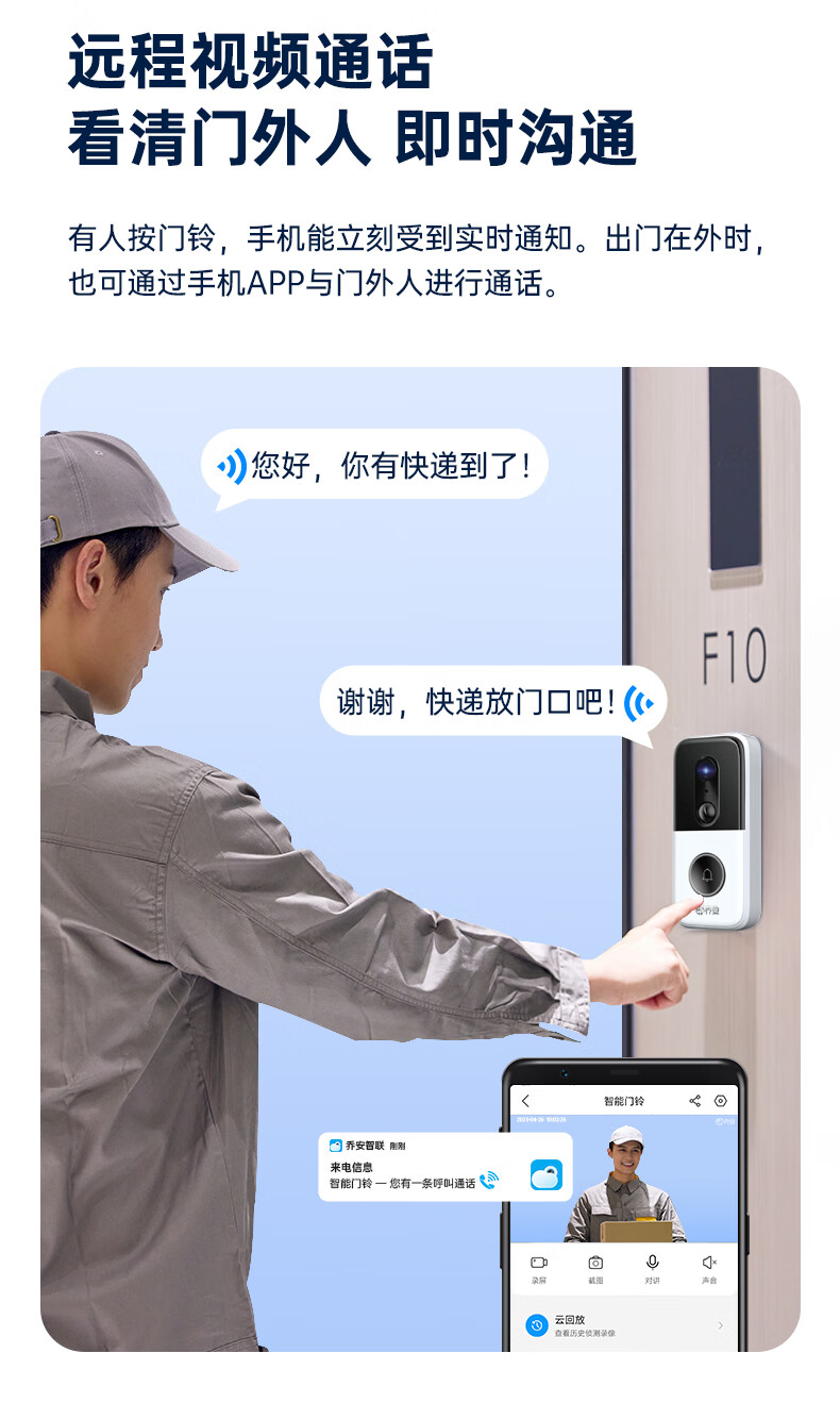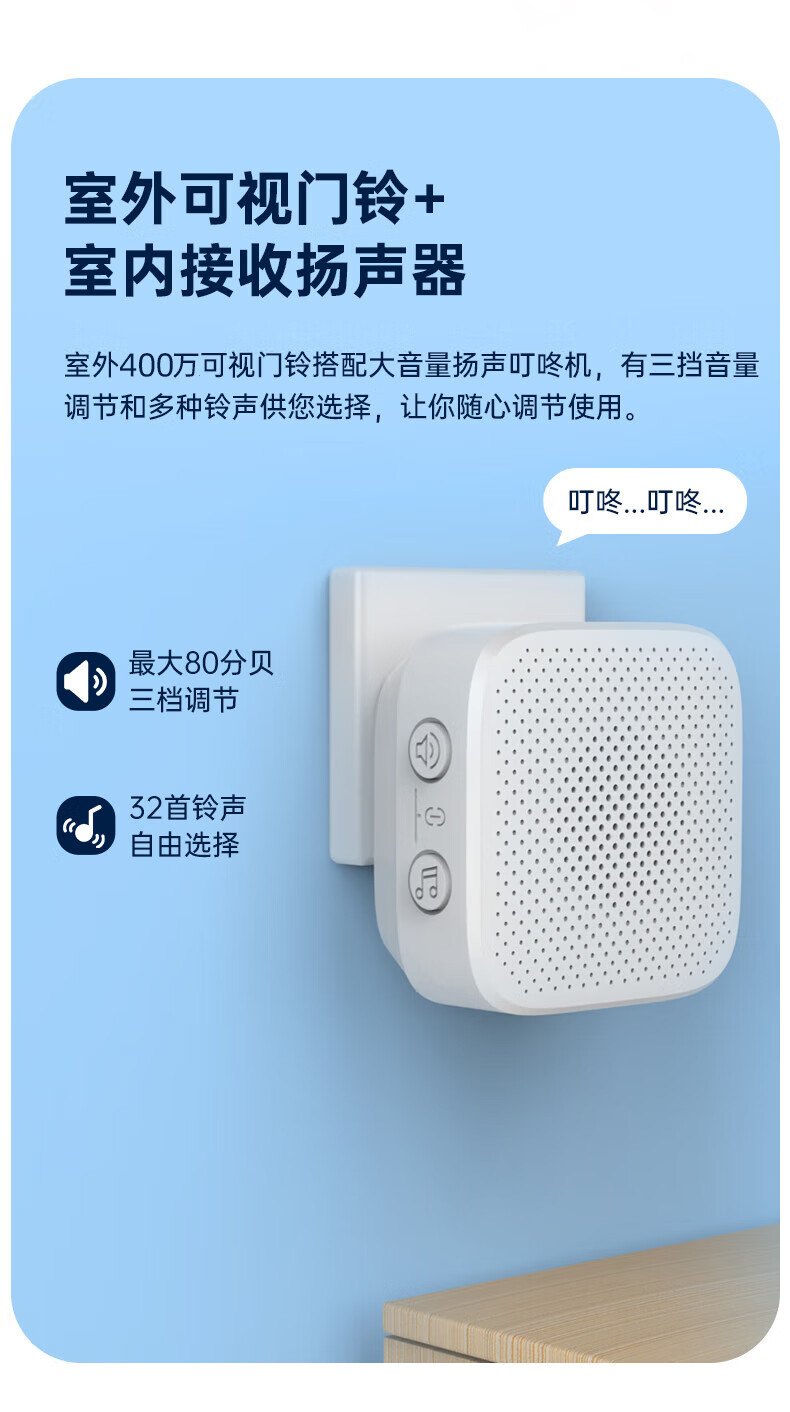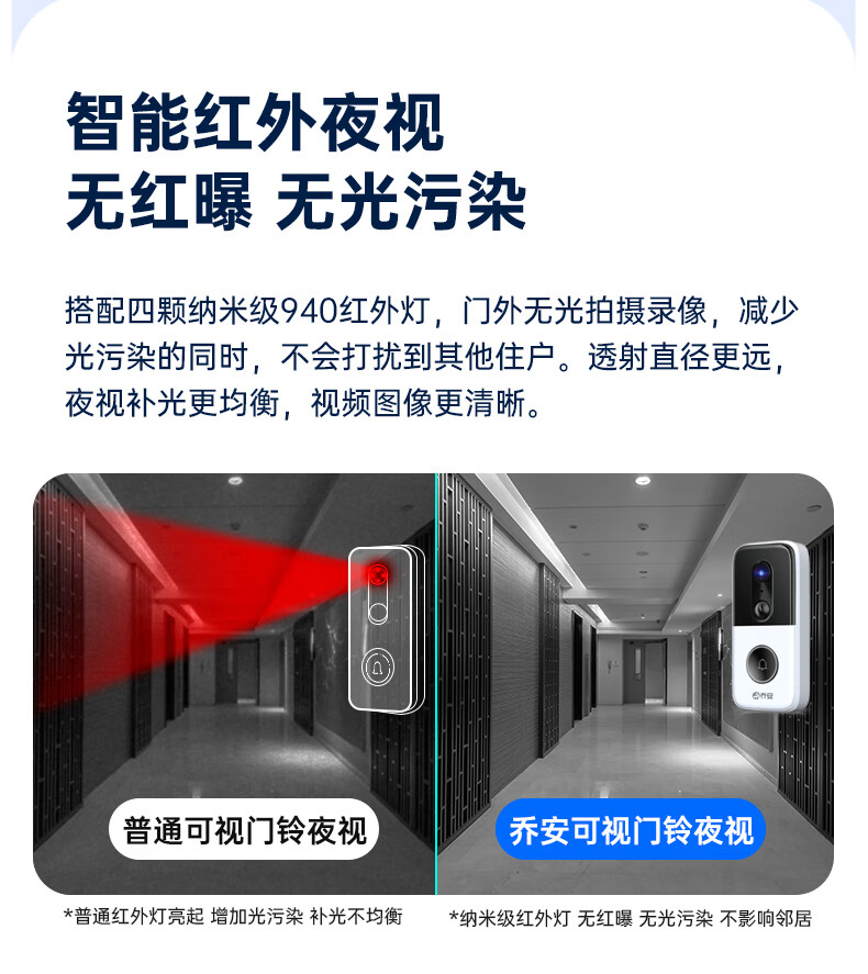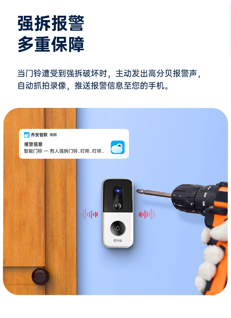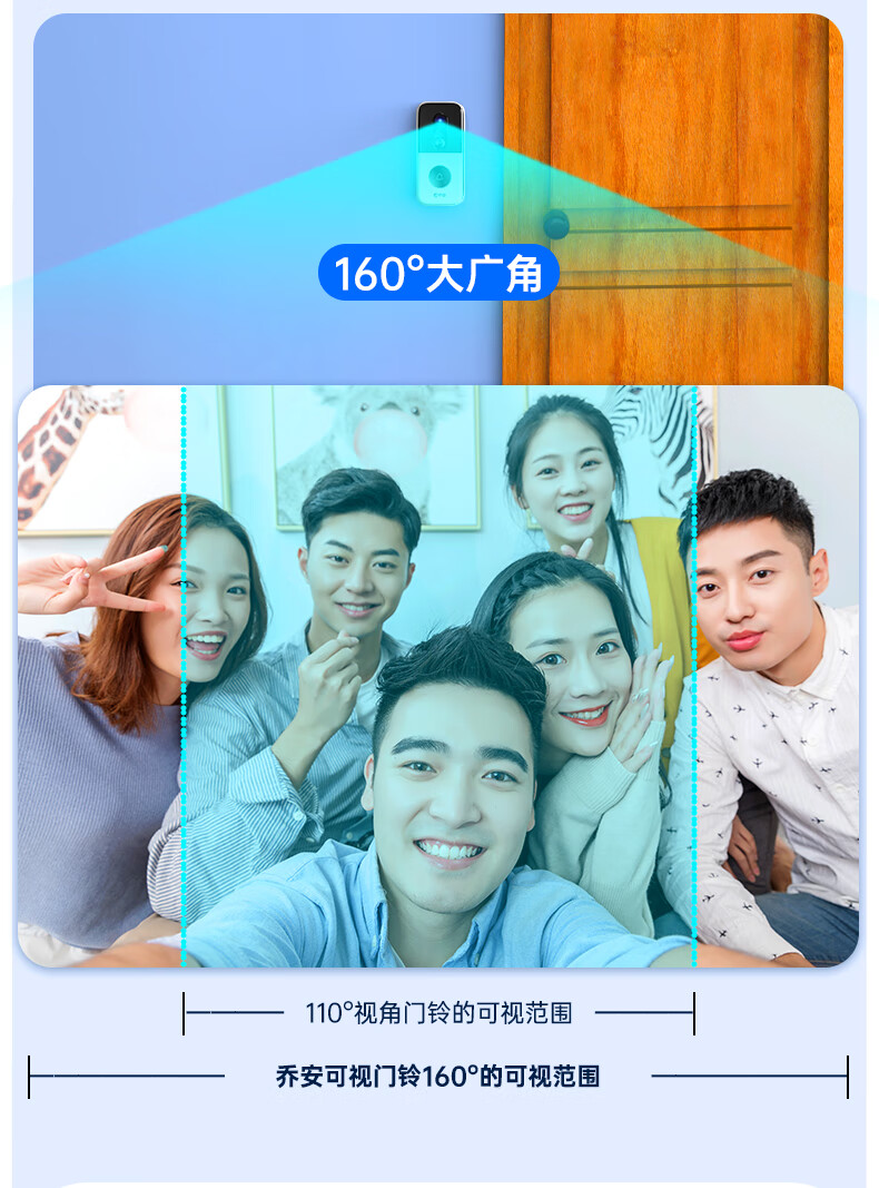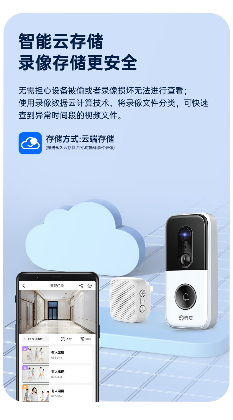 乔安400万可视门铃电子防盗智能猫眼监控入户门口摄像头家用手机无线远程可视通话超长续航