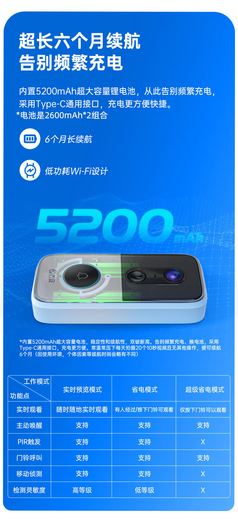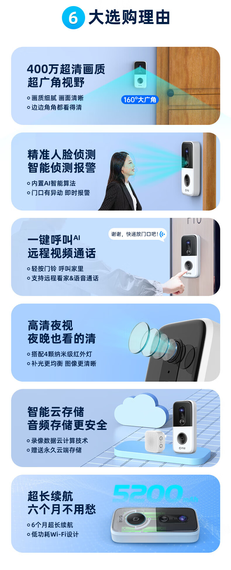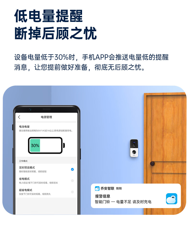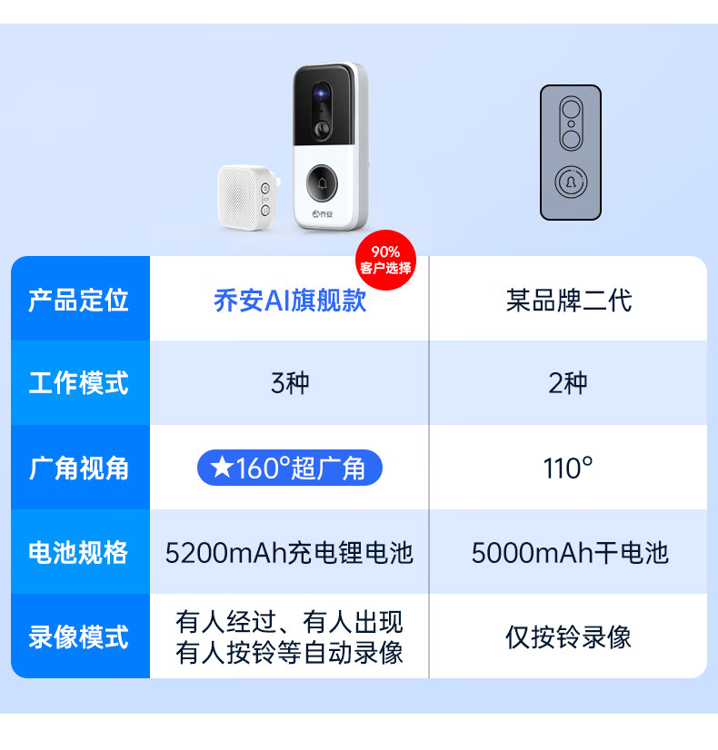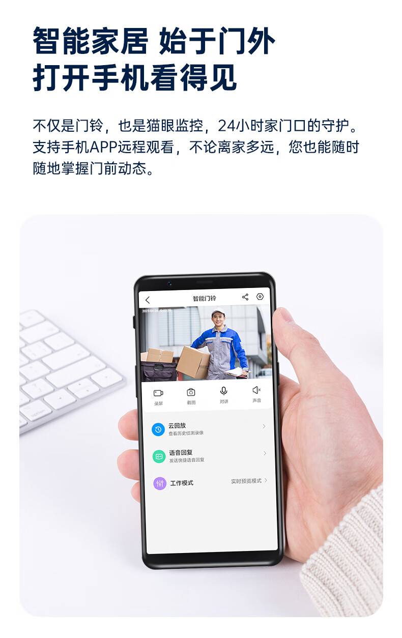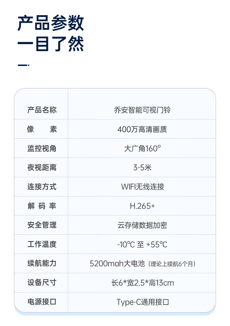 乔安400万可视门铃电子防盗智能猫眼监控入户门口摄像头家用手机无线远程可视通话超长续航