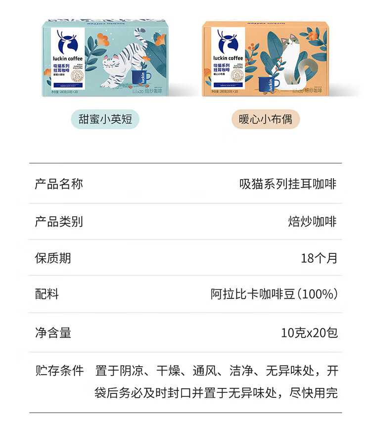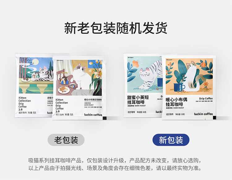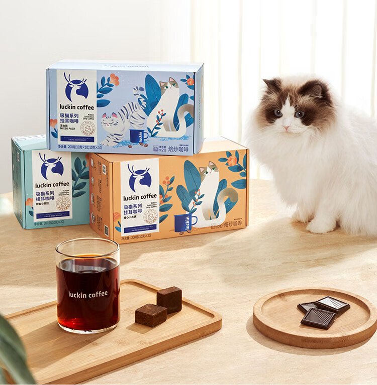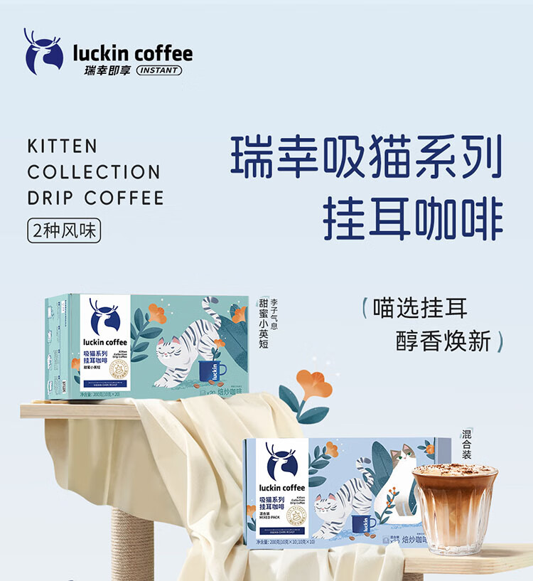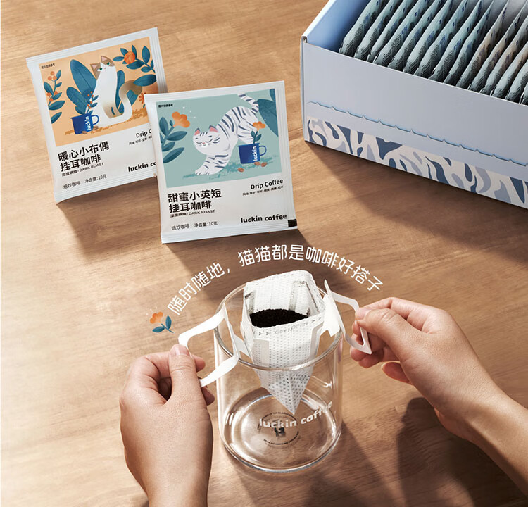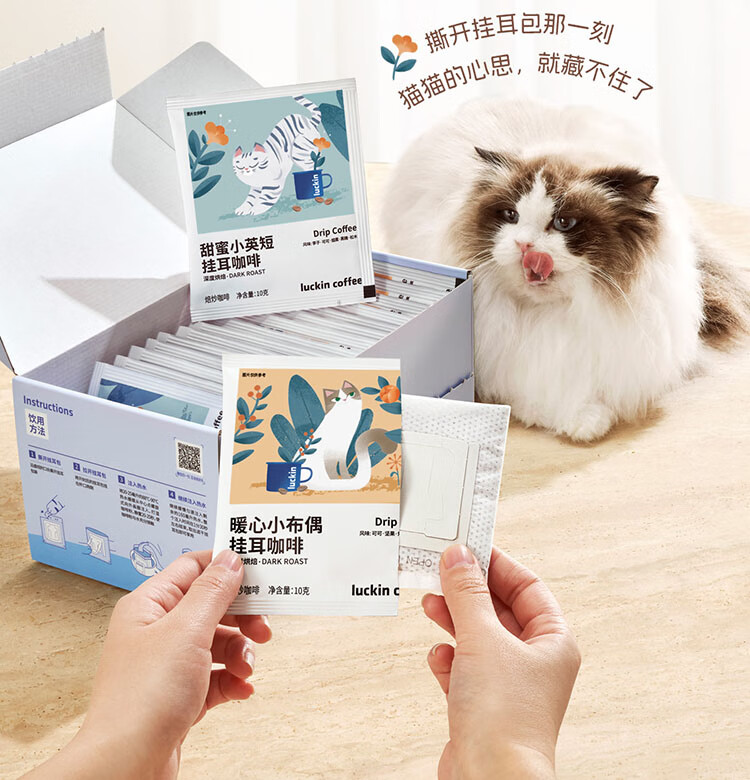 瑞幸咖啡即享吸猫系列挂耳咖啡现磨手冲咖啡粉阿拉比卡豆0蔗糖黑咖啡 混合口味挂耳咖啡【2盒共40杯】