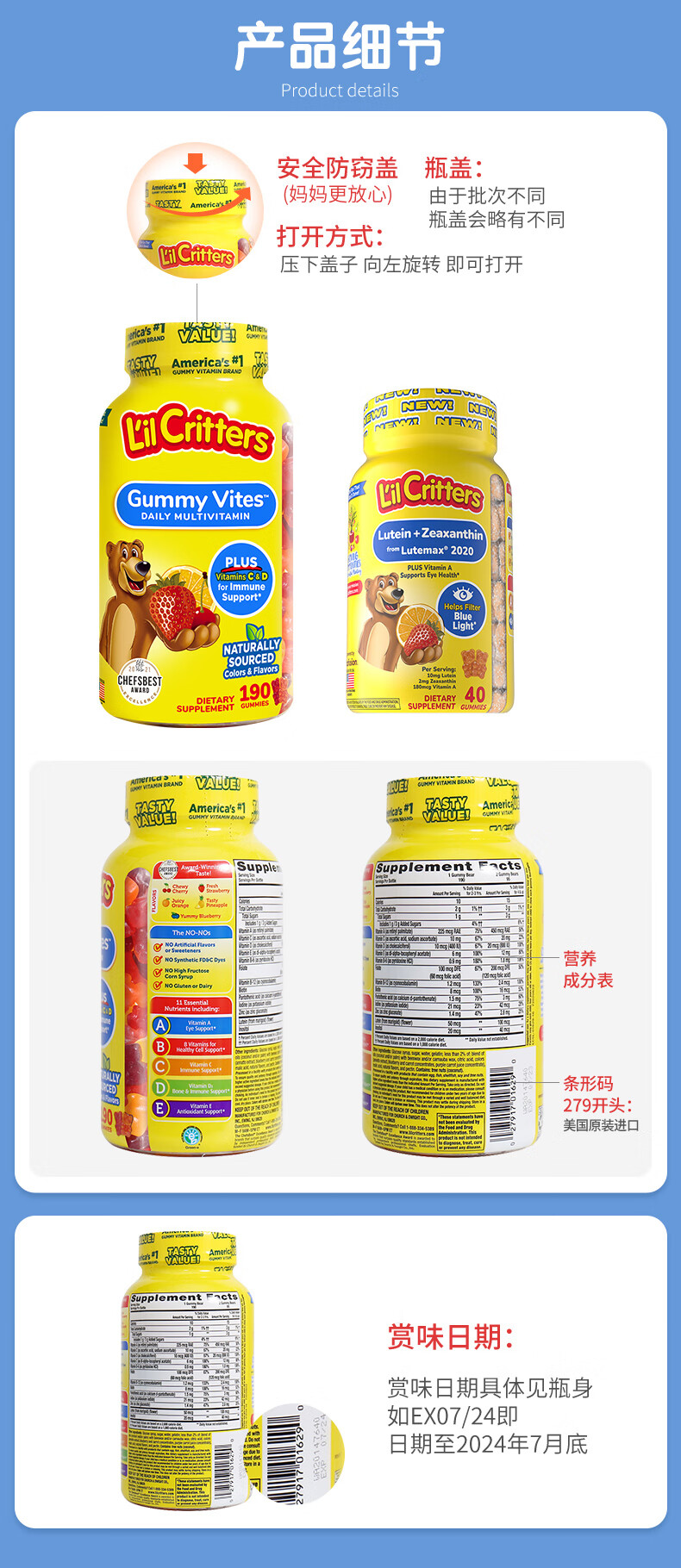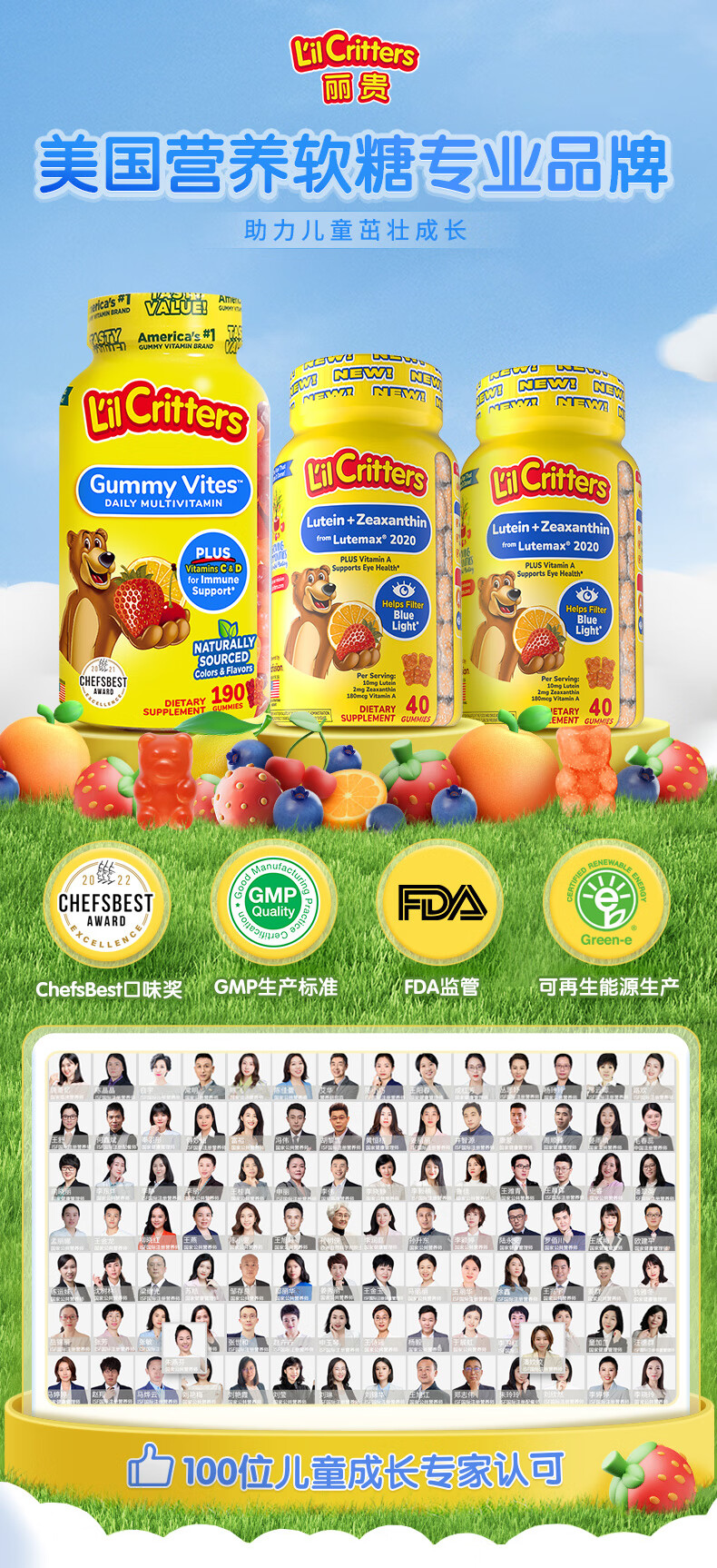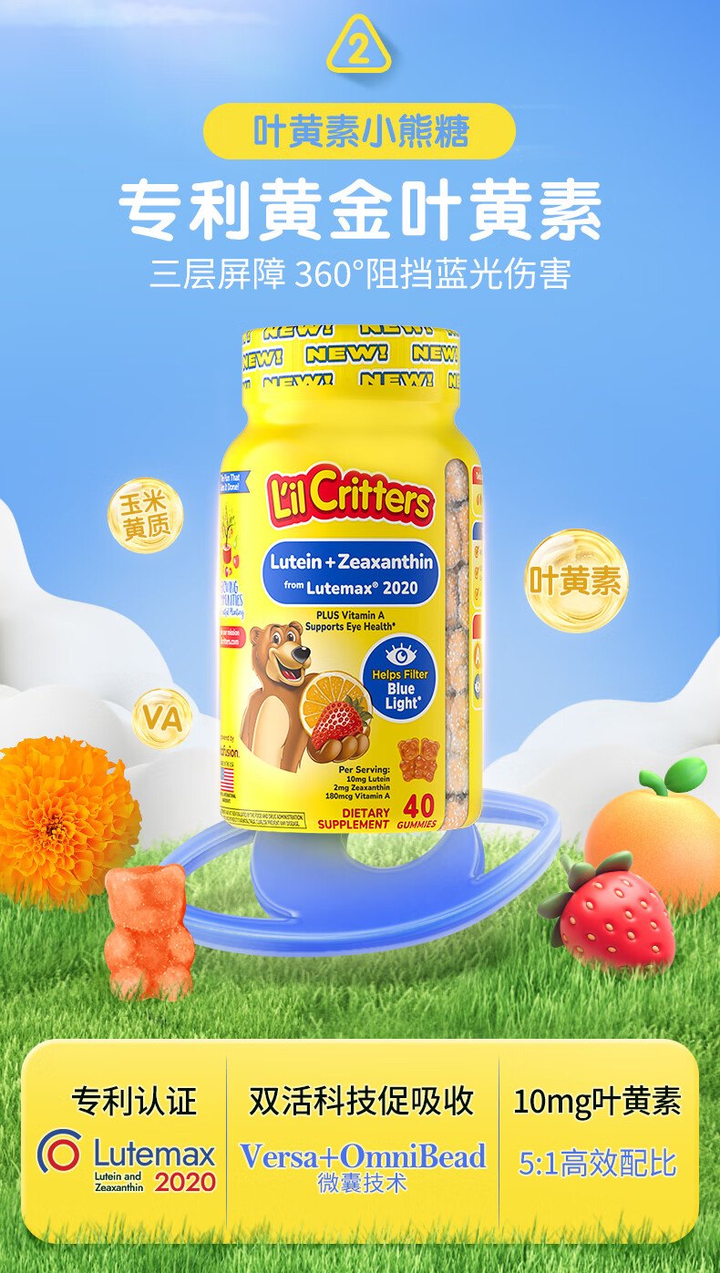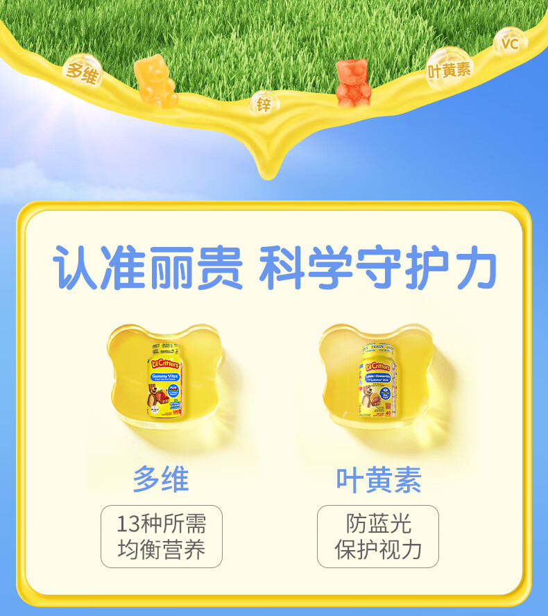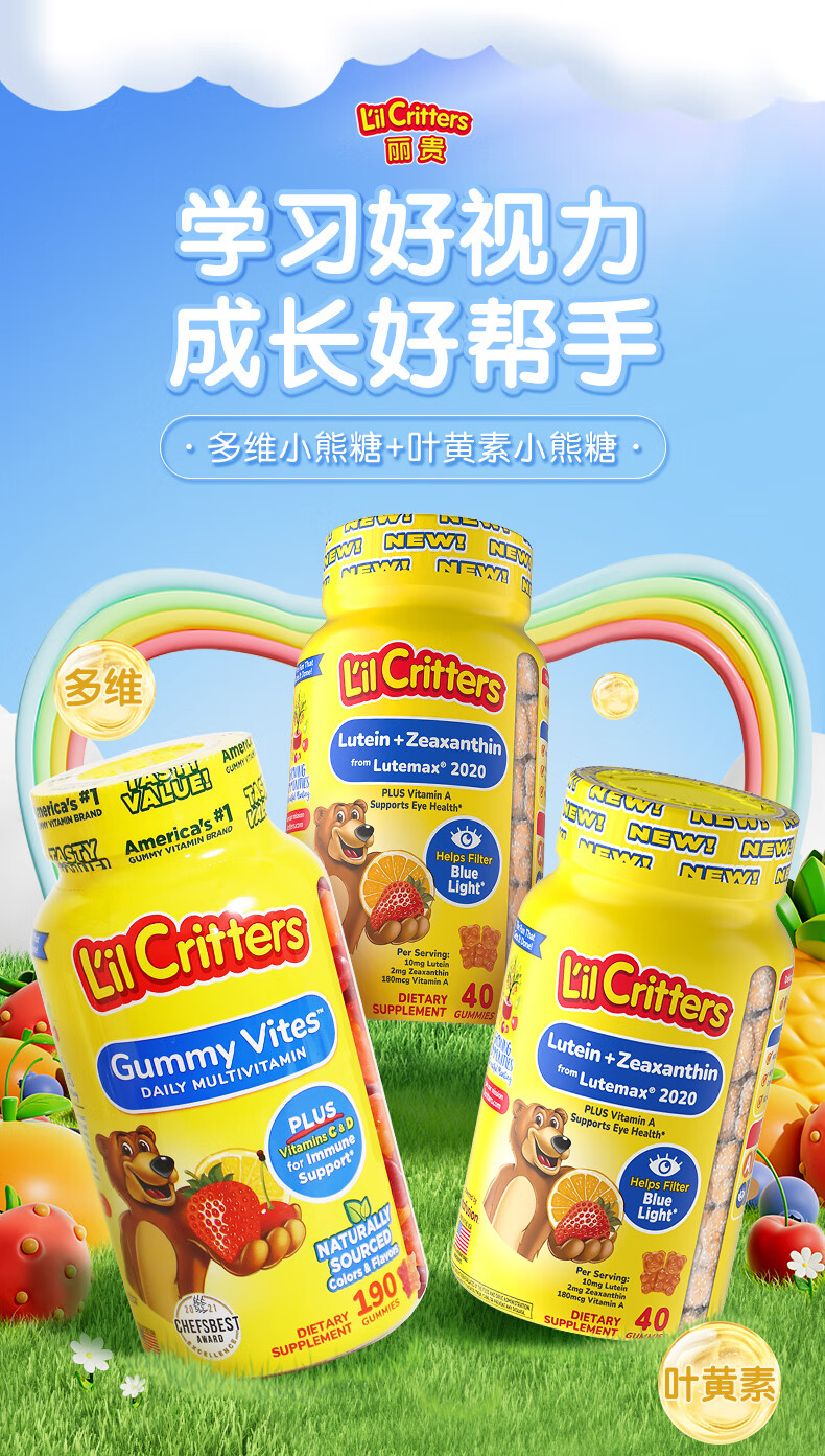 小熊糖丽贵小熊糖Lilcritters儿童叶黄素复合维生素营养软糖 儿童复合维生素190粒*2瓶