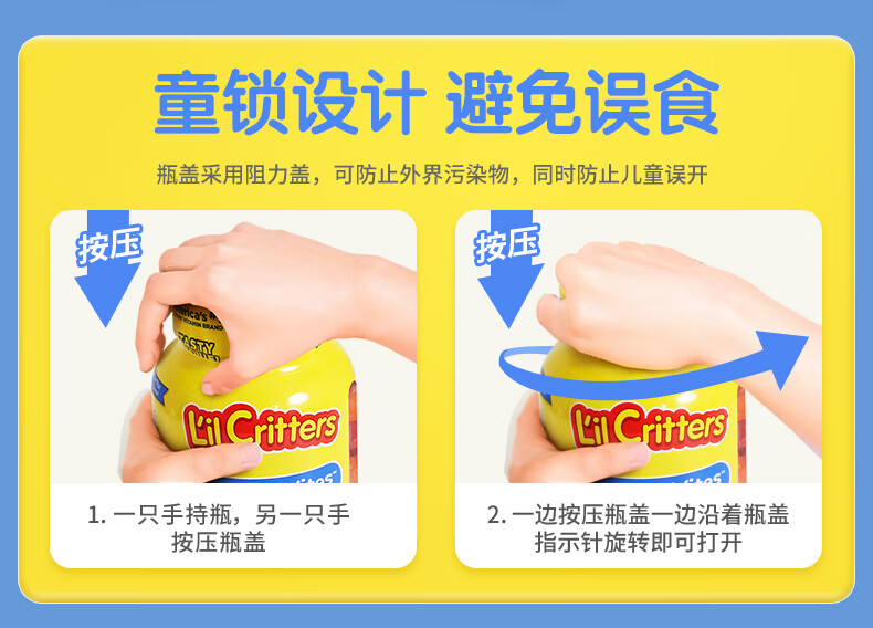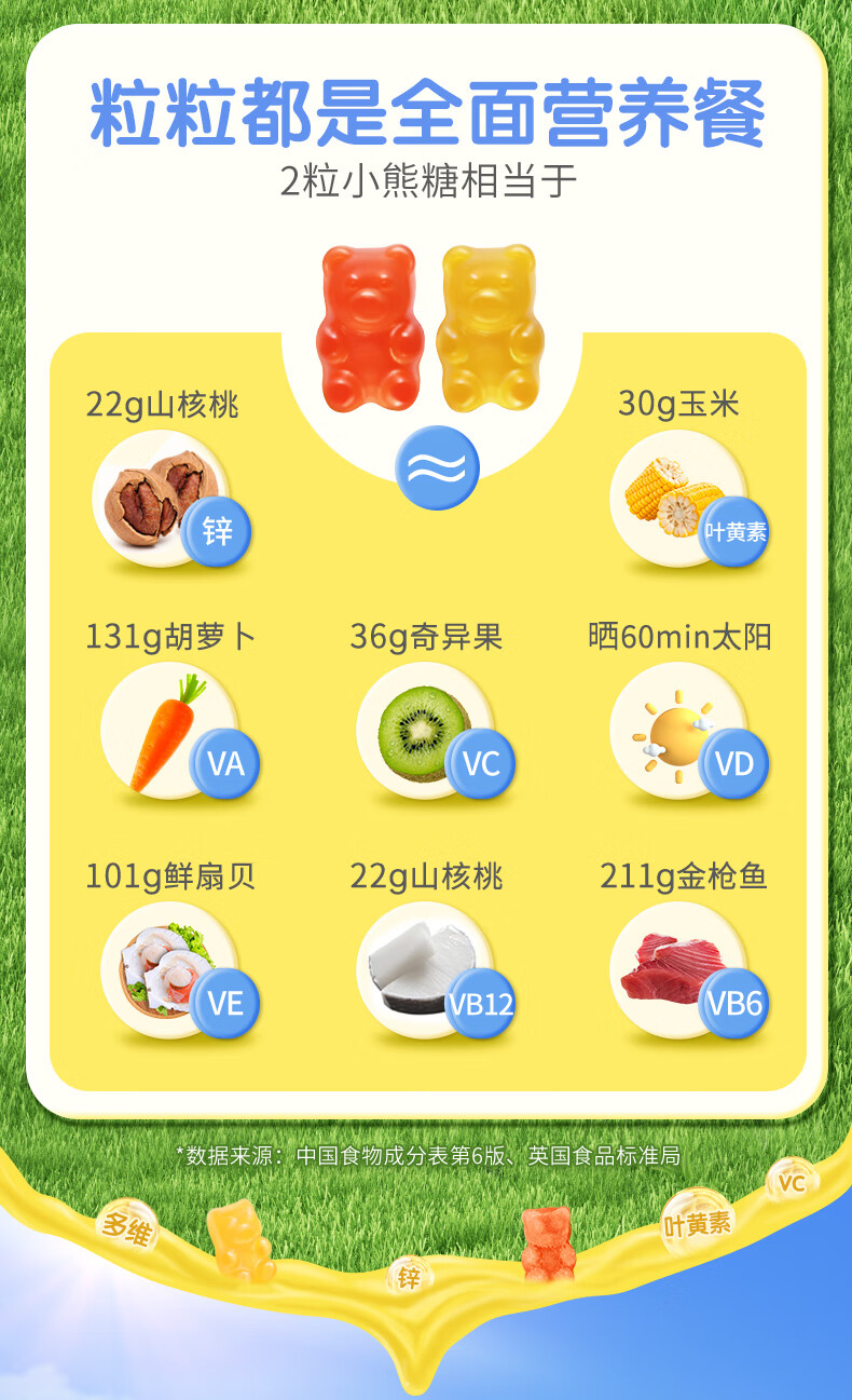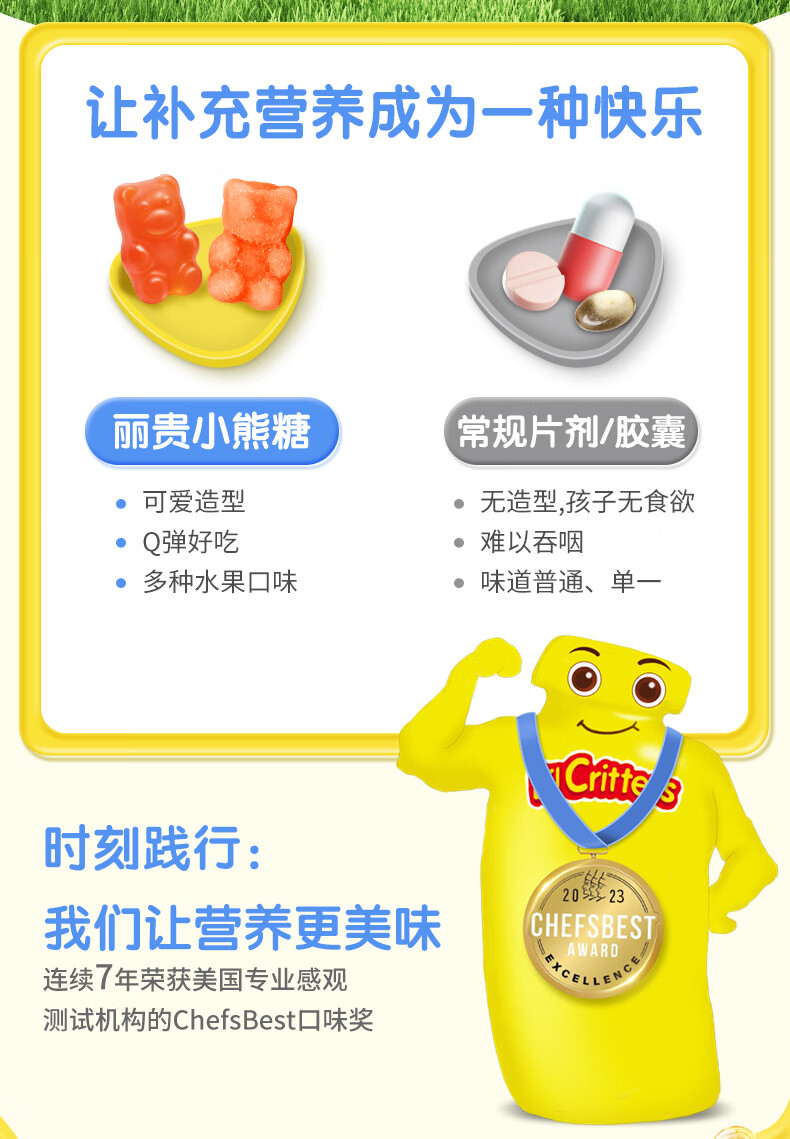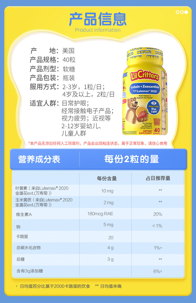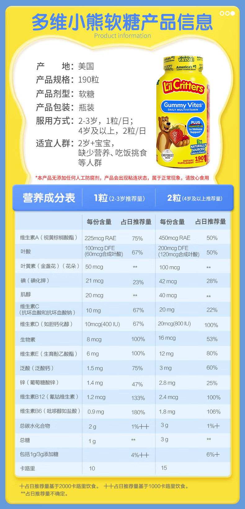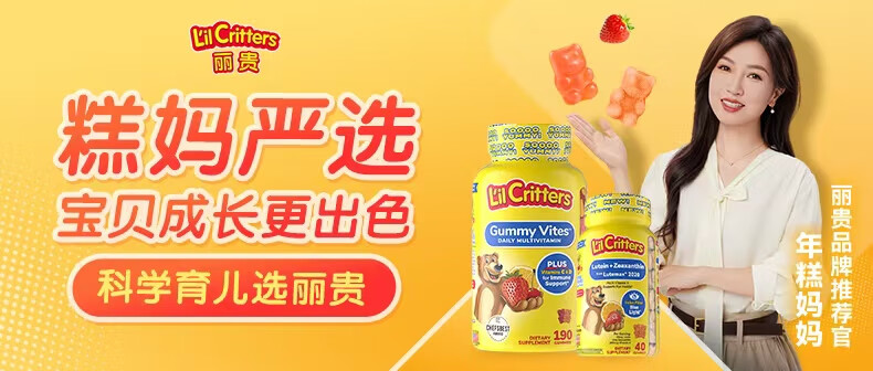 小熊糖丽贵小熊糖Lilcritters儿童叶黄素复合维生素营养软糖 儿童复合维生素190粒*2瓶