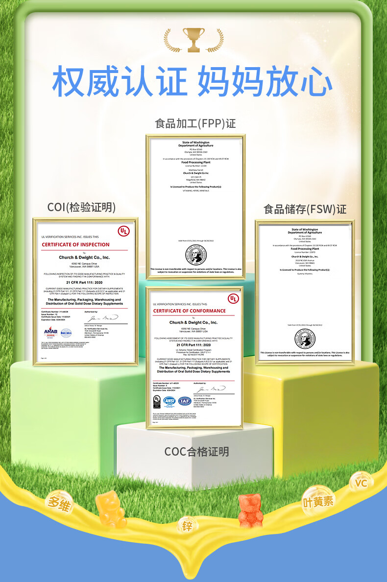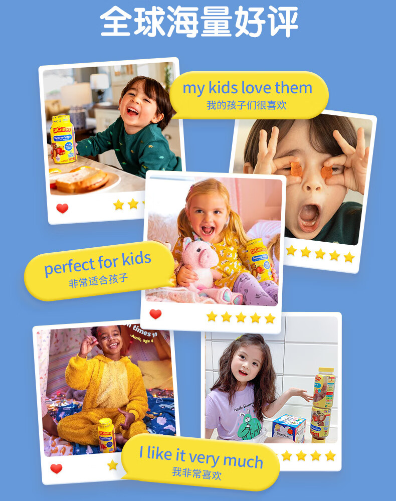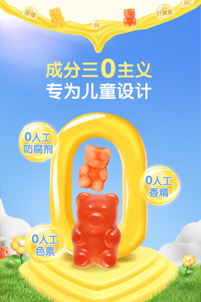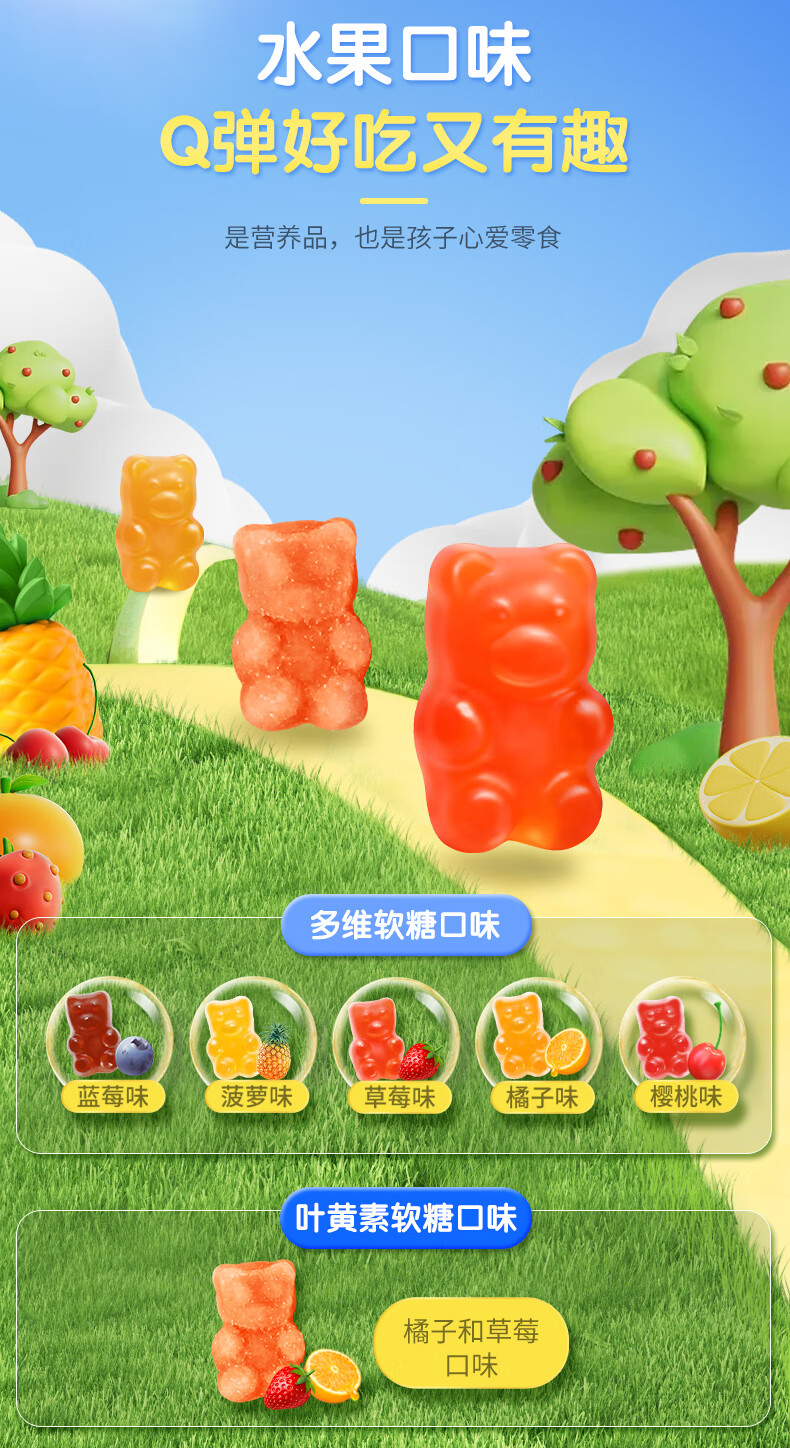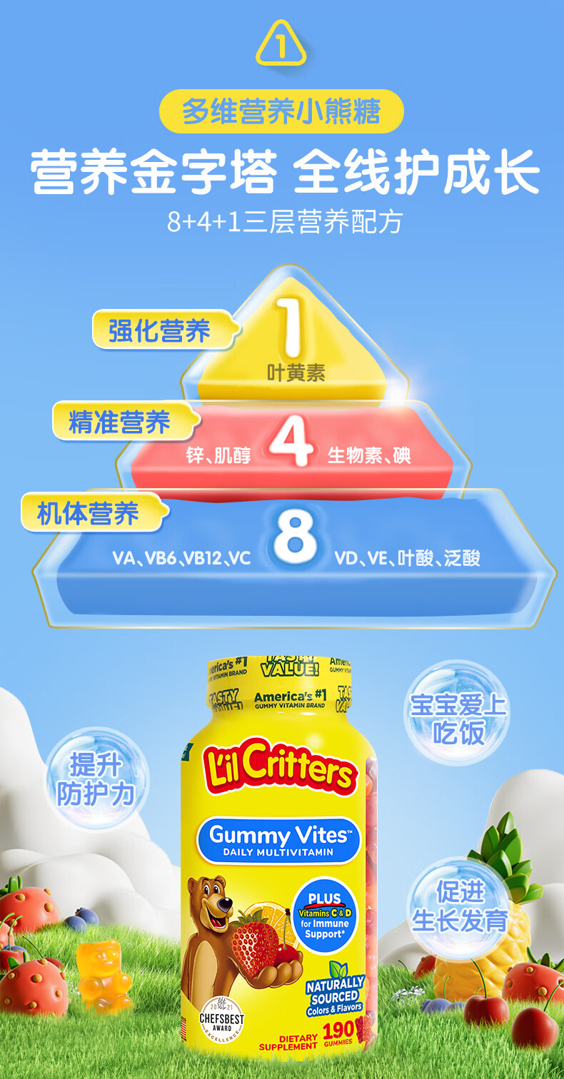 小熊糖丽贵小熊糖Lilcritters儿童叶黄素复合维生素营养软糖 儿童复合维生素190粒*2瓶