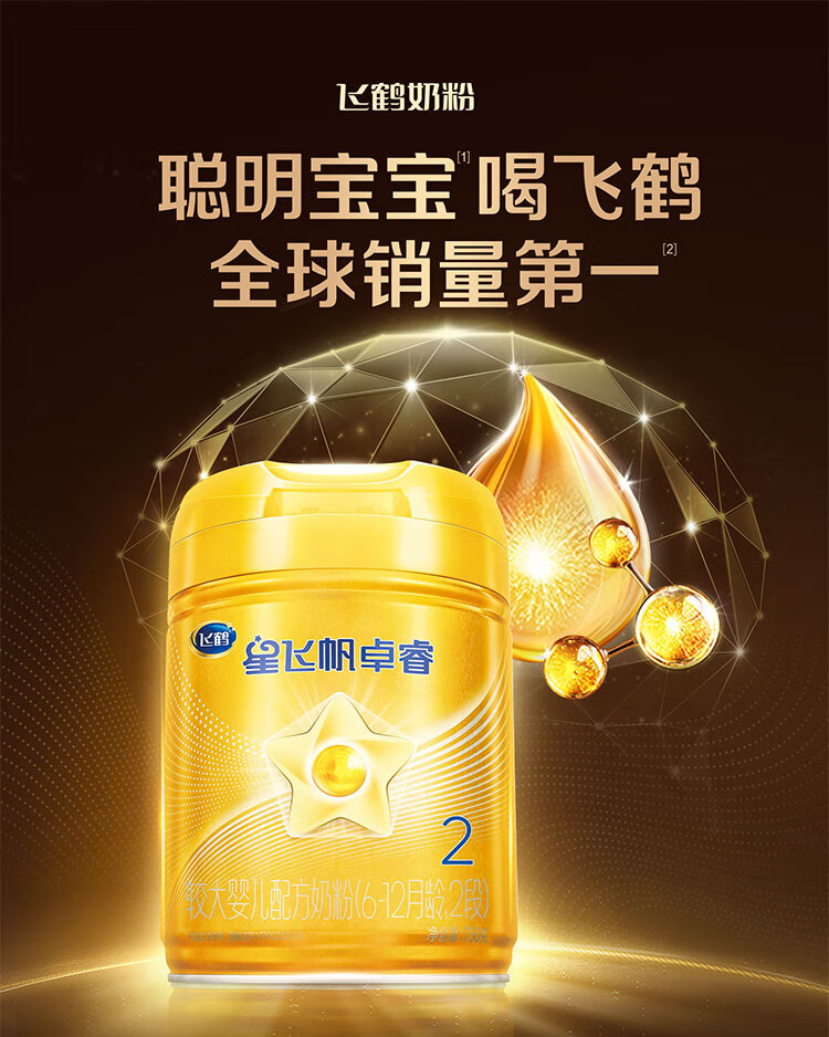 飞鹤【老爸抽检】星飞帆卓睿2段(6-12个月龄)婴儿配方奶粉听装 2段 星飞帆卓睿 750g 6罐 【官方】