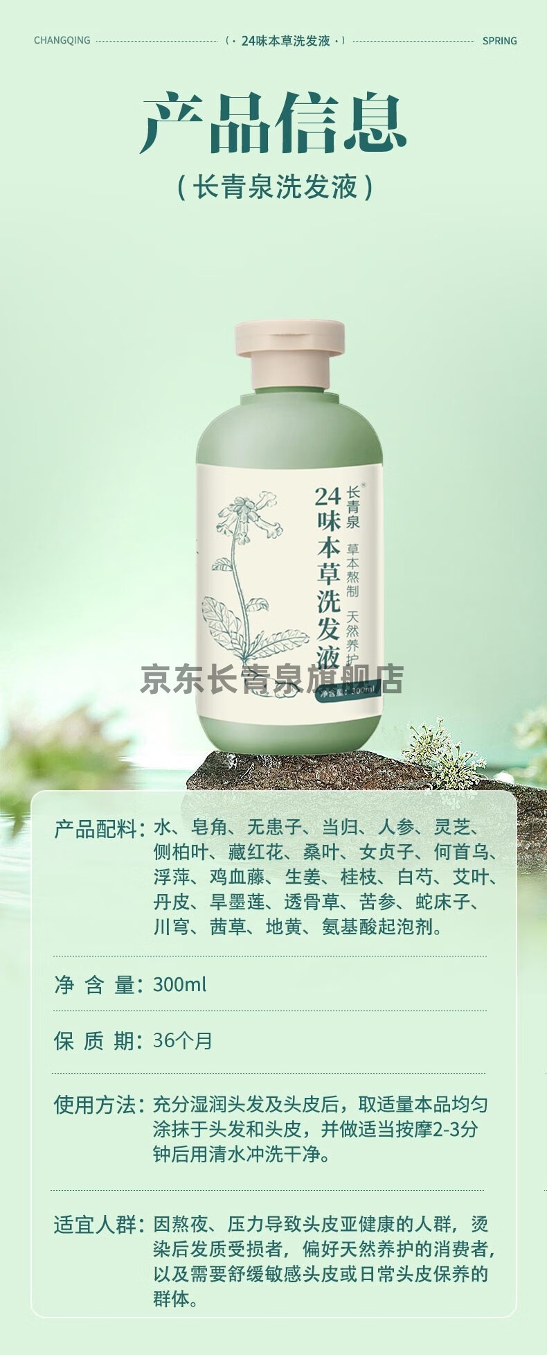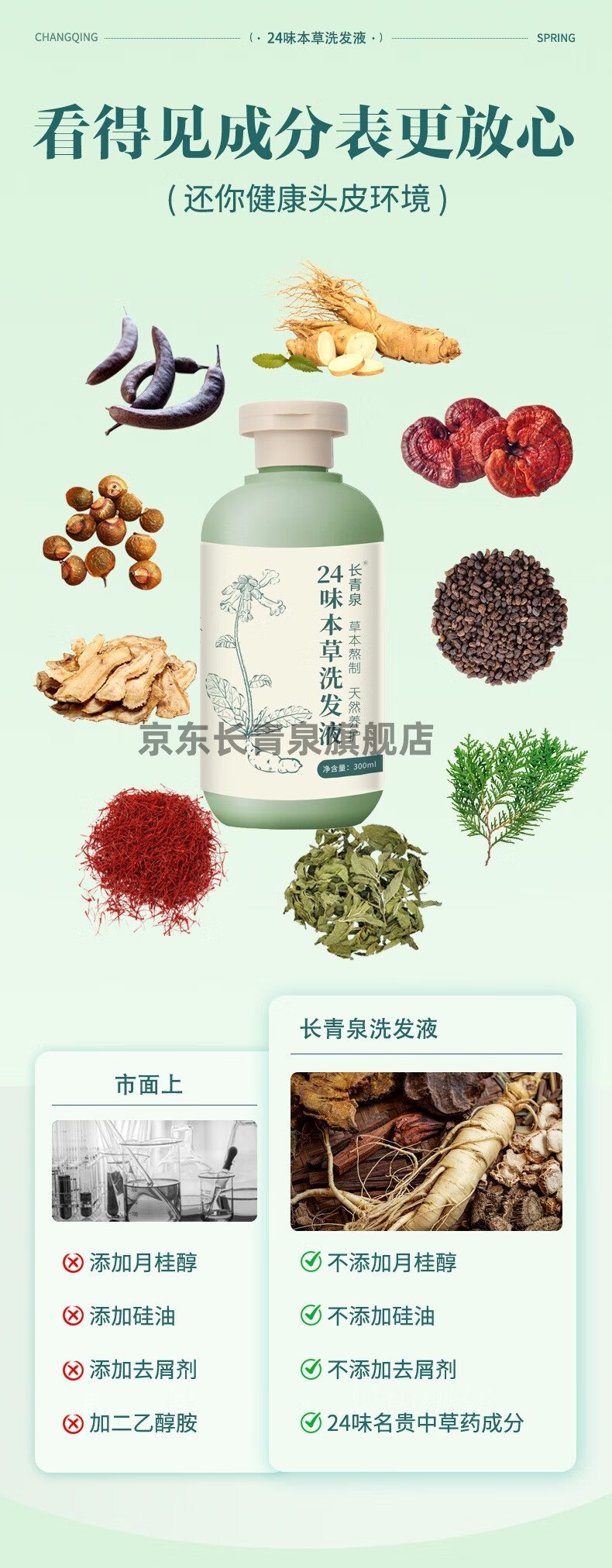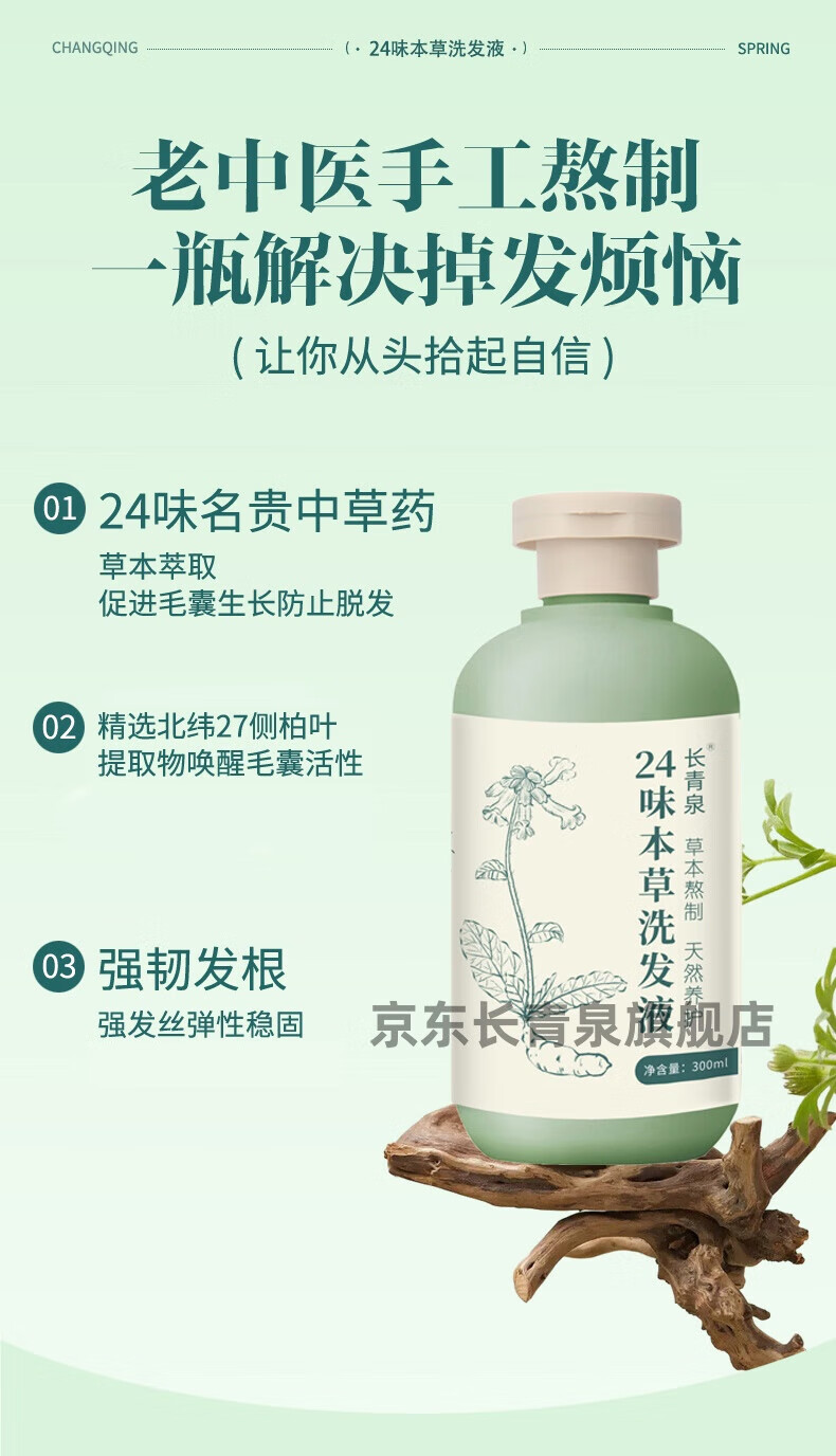 长青泉24味本草洗发水洗发液草本精华古法熬制侧柏叶何首乌生姜 单瓶装