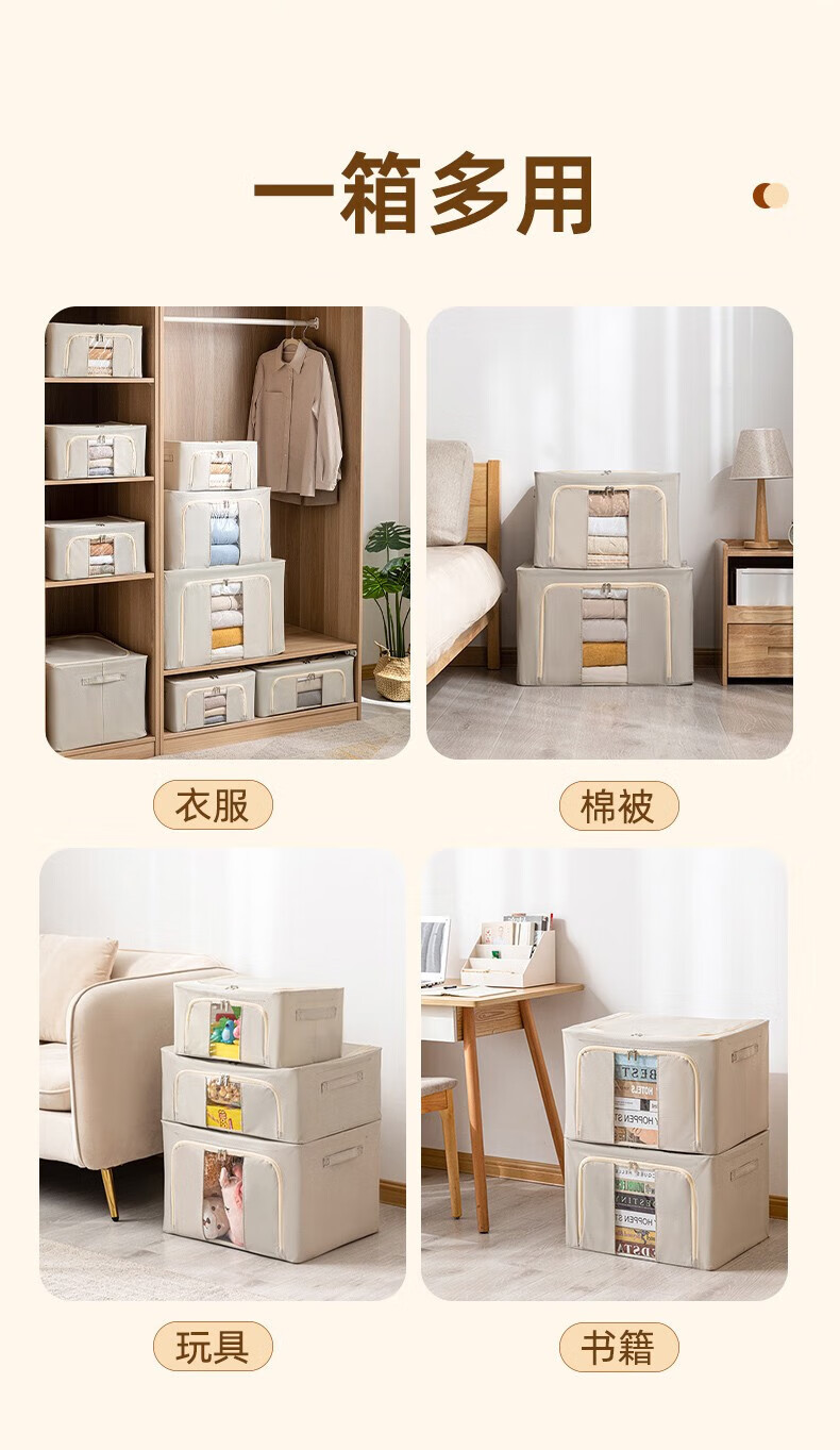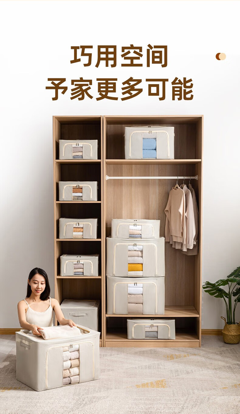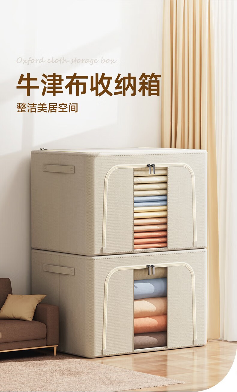 太力 收纳箱衣服收纳箱棉被布艺整理箱布艺玩具储物箱百纳盒一个装 【牛津布收纳箱】66L