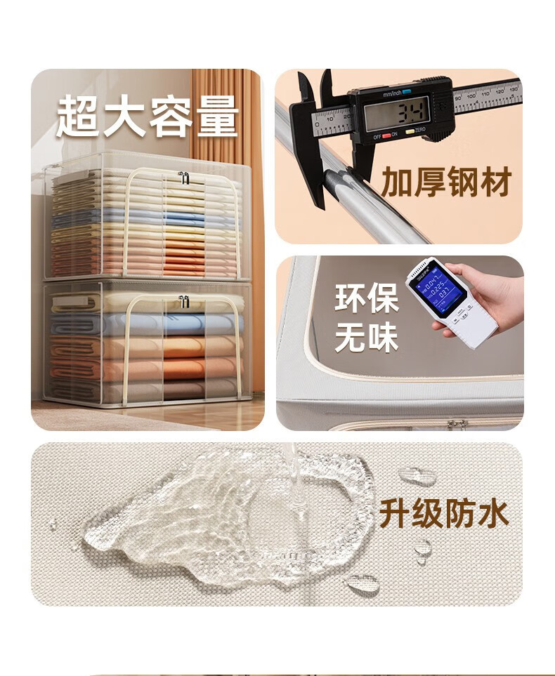 太力收纳箱衣服棉被布艺牛津布玩具储物箱搬家箱折叠百纳箱盒一个装 【环保牛津布收纳箱】66L