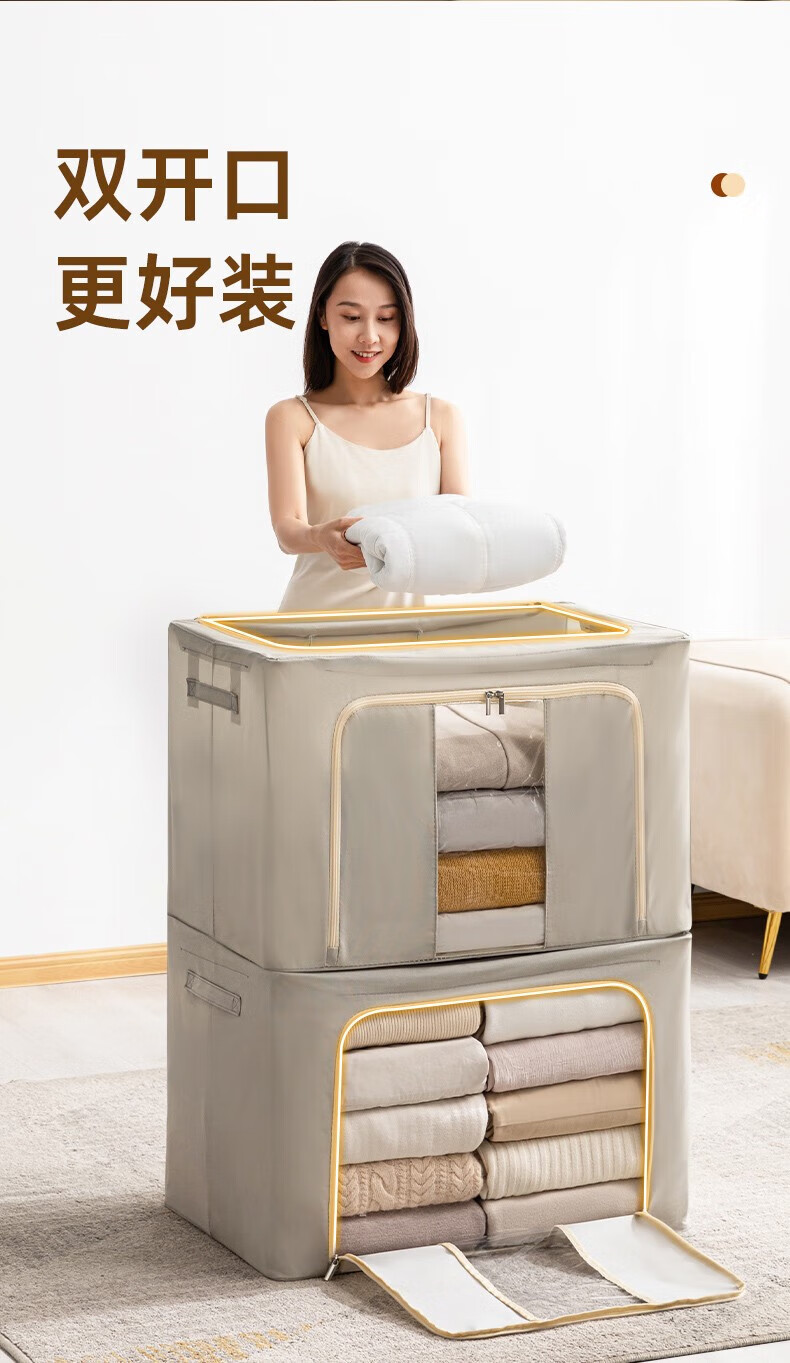 太力收纳箱衣服棉被布艺整理箱牛津布折叠储物箱一个装 牛津布收纳箱66L