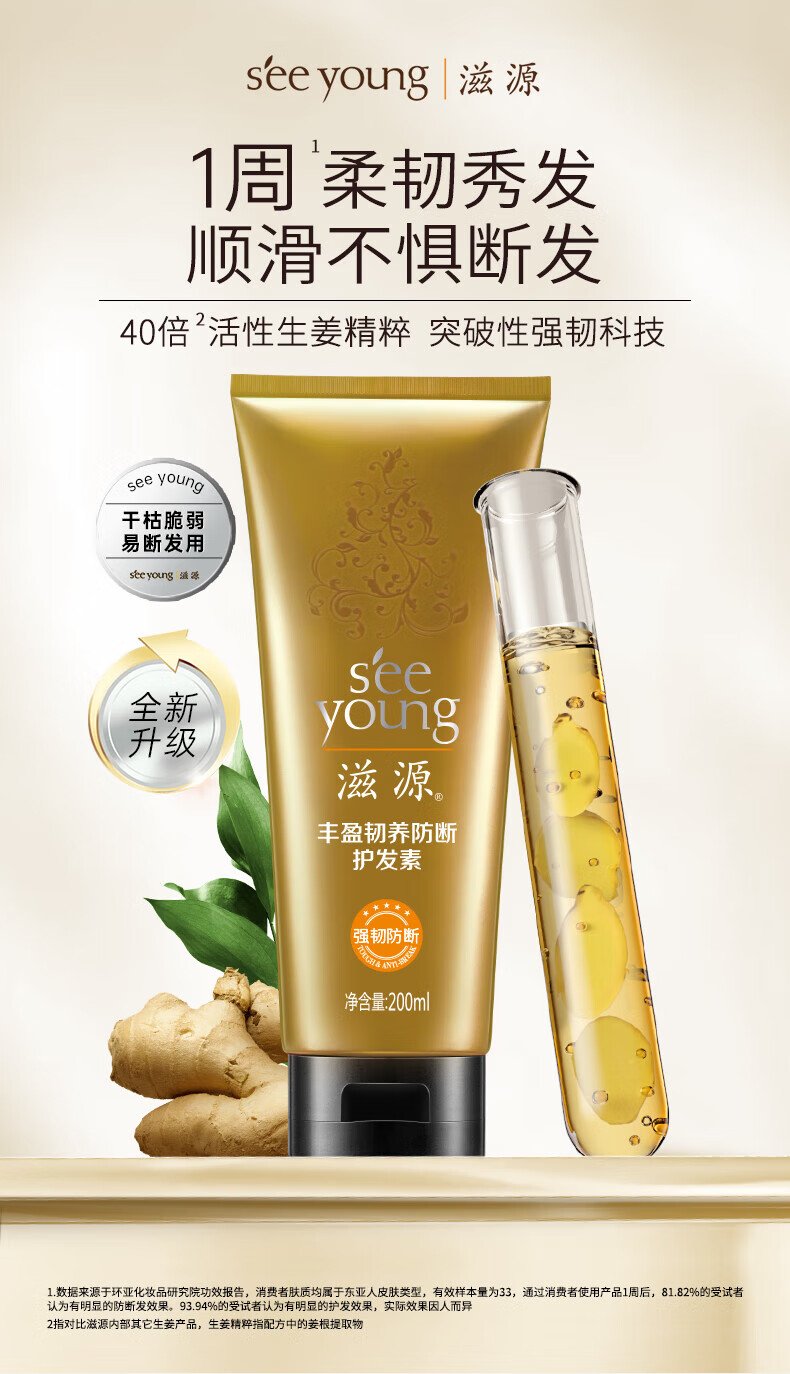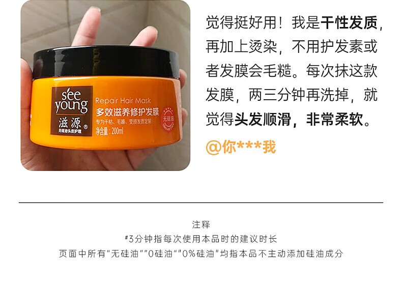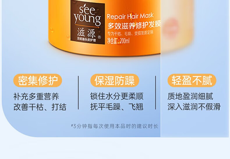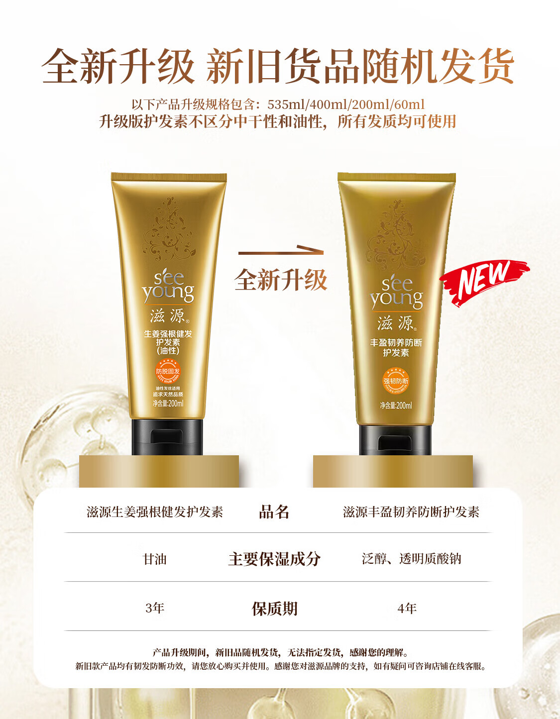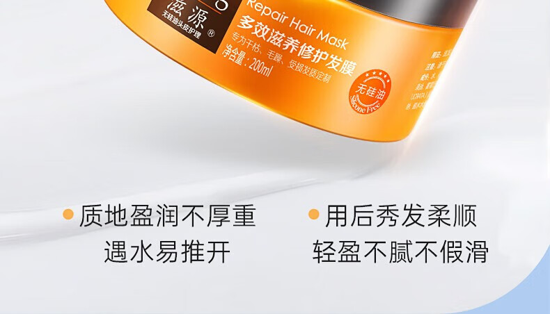 滋源护发素柔顺修护无硅油干枯补水烫染改善毛躁生姜防断发膜200ml 多效滋养修护受损发膜 200ml*1罐