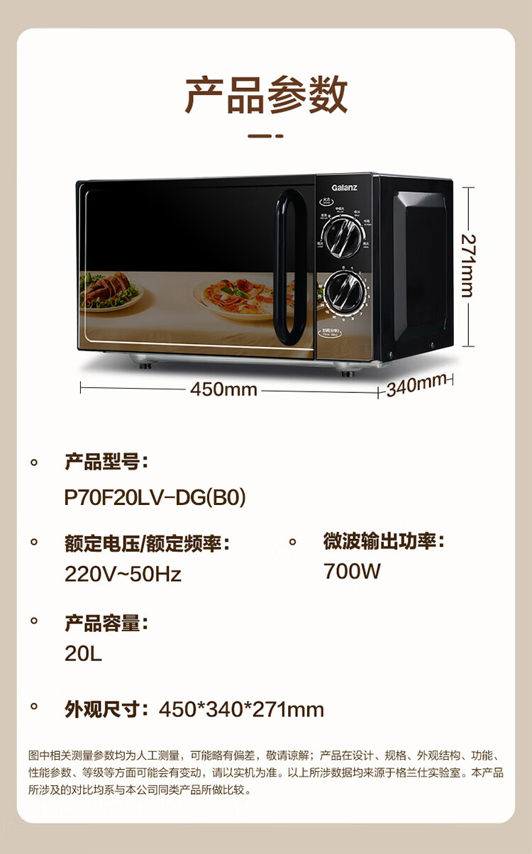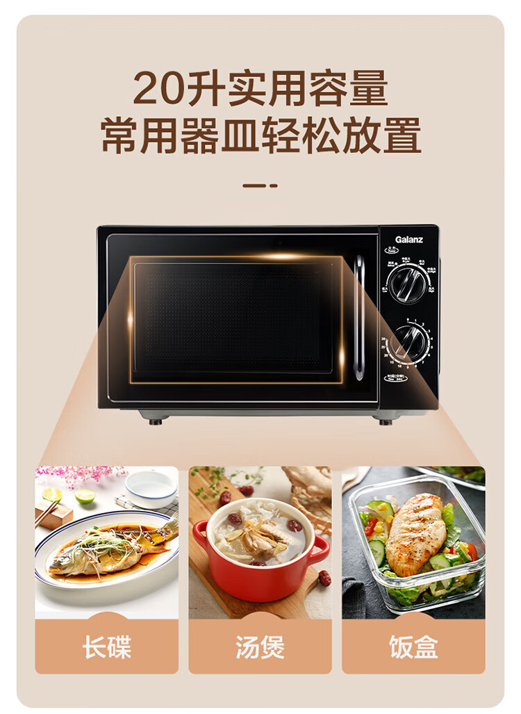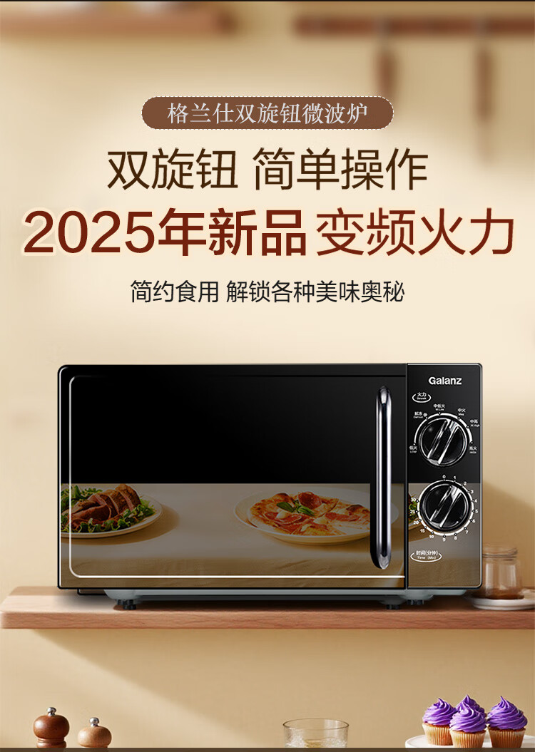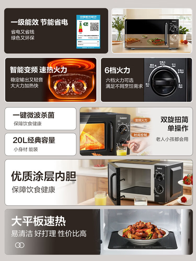 格兰仕(Galanz)【国家补贴】变频微波炉家用20L容量 平板均匀加热 双旋钮便捷操作 小型 易清洁 2025年新品DG 升级变频一级能效