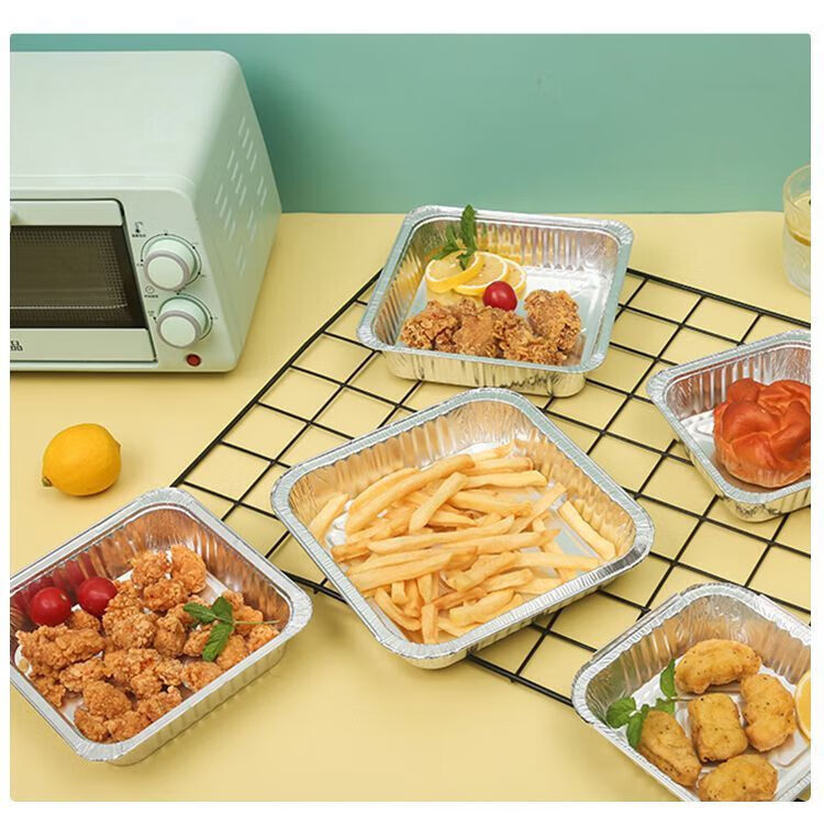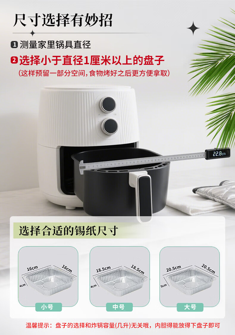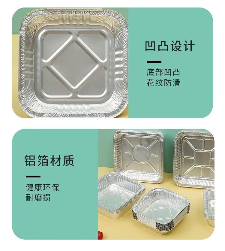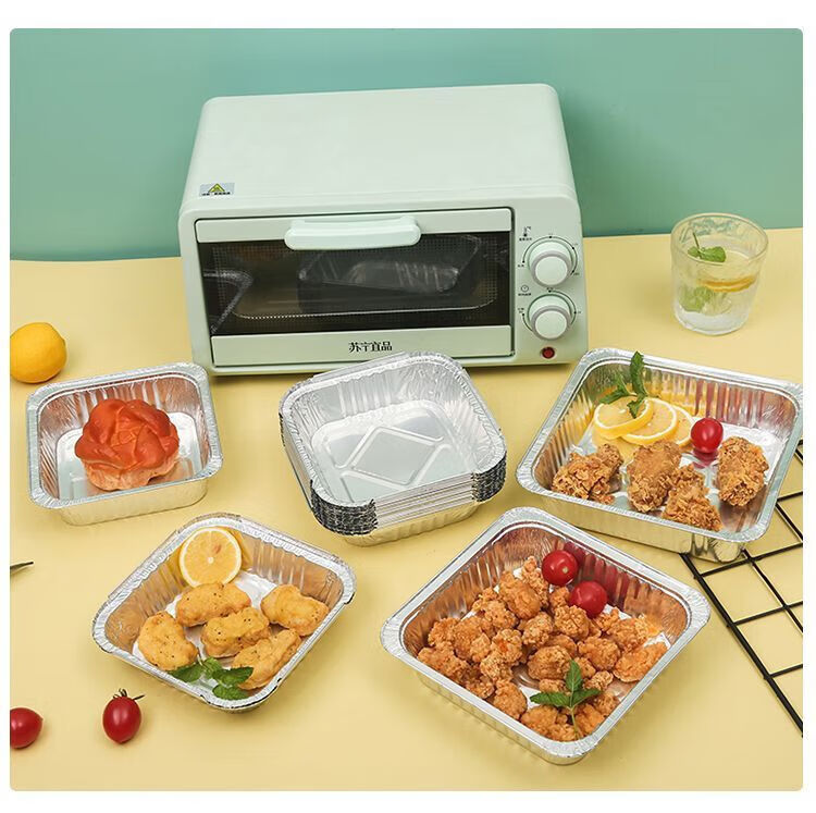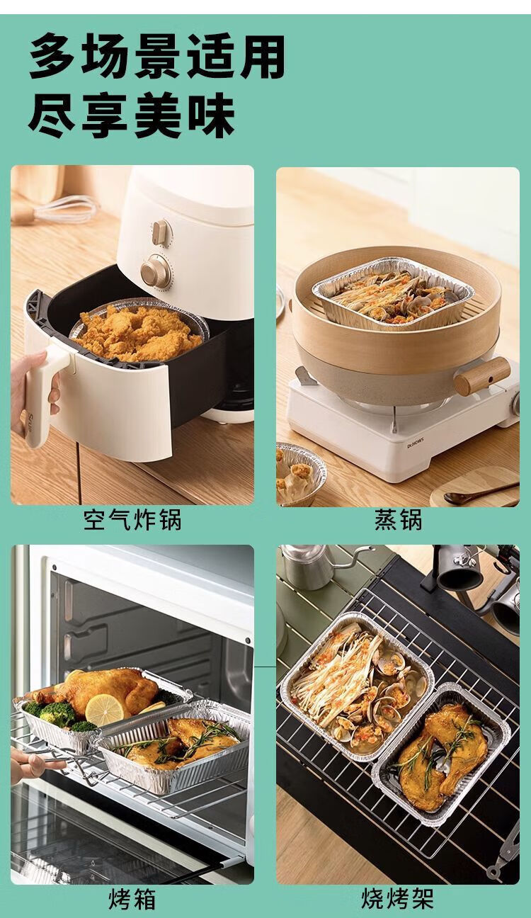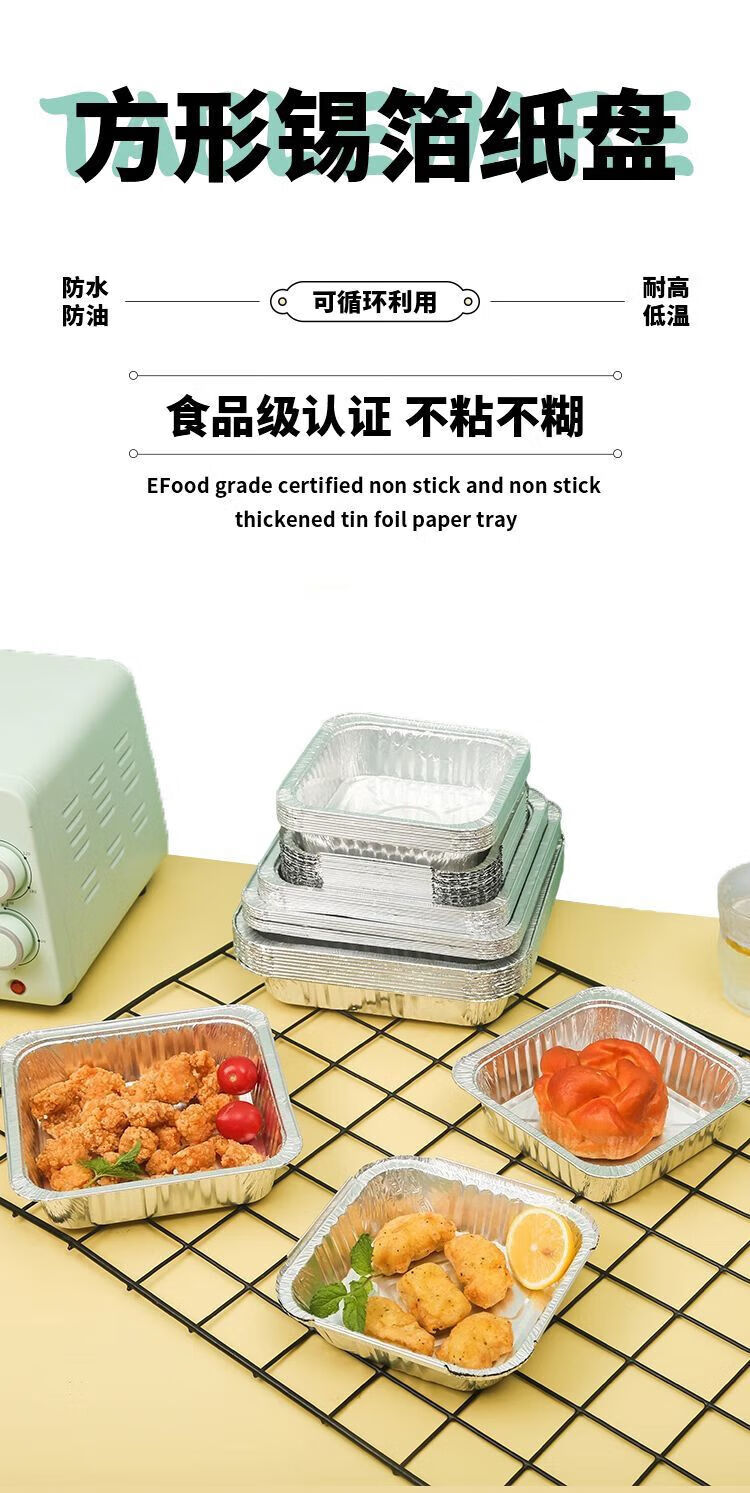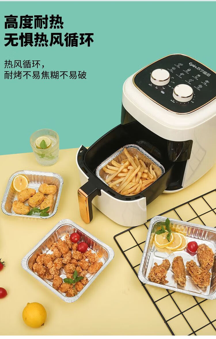 百丽德空气炸锅专用纸锡纸盘烧烤箱烘焙锡箔碗家用锡纸盒食品级食物纸碗 方形【宽18cm】4.5-6L锅通用 40个【加厚食品级】加送十个