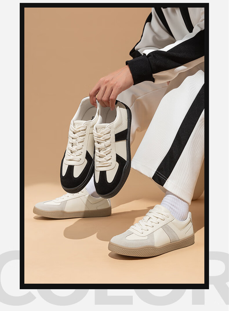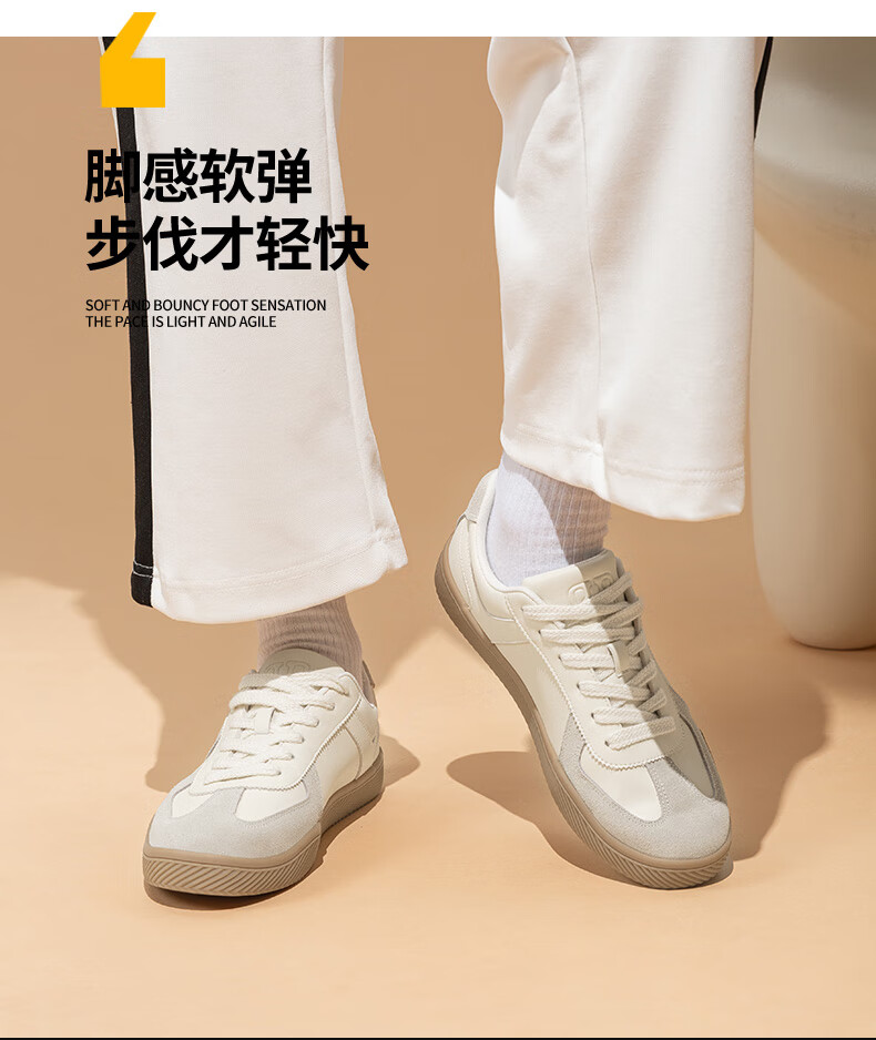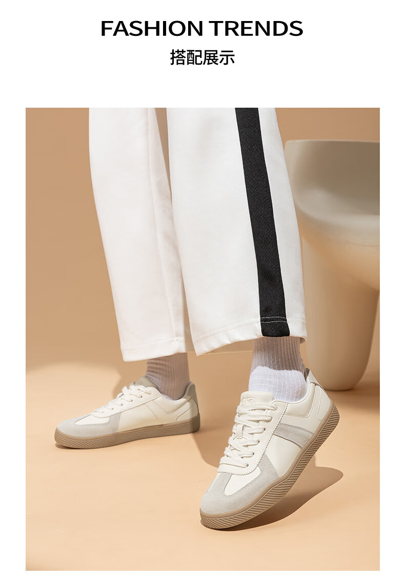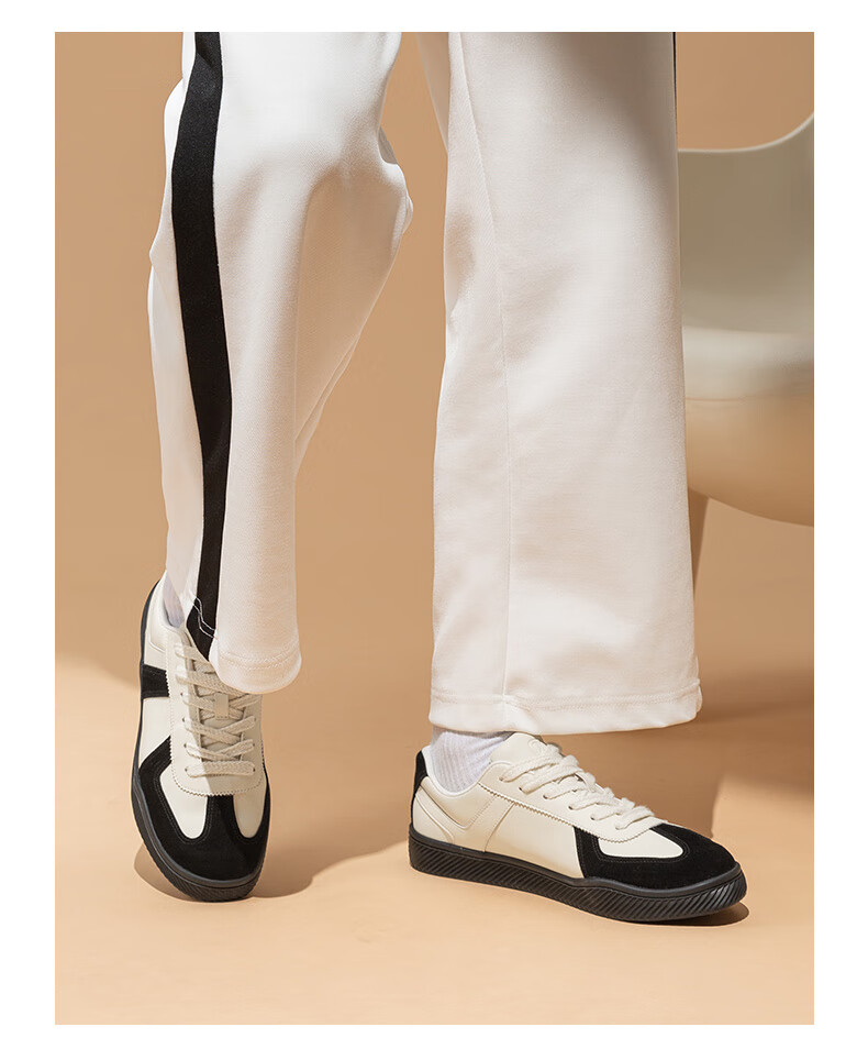 百思图25运动德训鞋平跟圆头男休闲鞋J2507BM5 米色/蓝色/红色 43