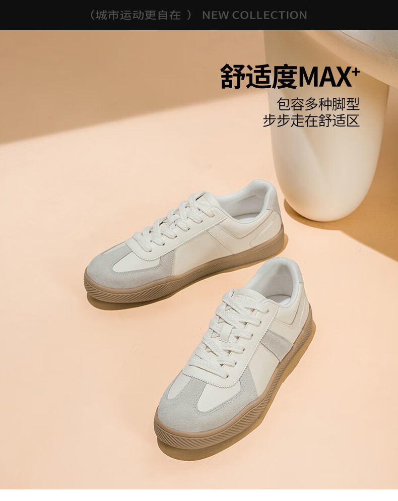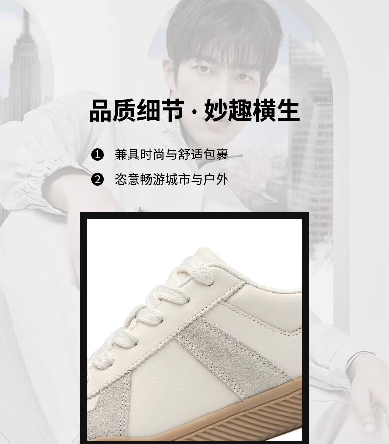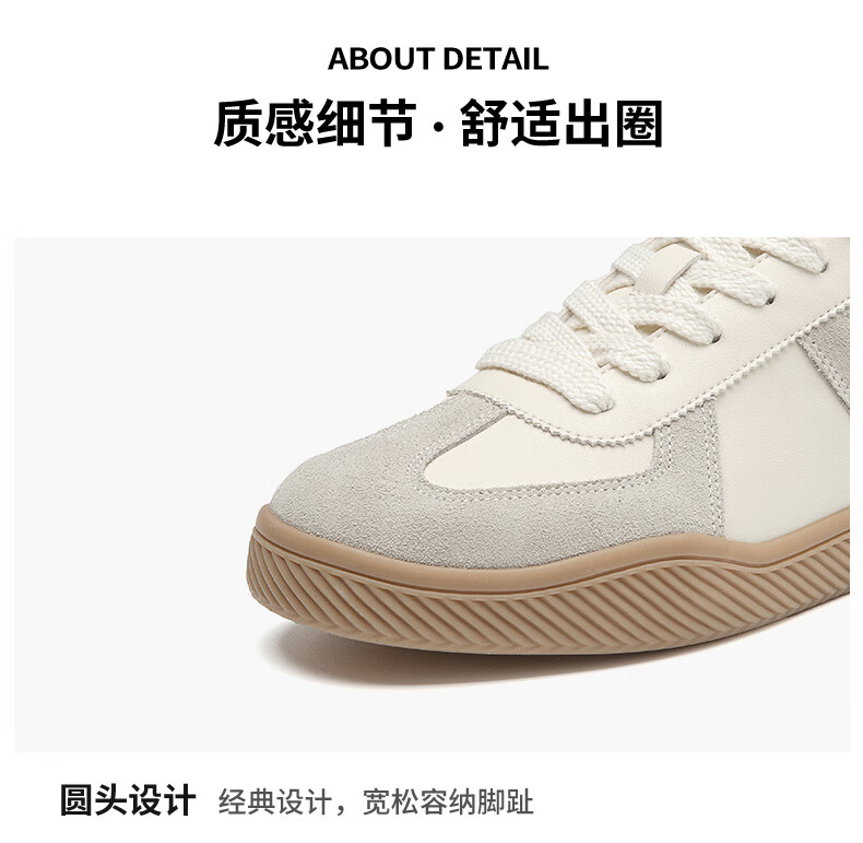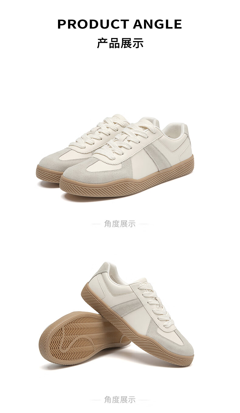 百思图25运动德训鞋平跟圆头男休闲鞋J2507BM5 米色/蓝色/红色 43