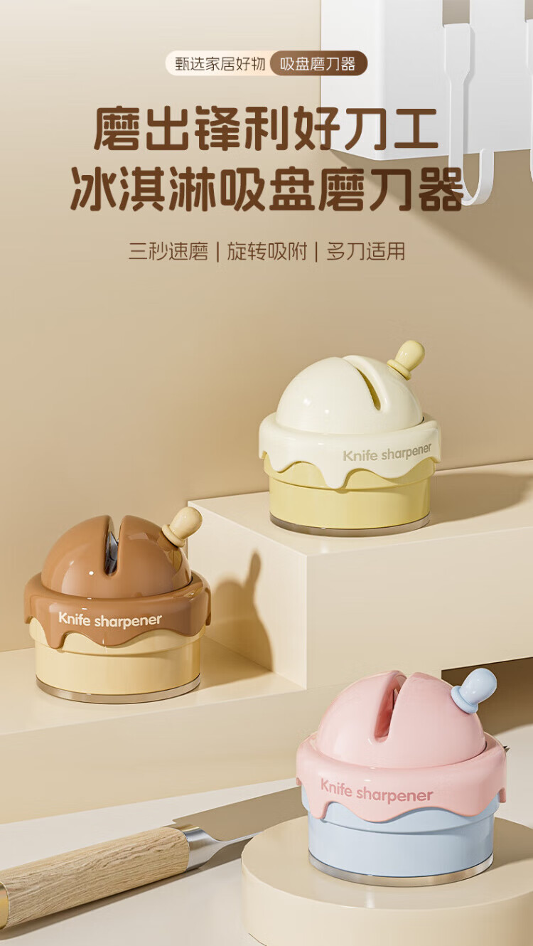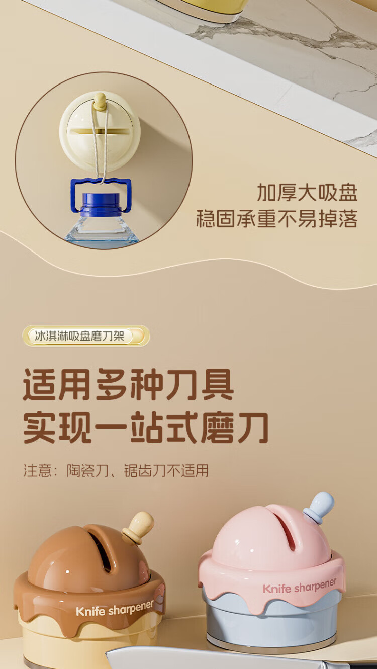 WCZ德国吸盘磨刀器厨房专用多功能细磨菜刀剪刀工具吸盘磨刀石 吸盘磨刀石/奶油白【三秒速磨】