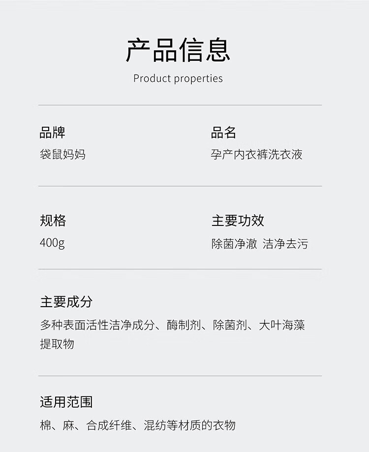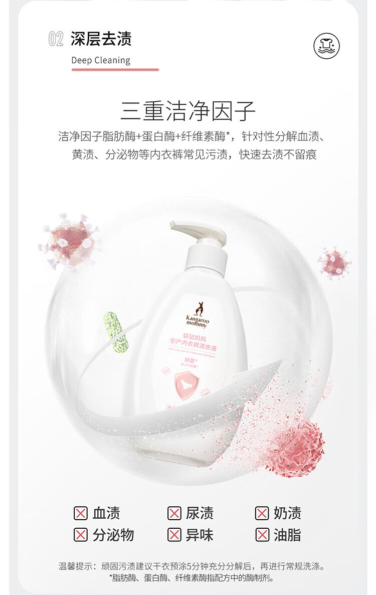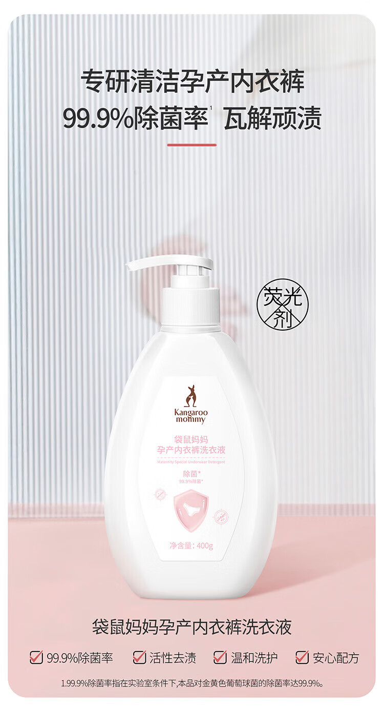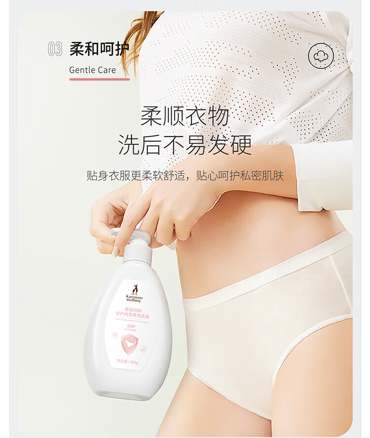 袋鼠妈妈(Kangaroo Mommy)内衣内裤洗衣液准孕妇洁净去血渍污迹准孕期母婴除菌专用手洗涤液 内衣洗衣液400g