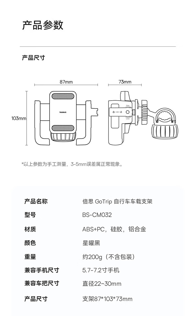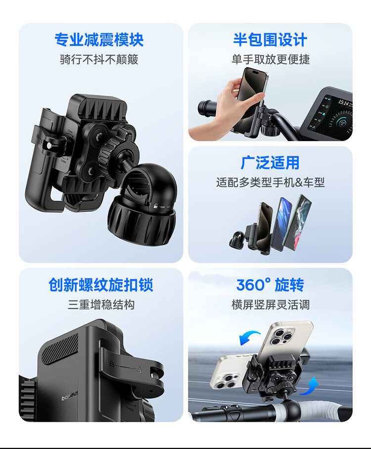 倍思(Baseus)电动车手机支架自行车骑行支架摩托车户外骑行导航固定器外卖骑手快递架子减震防滑骑行装备通用