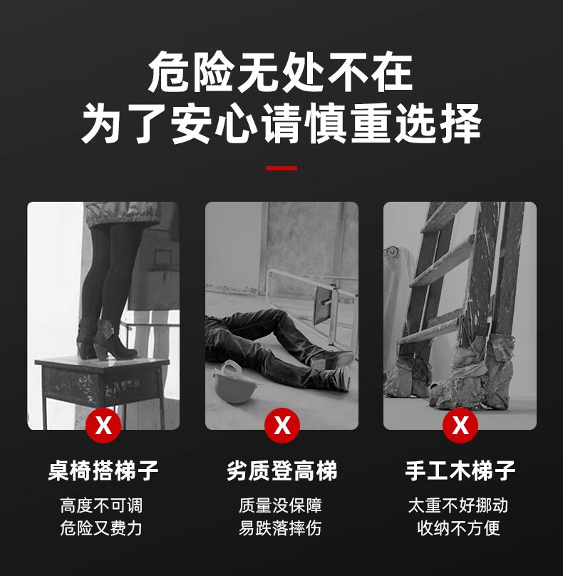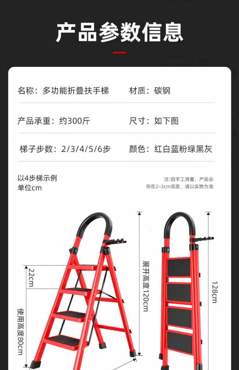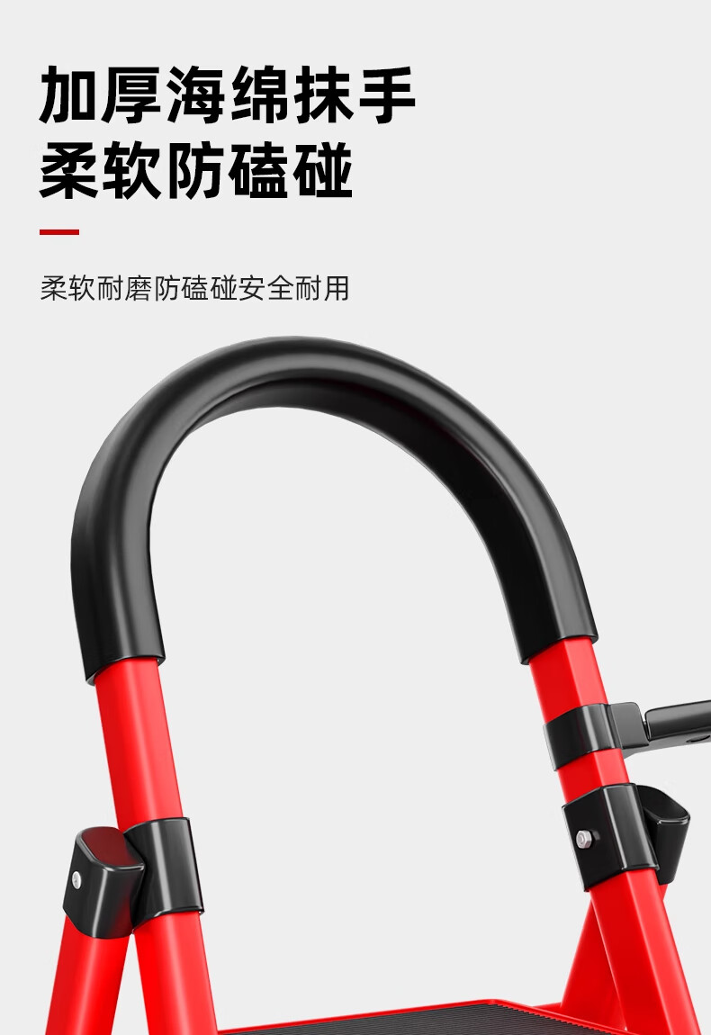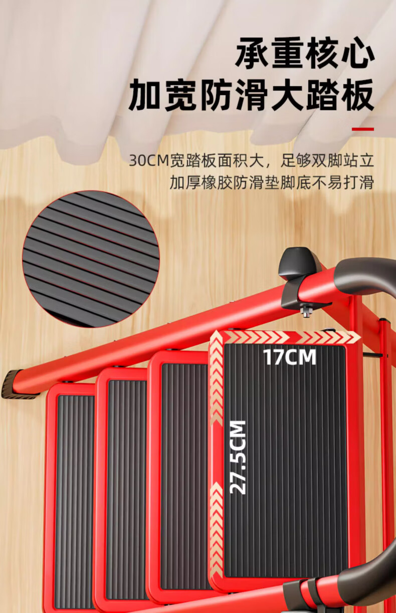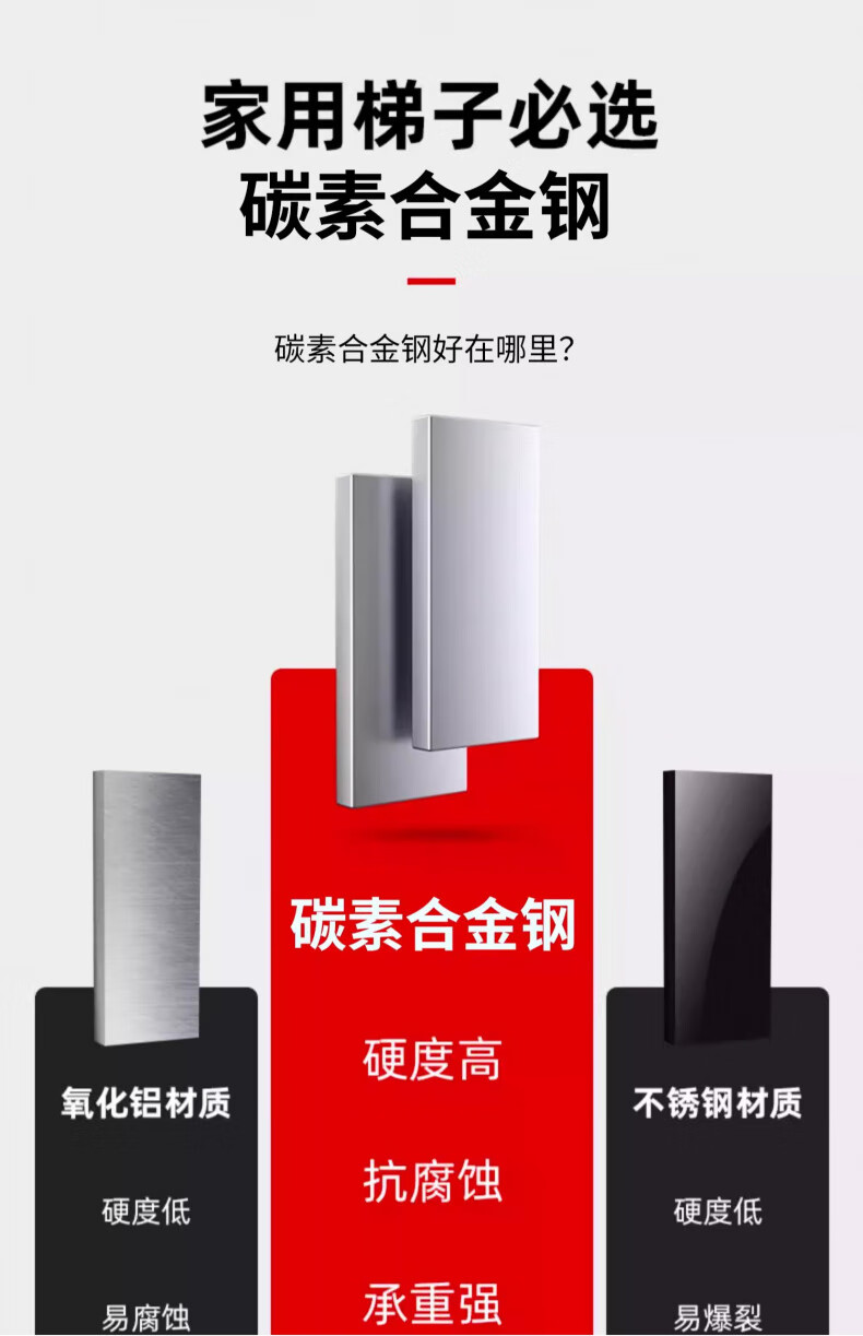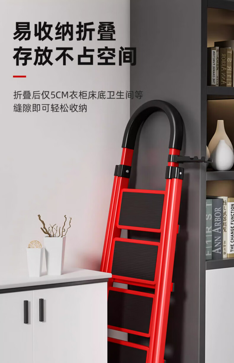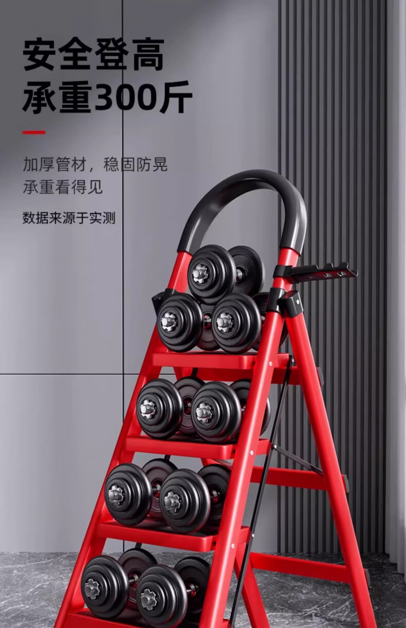 法兰加德国高端梯子家用折叠伸缩室内楼梯人字梯多功能升降不锈钢五步梯 【承重1000斤】红色 四步梯 【加宽加厚踏板】安全卡扣+防滑脚垫