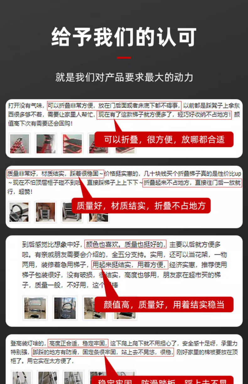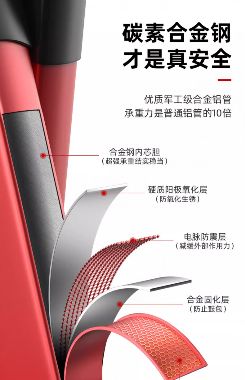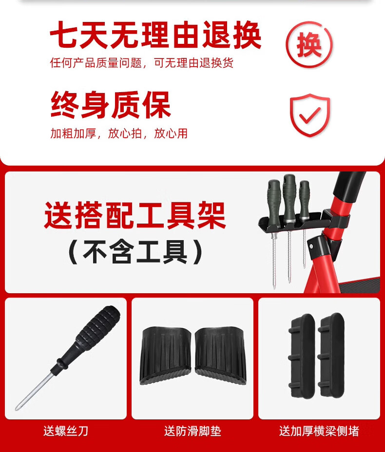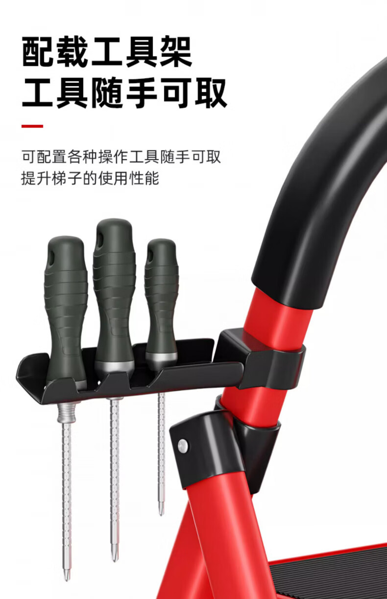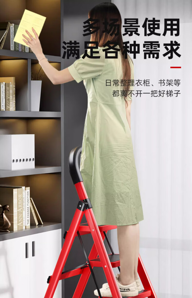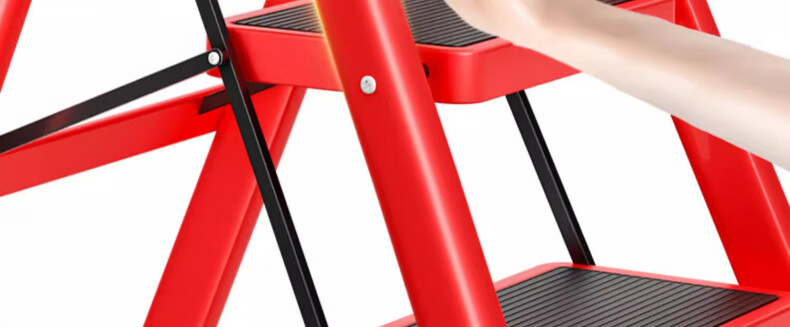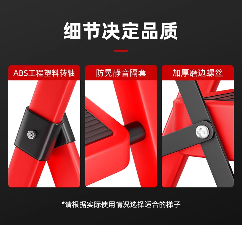 法兰加德国高端梯子家用折叠伸缩室内楼梯人字梯多功能升降不锈钢五步梯 【承重1000斤】红色 四步梯 【加宽加厚踏板】安全卡扣+防滑脚垫