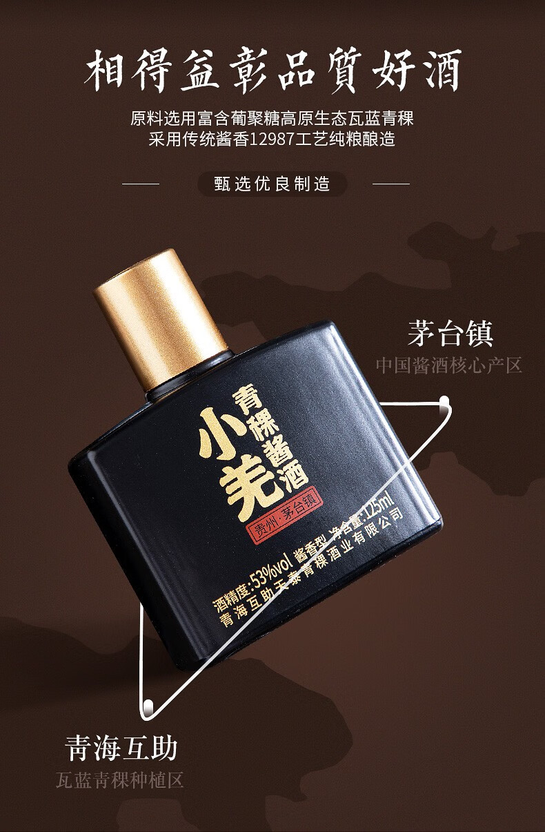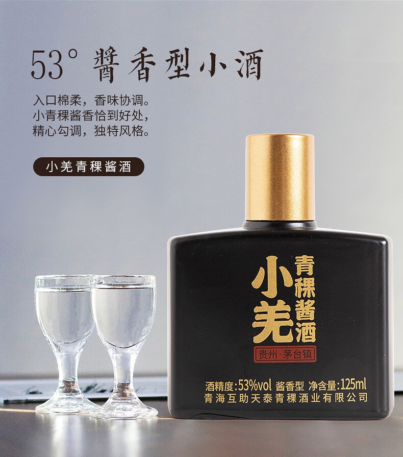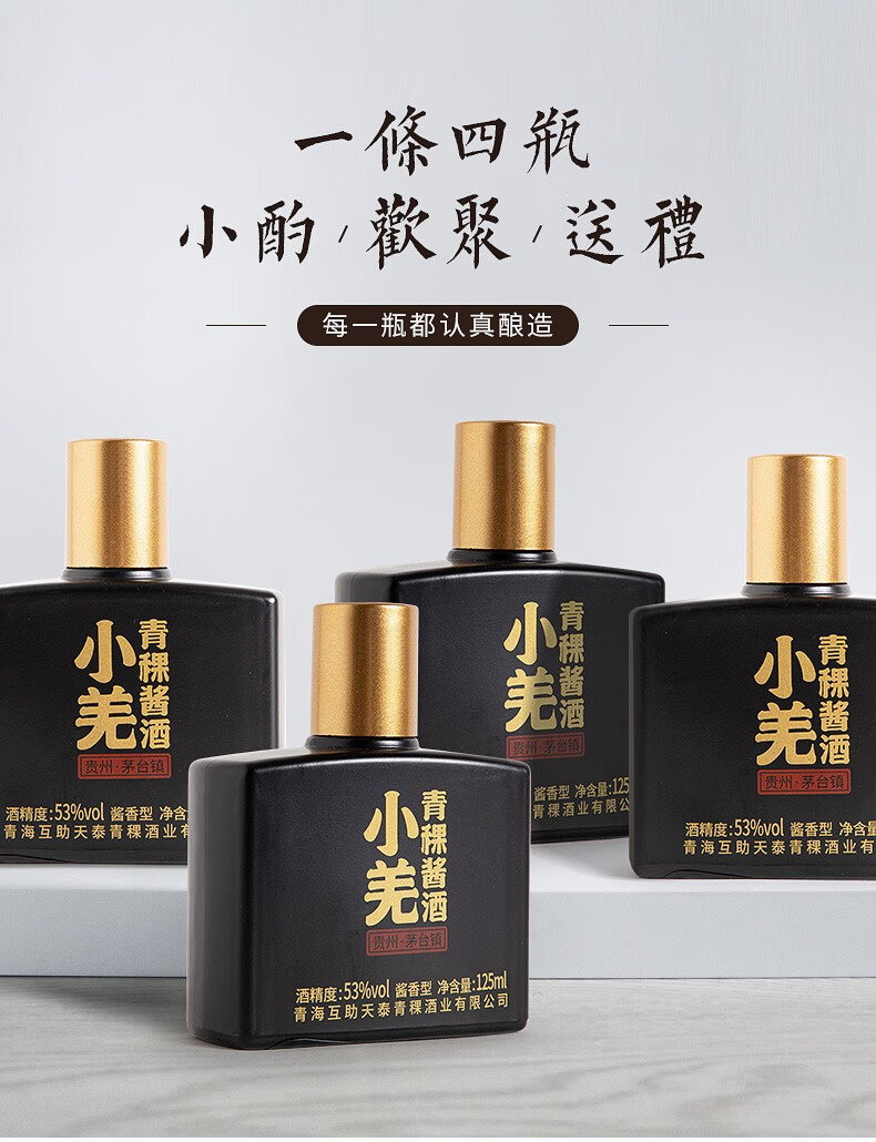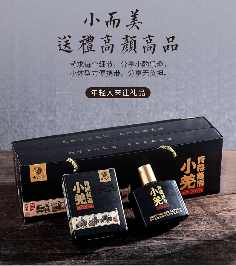 安兆坊小黑瓶53度125ml小瓶酒酱香型白酒小羌青稞酱酒 3种各1瓶体验价