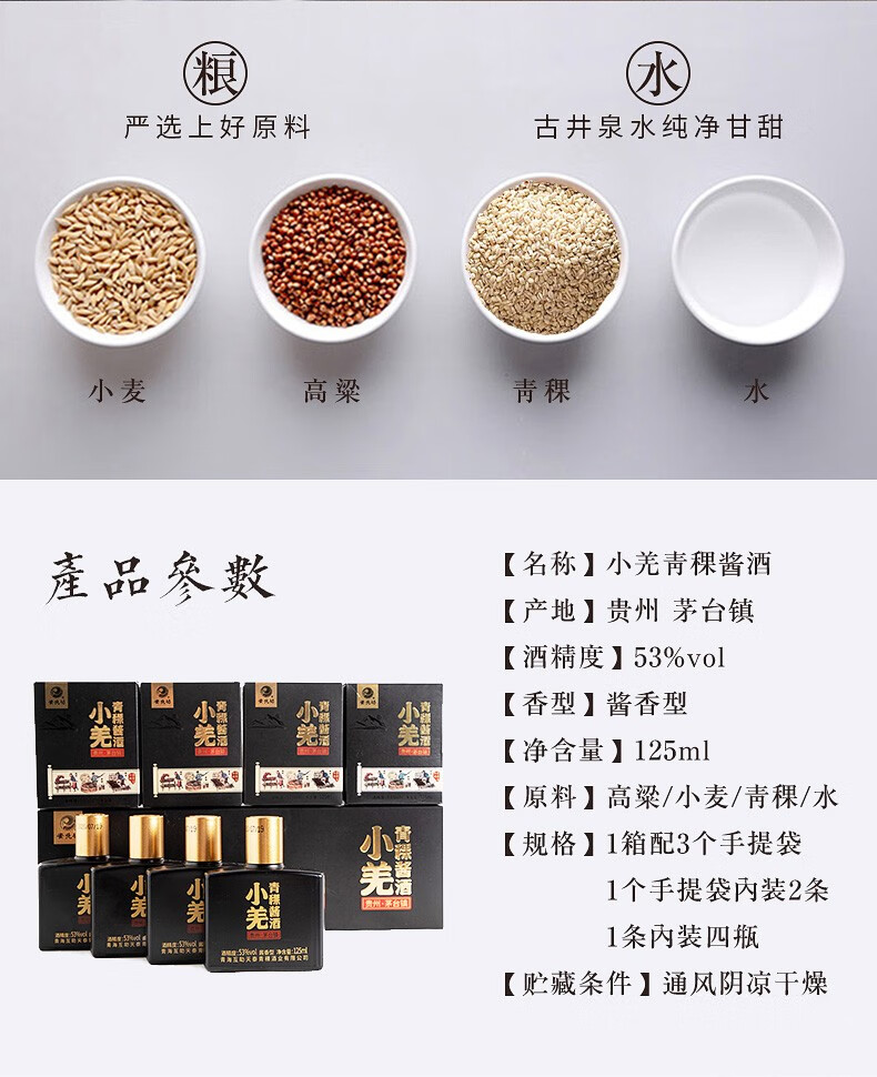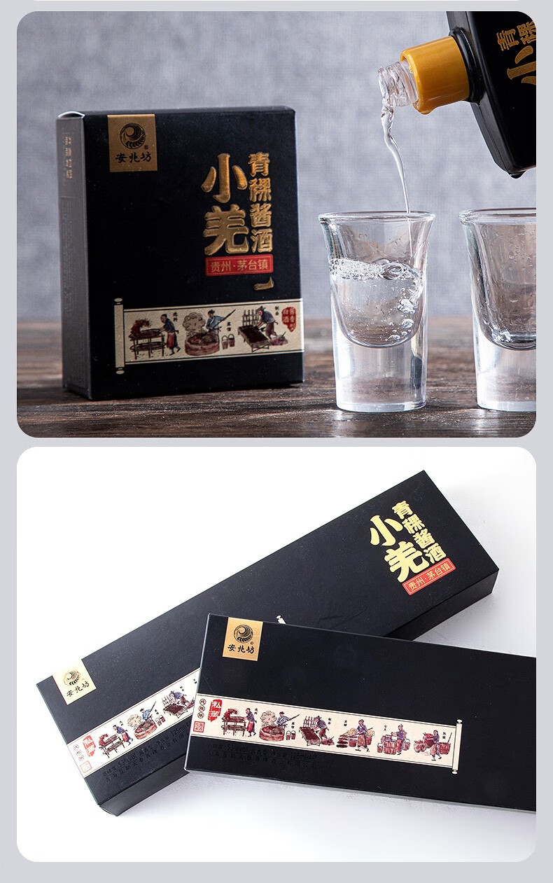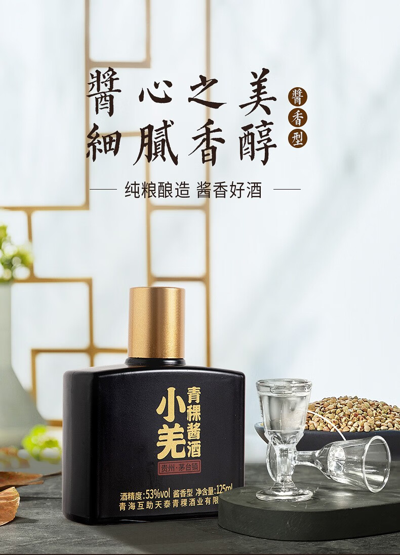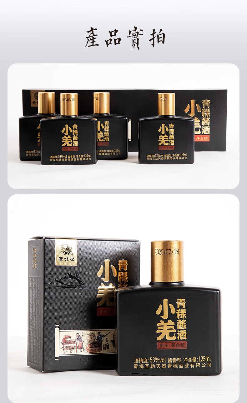 安兆坊小黑瓶53度125ml小瓶酒酱香型白酒小羌青稞酱酒 3种各1瓶体验价