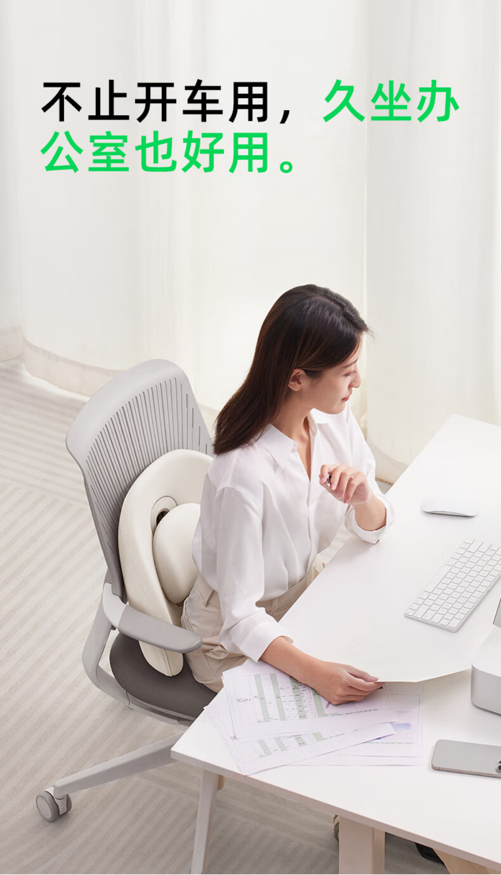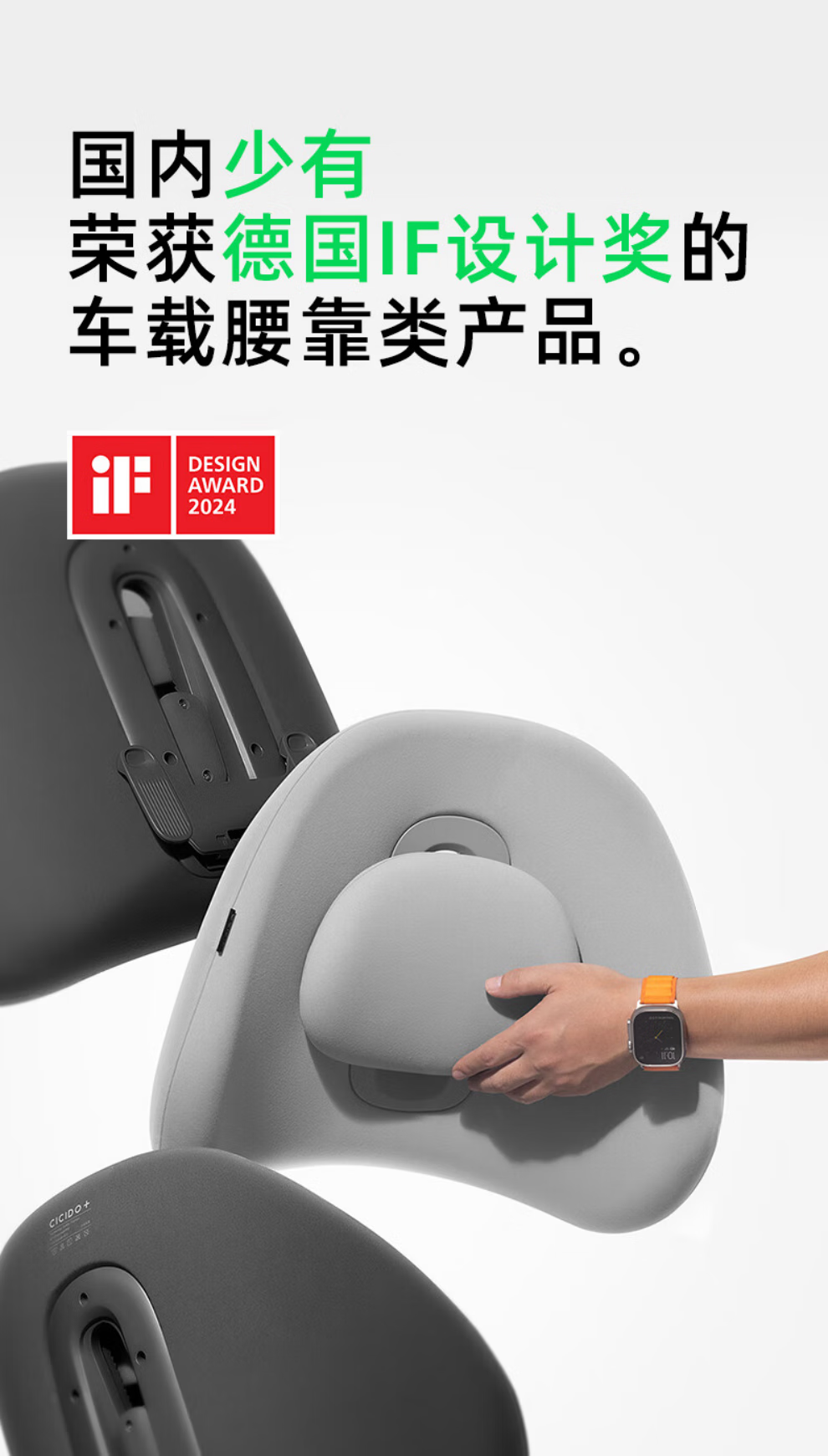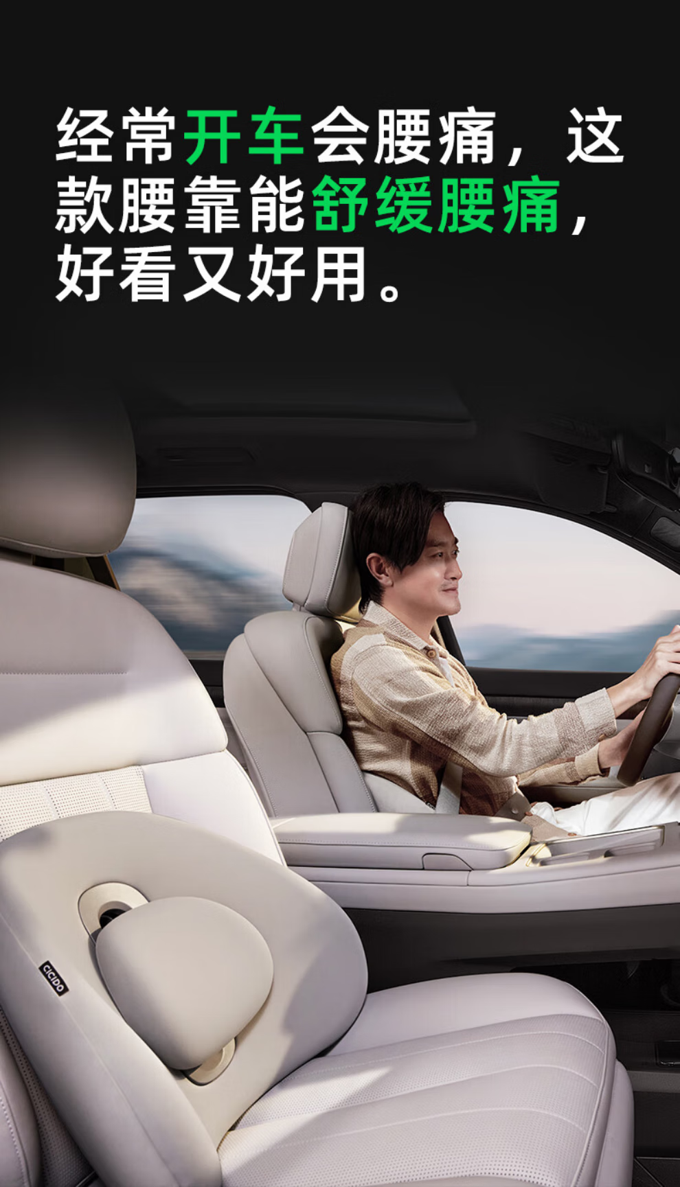 CICIDO/夕多汽车腰靠开车护腰靠垫座椅靠枕办公室四向可调节人体工学护腰套装 【套装】四向调节黑色腰靠 +短绒车巾*1
