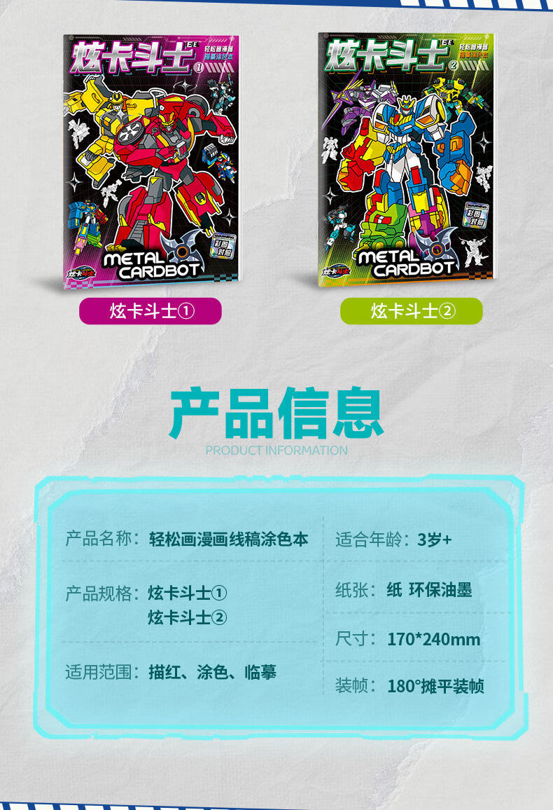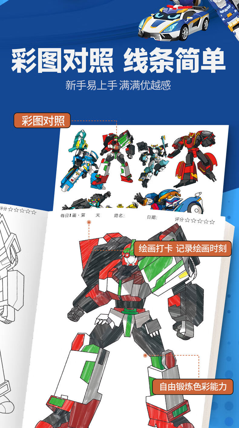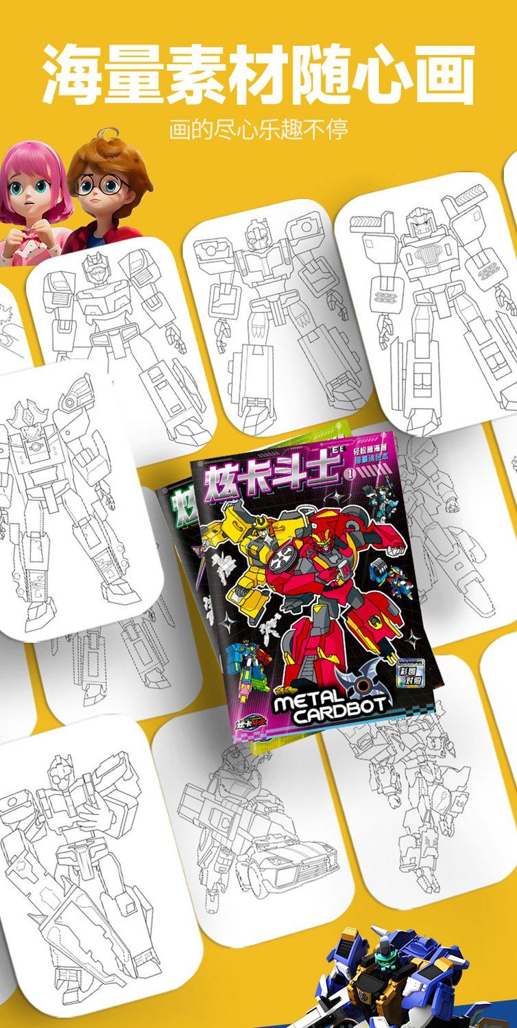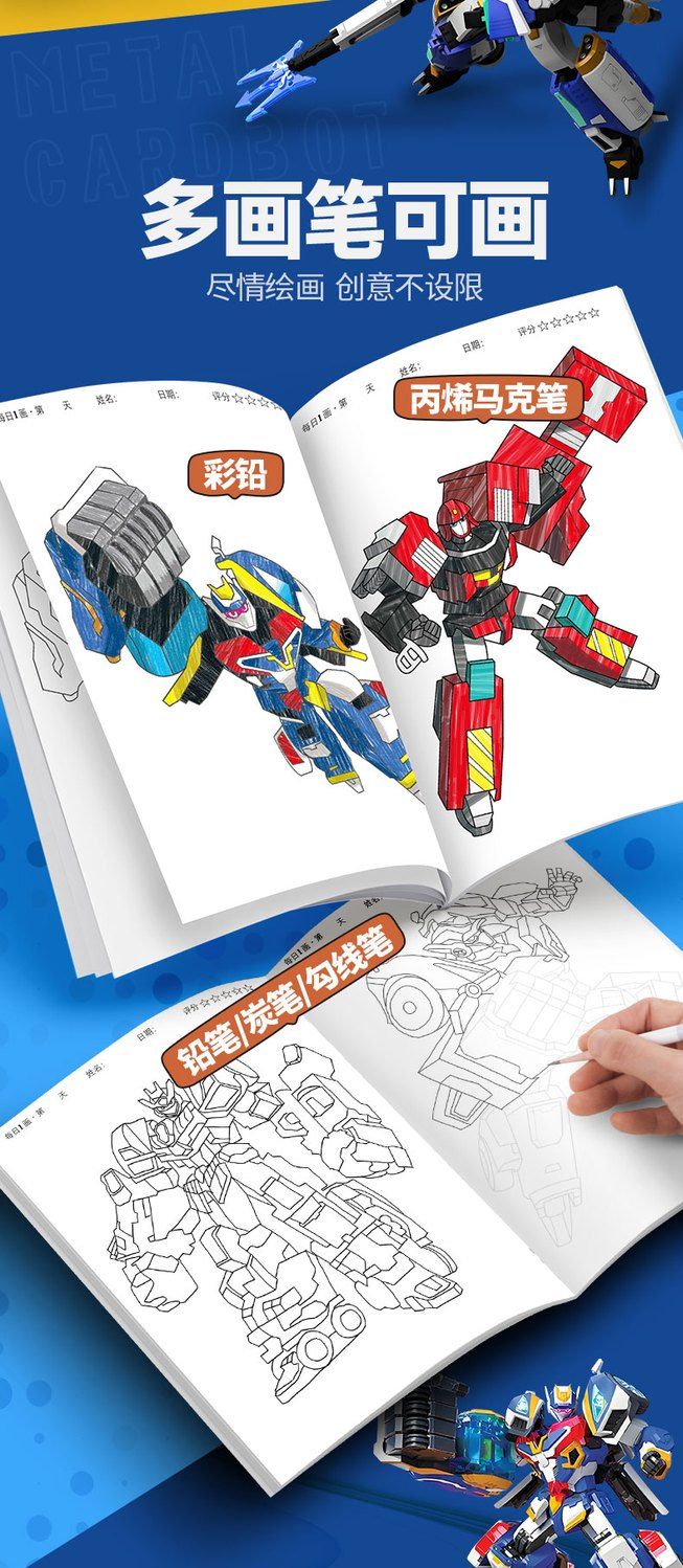 炫卡斗士机甲图画本儿童3-14岁卡通动漫画册控笔描摹画画涂鸦涂色本小学生卡通7-10岁幼儿园动漫周边 孩子抢着画【全套】炫卡斗士