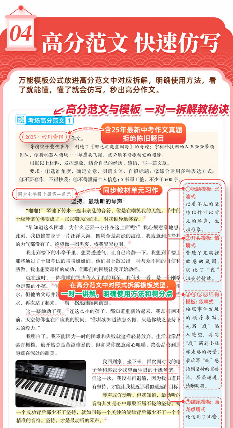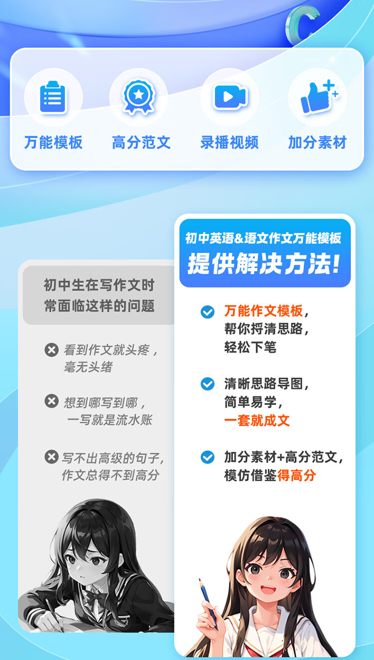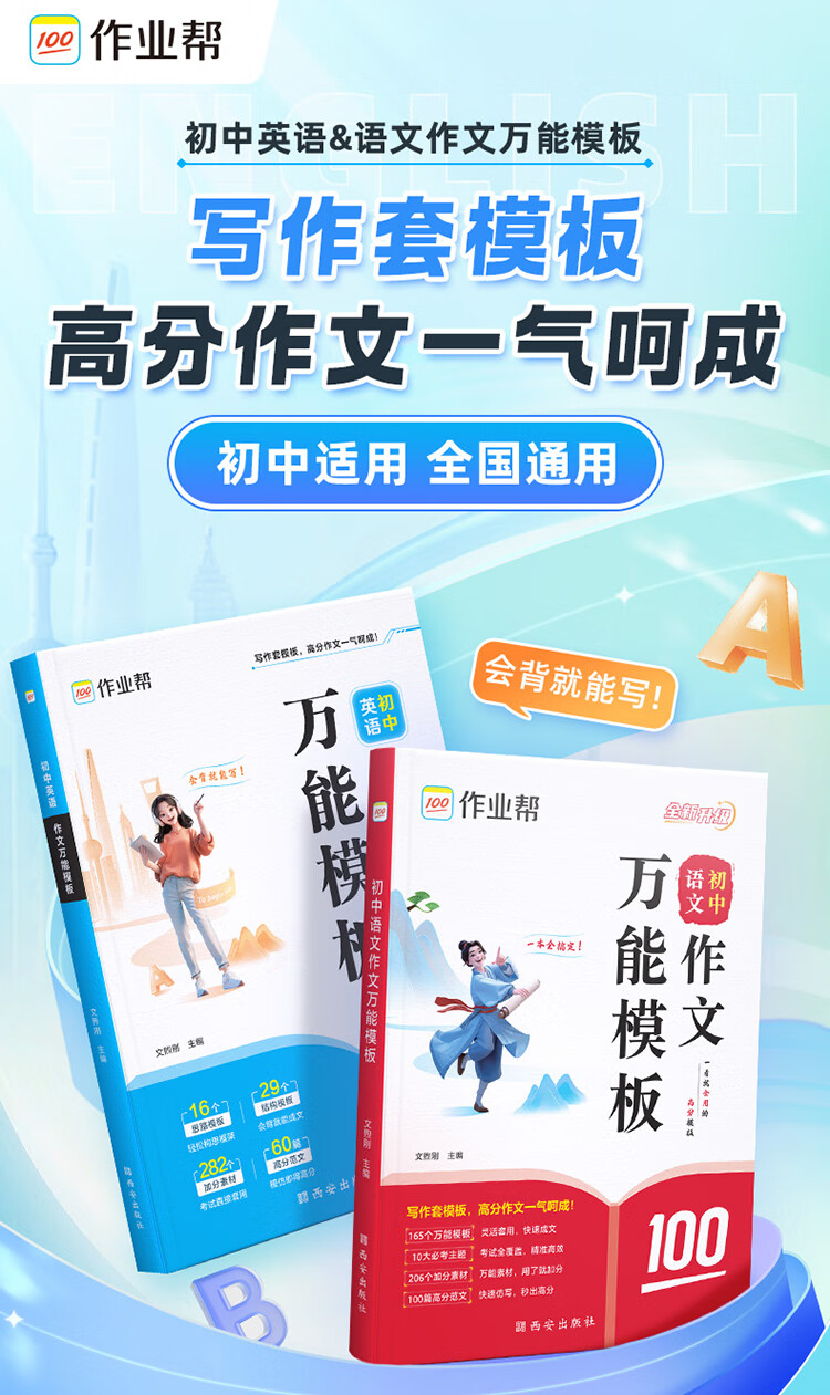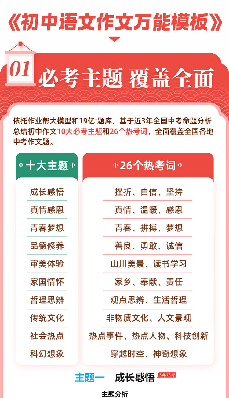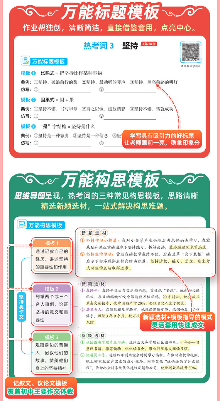 作业帮2025版初中语文作文万能模板&语文作文高分范文精选七八九年级中考满分作文素材九大主体押题预测名师视频讲解初中教辅·全国通用 【1册】初中语文作文万能模板 无规格