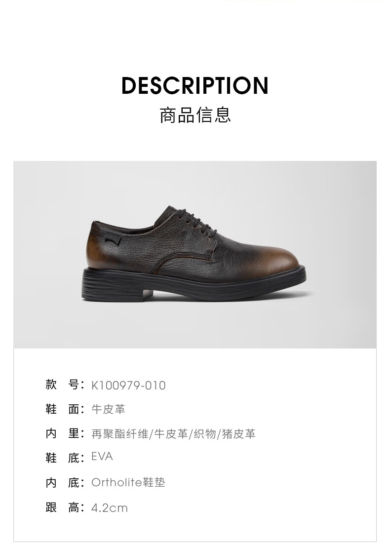 CAMPER【新品】男鞋Dean系带德比鞋商务通勤休闲真皮圆头皮鞋 多色013 39