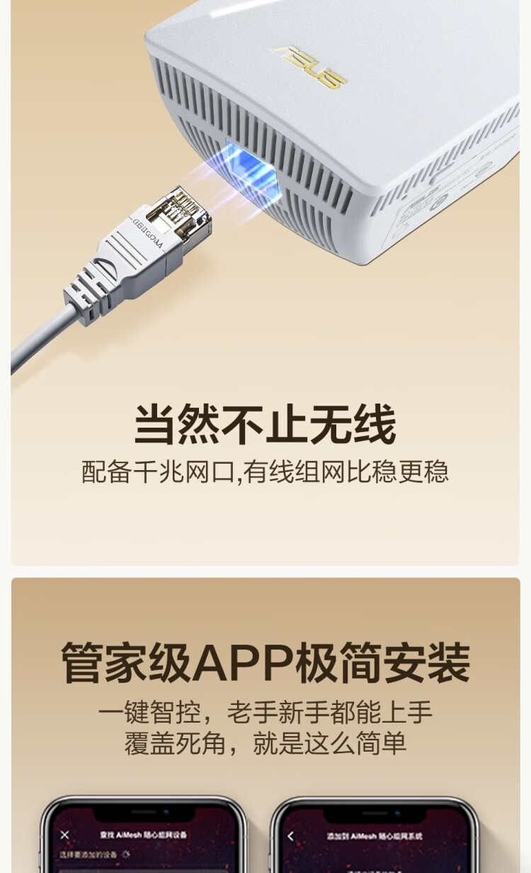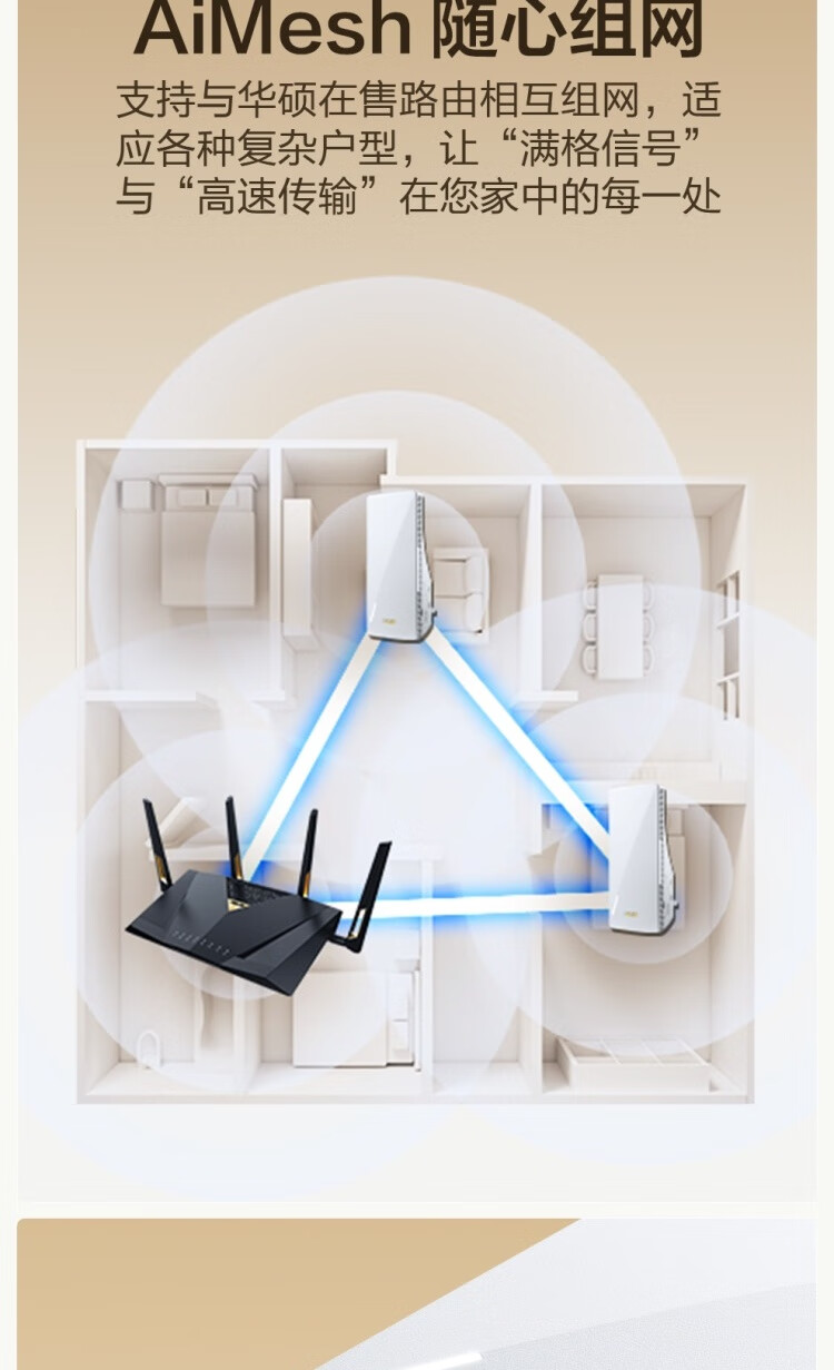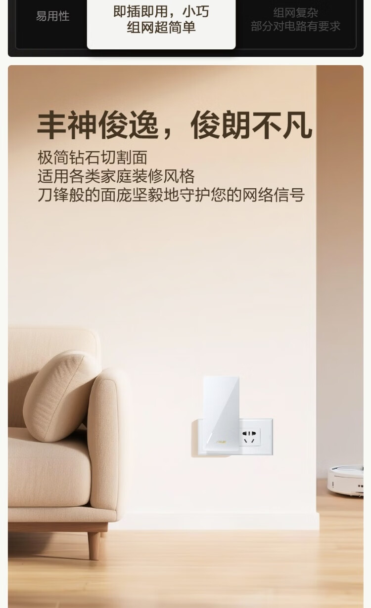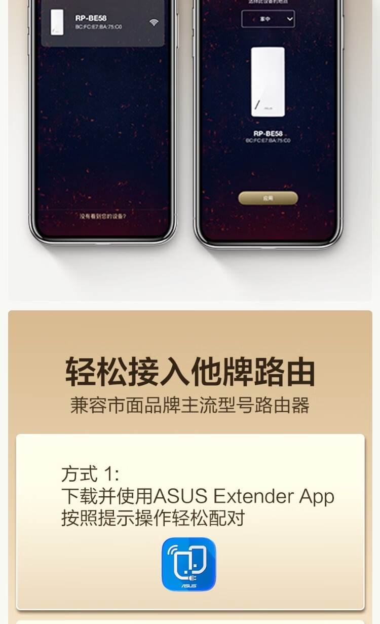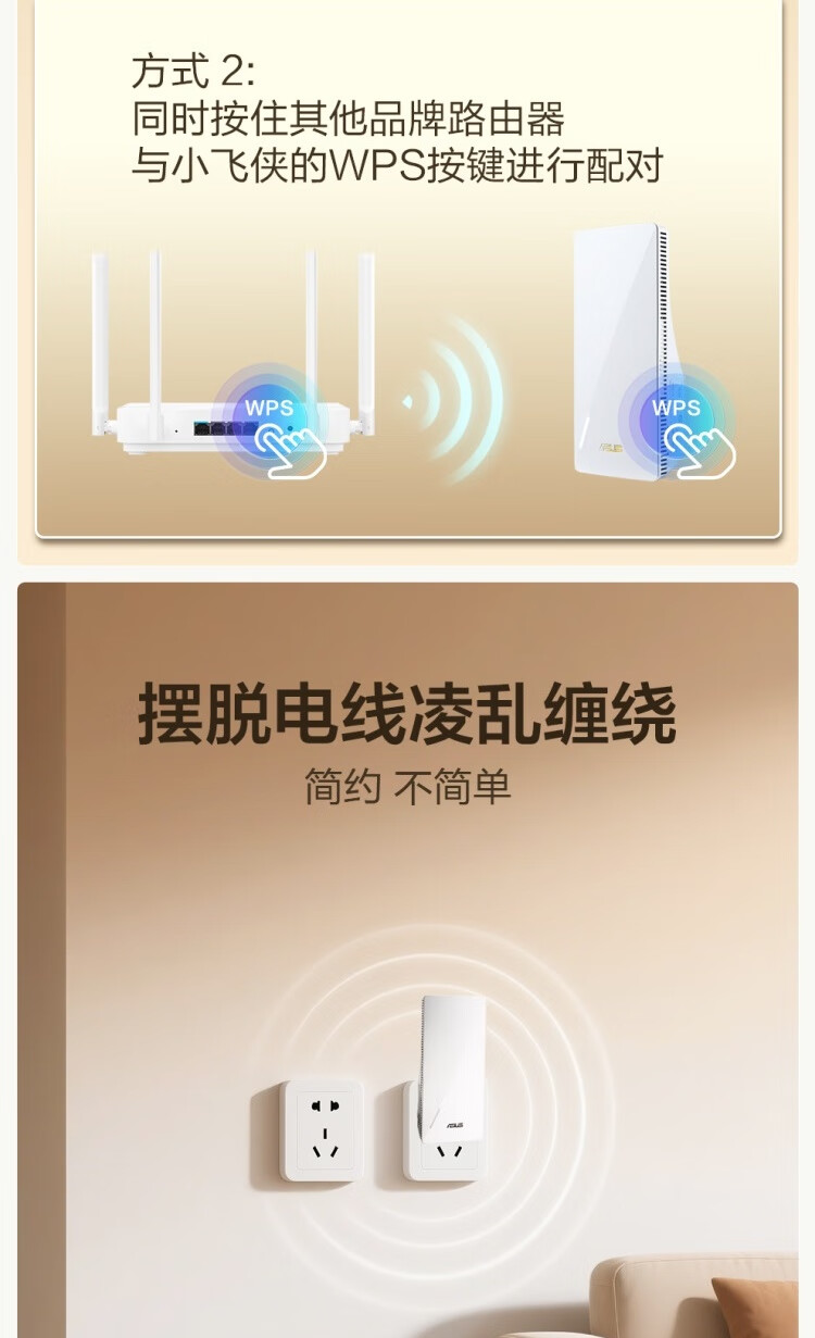华硕(ASUS)小飞侠WiFi7信号放大器博通四核2.0G双频3600M无线增强小机身大覆盖RP-BE58