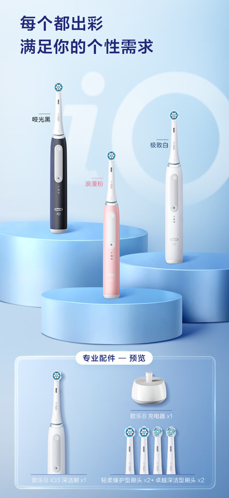 欧乐B智能电动牙刷iO3极致白刷头*4根源洁净国家补贴京东自营京东金榜生日礼物送男友送女友中秋送礼赠