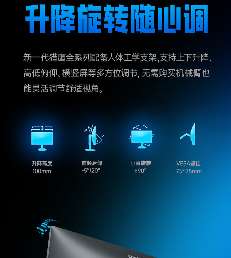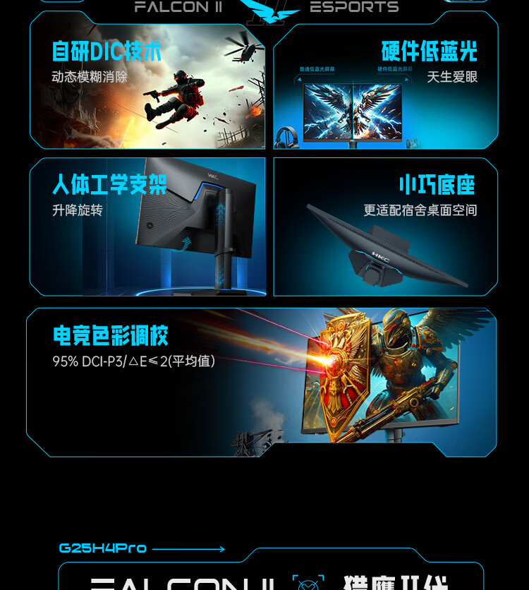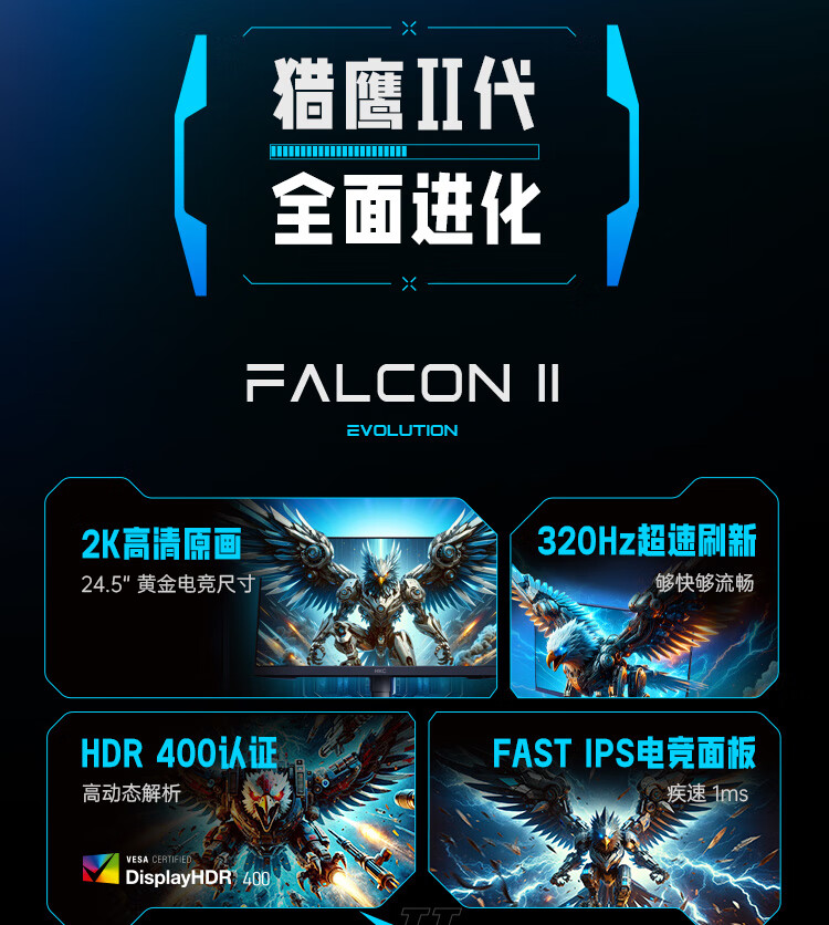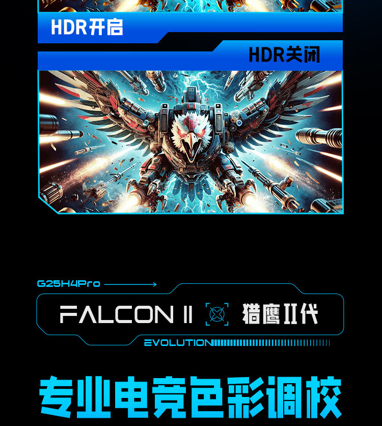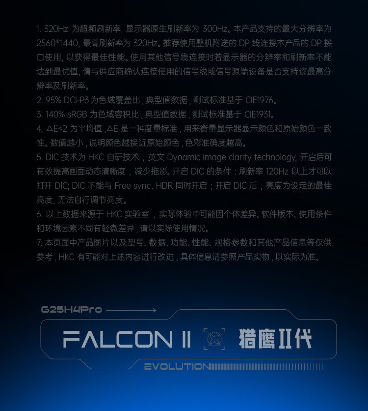HKC 24.5英寸2K 320Hz高刷FastIPS液晶屏硬件低蓝光HDR400旋转升降300Hz游戏电竞电脑显示器G25H4Pro