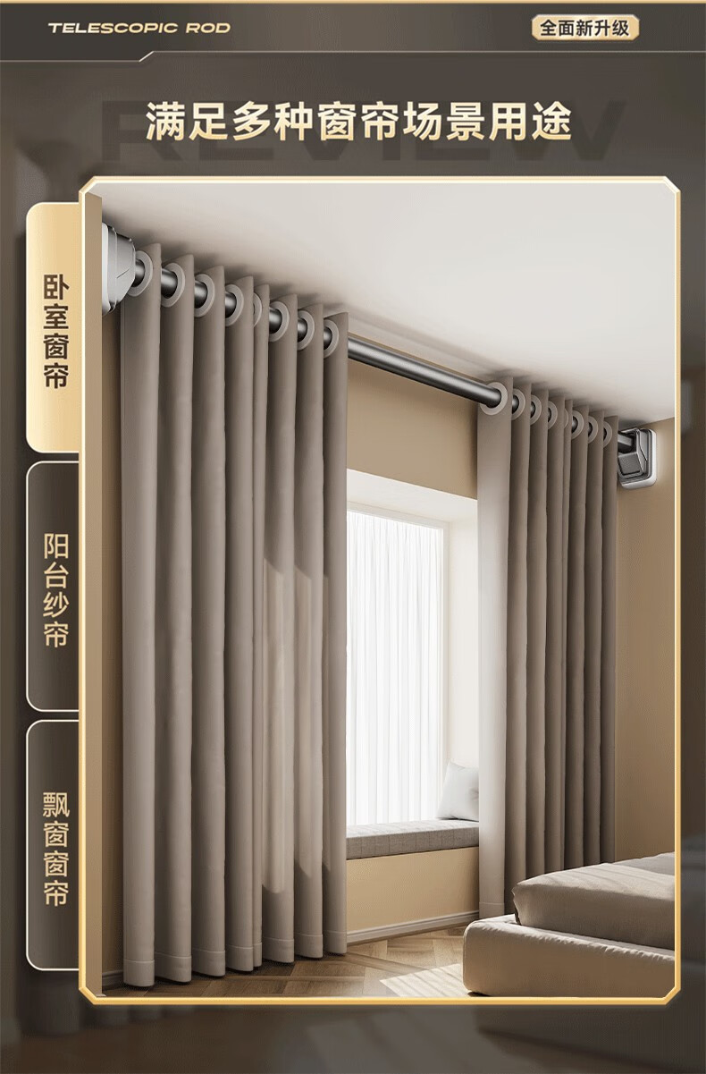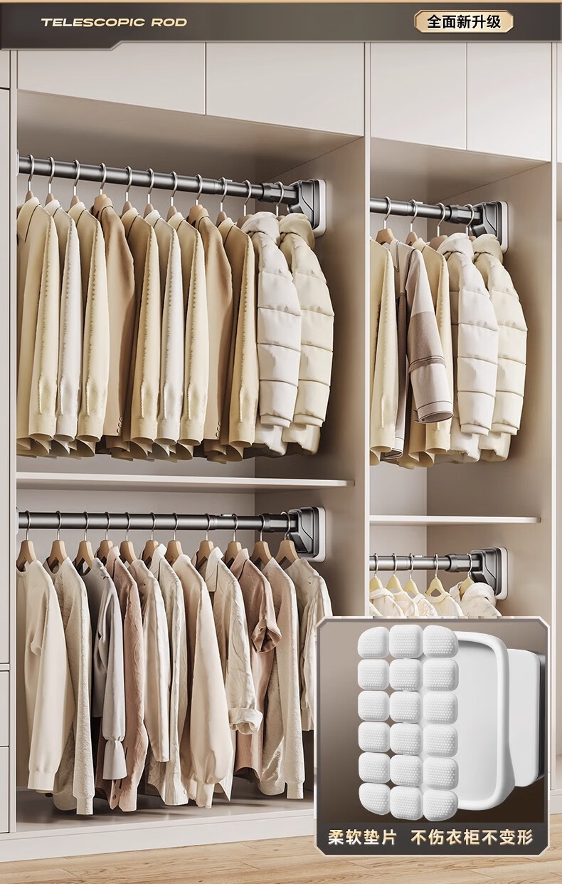 睦歌(MUGE)不锈钢免打孔伸缩杆晾衣杆阳台晾衣架卫生间窗帘支撑衣柜挂衣杆子 【不锈钢】承重结实款(旋转伸缩丨承重490斤) 33超粗管径,1.0~1.7米内(掉落包赔)