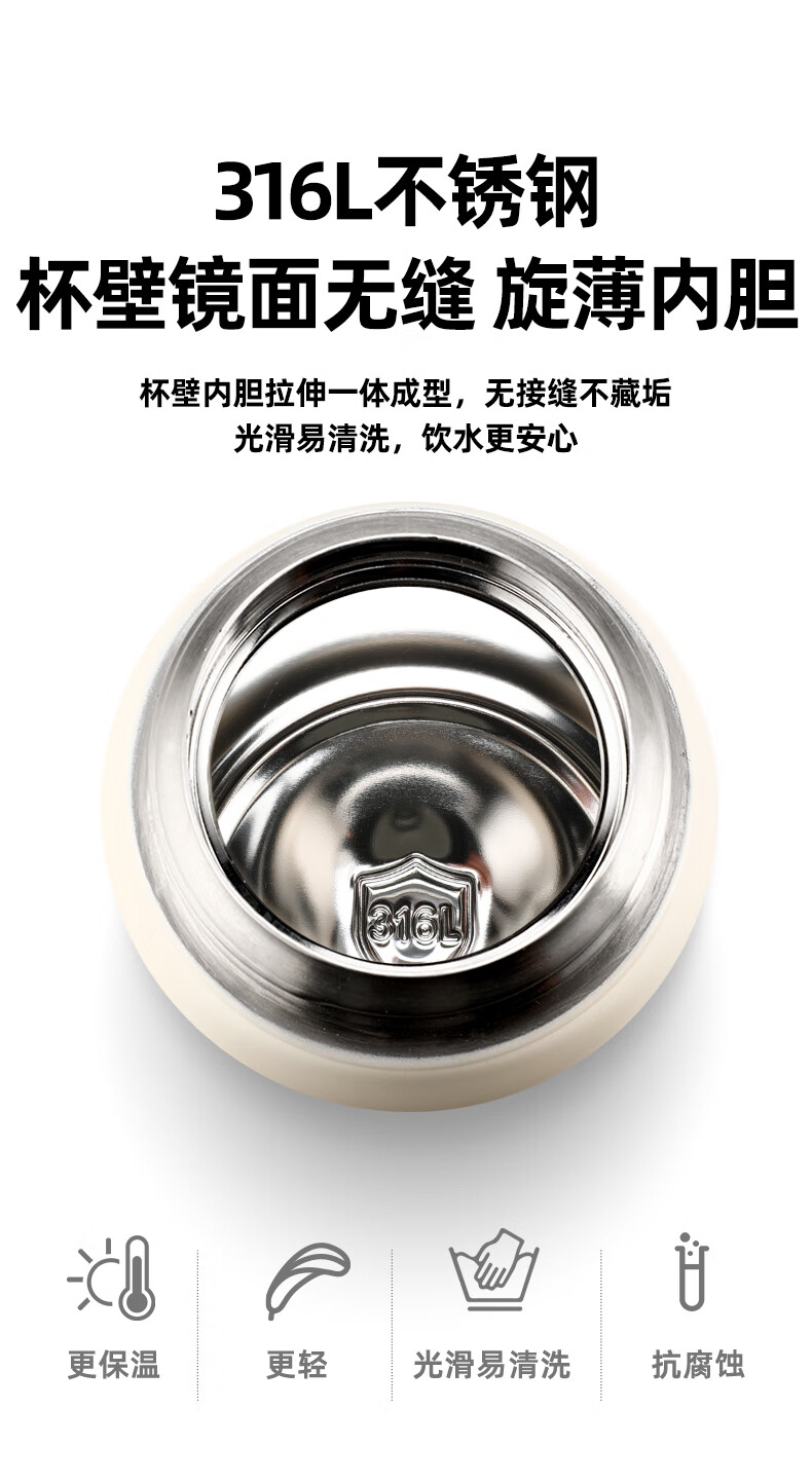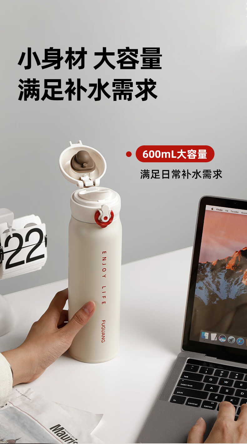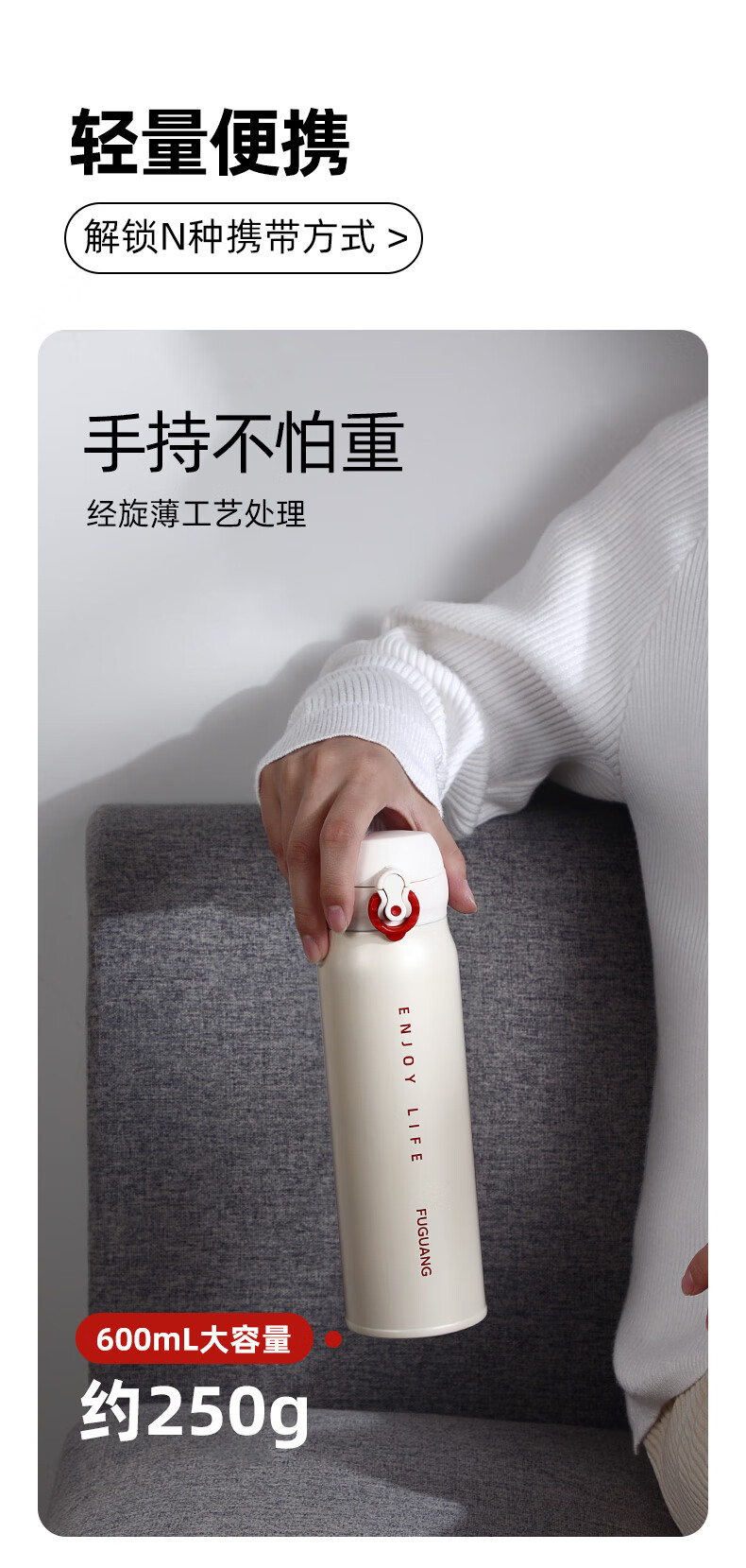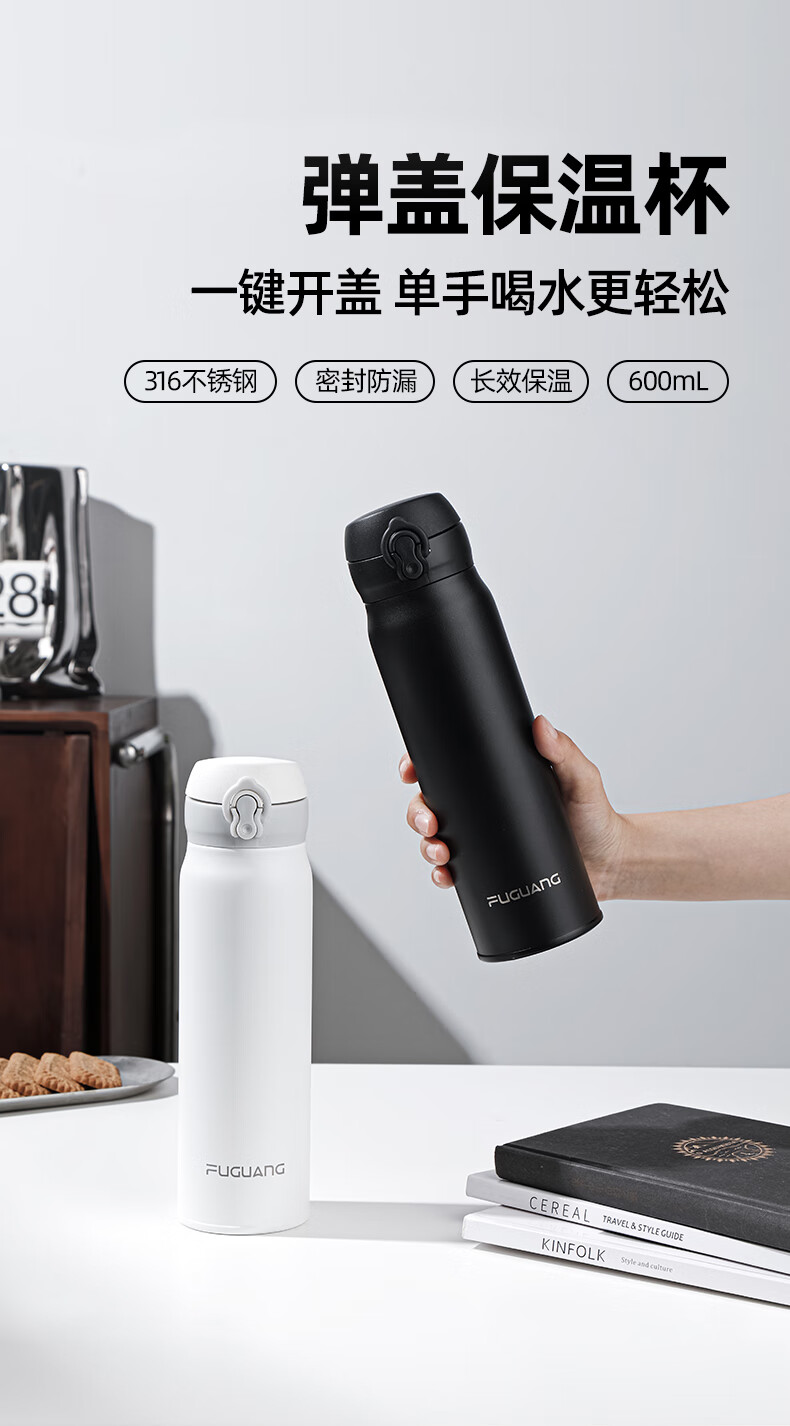 富光保温杯大容量女水杯学生316不锈钢便携喝水杯子中秋节生日礼物 雪山白【316不锈钢内胆】600ml