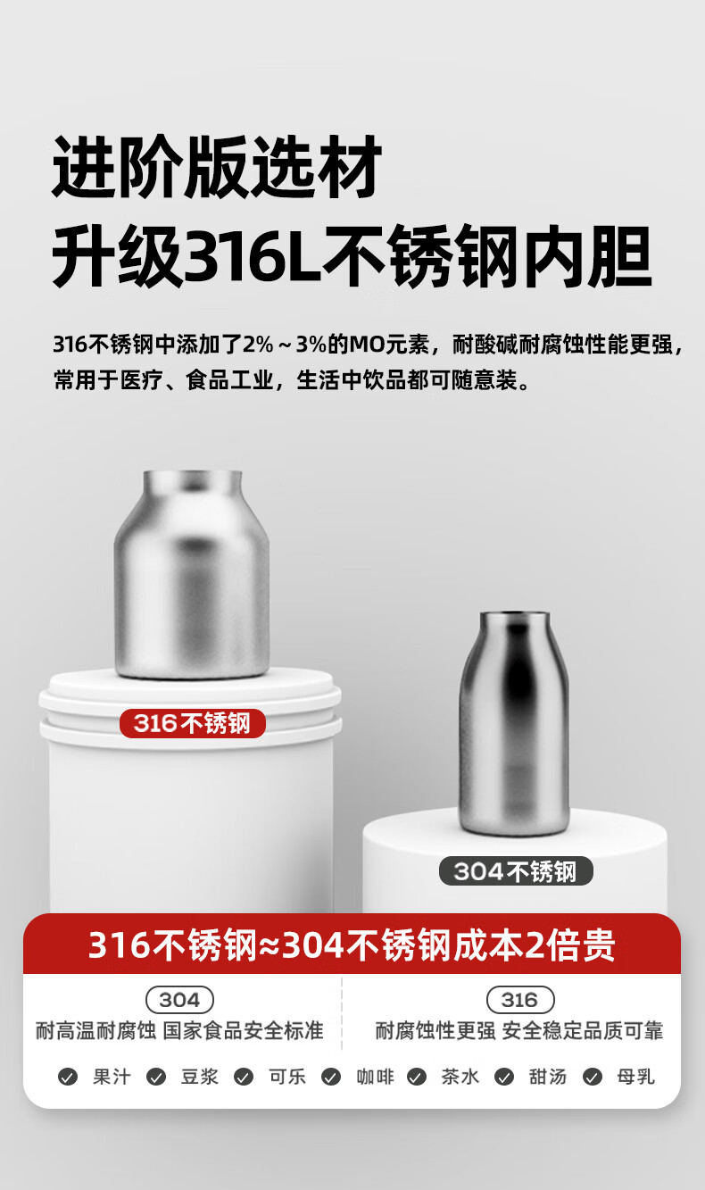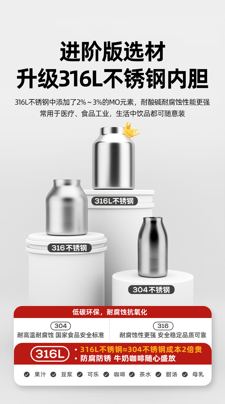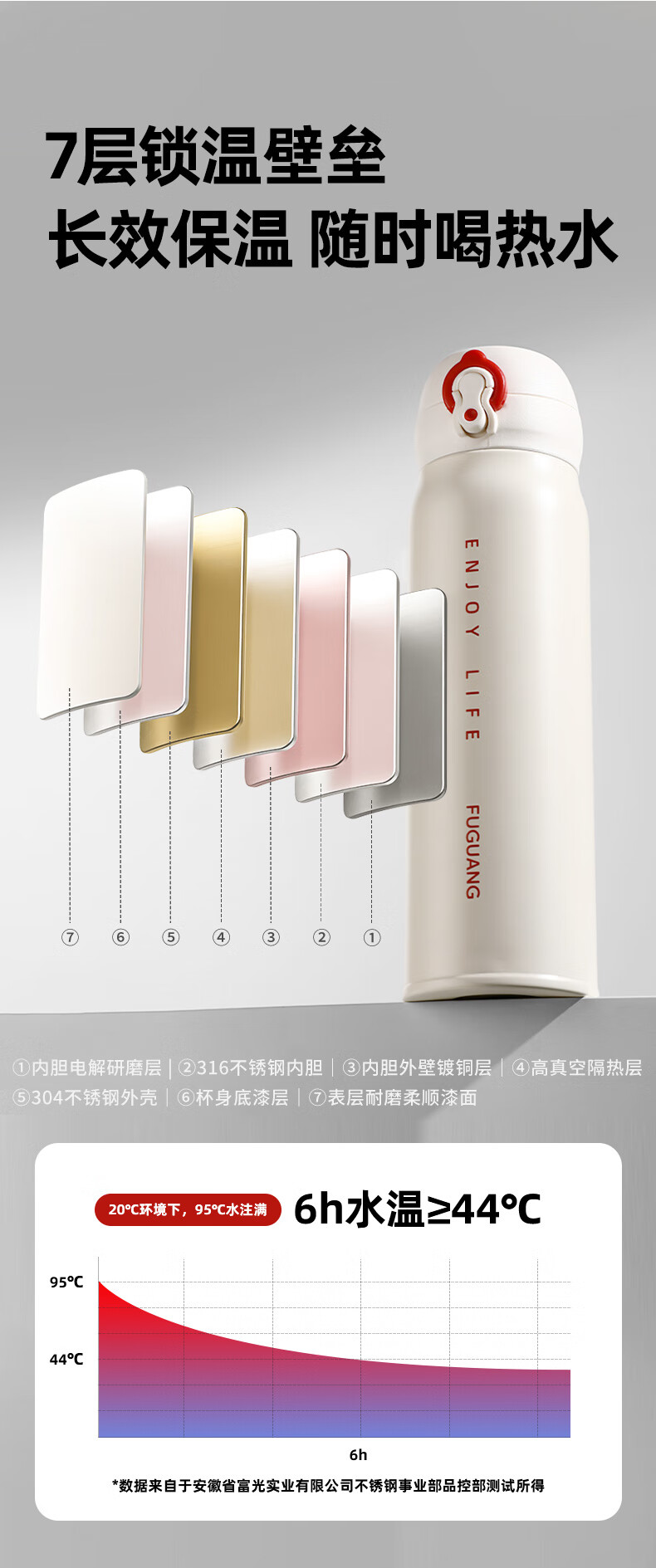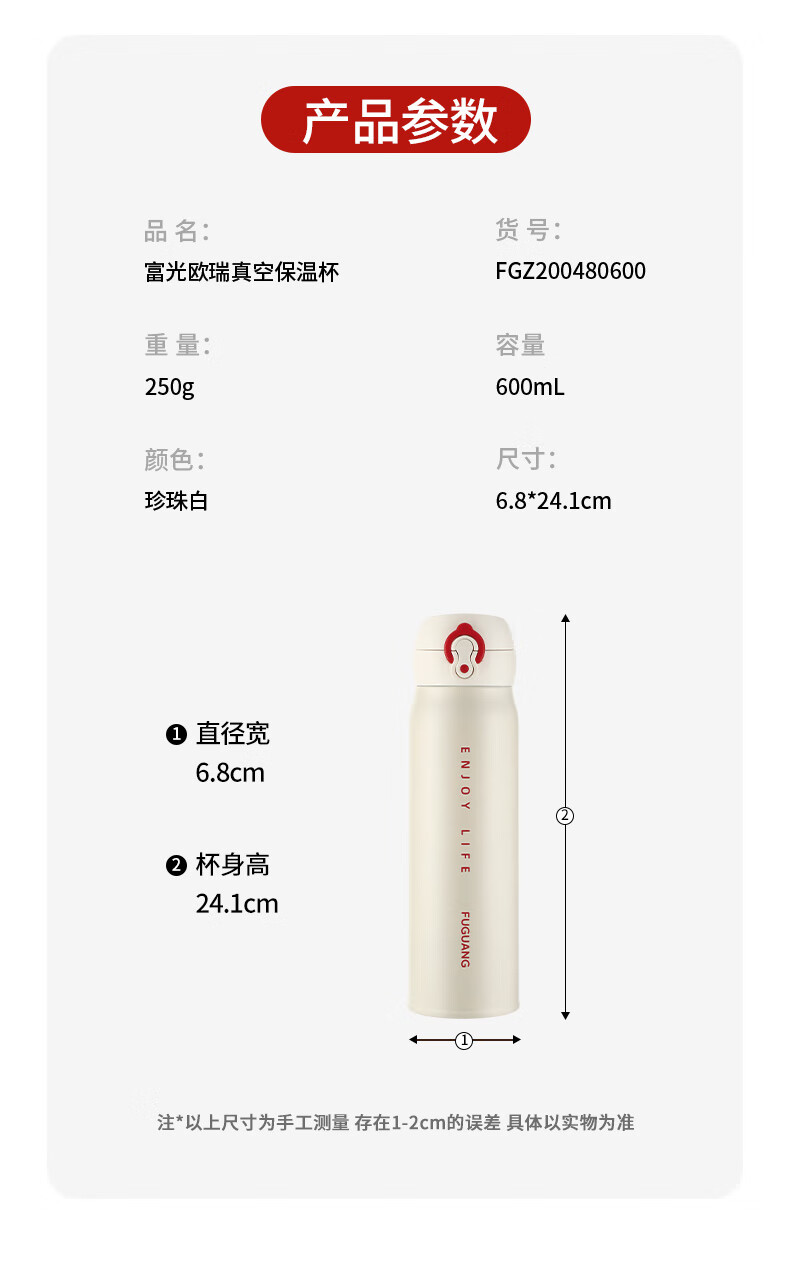 富光保温杯大容量女水杯学生316不锈钢便携喝水杯子中秋节生日礼物 雪山白【316不锈钢内胆】600ml