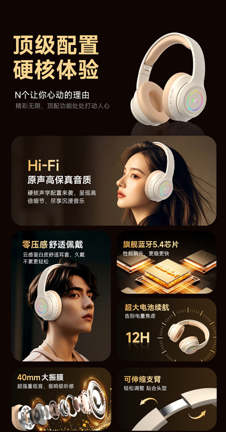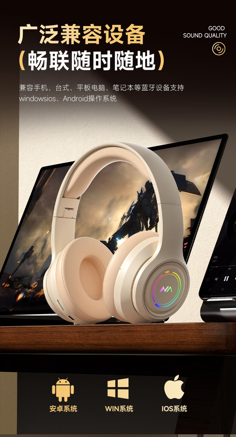 瞄音无线头戴式蓝牙耳机游戏运动高音质手机平板电脑通用耳麦2025最新款耳机头戴式电竞游戏可插卡耳机 蓝色 至尊版