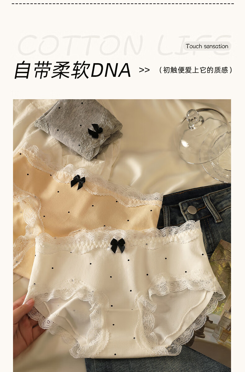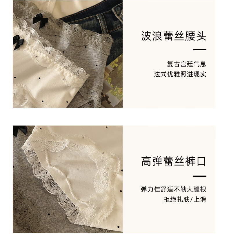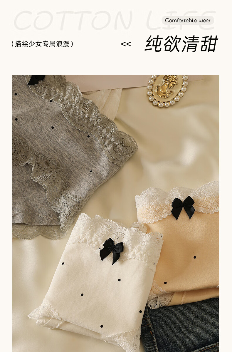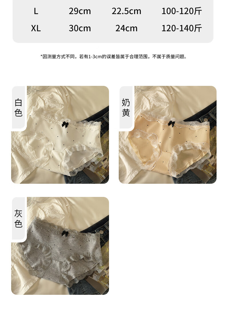 雅鹿蕾丝内裤女生女士纯棉三角裤2025新款性感10A级抑菌中腰短裤头 白色+灰色+奶黄 M1747 L (建议体重100-120斤)