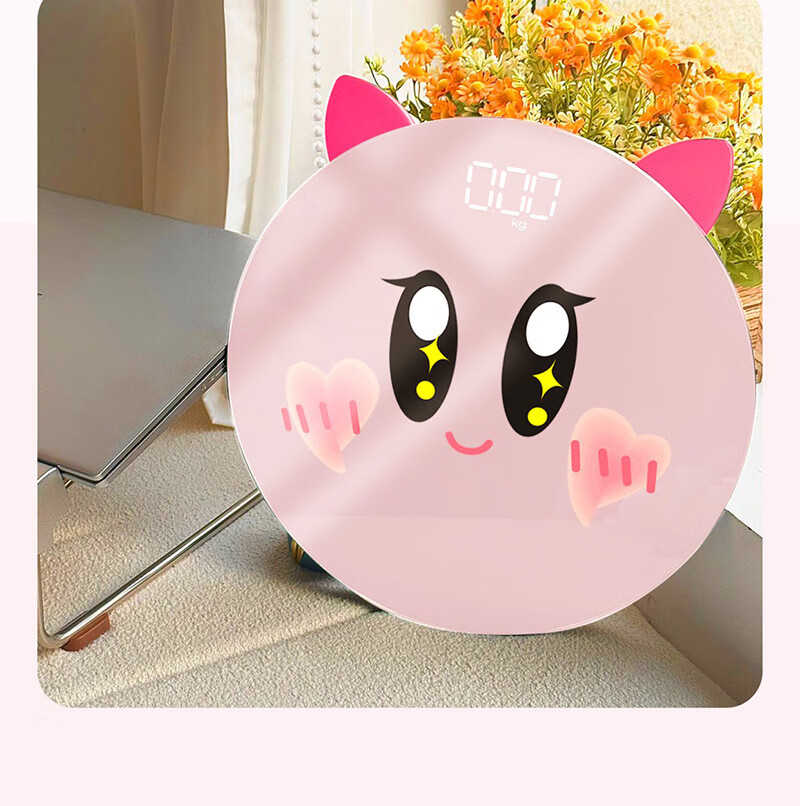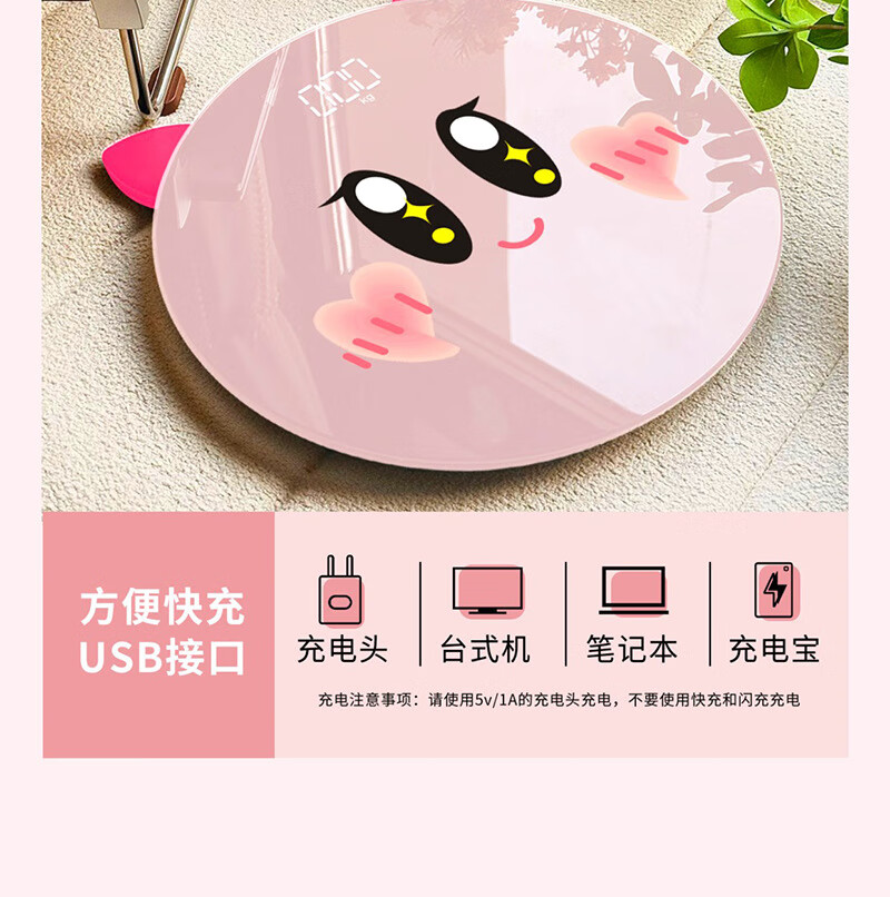 【优选好物】家用体重秤精准耐用小型宿舍卡通人体秤充 电池LCD星星卡比 28cm