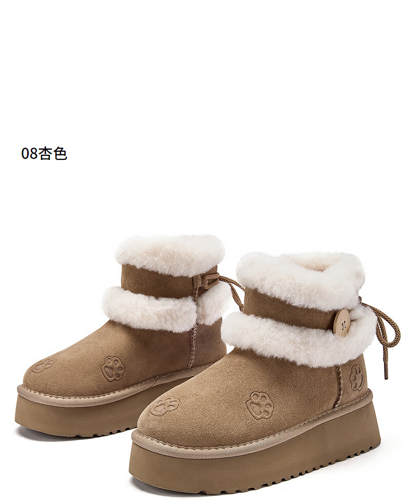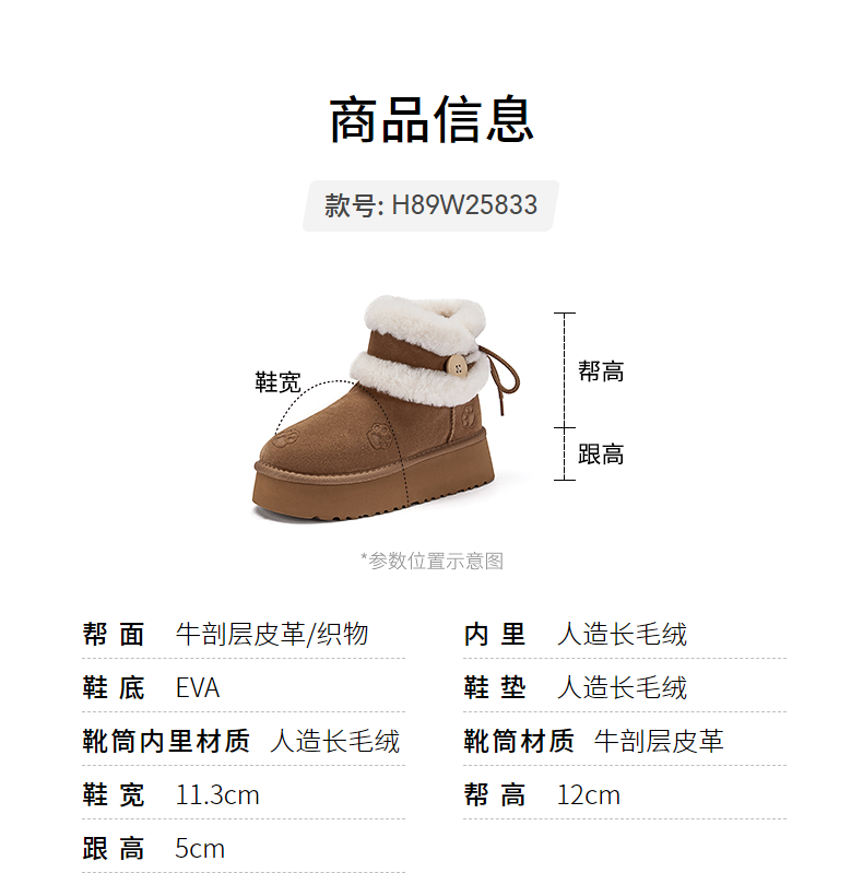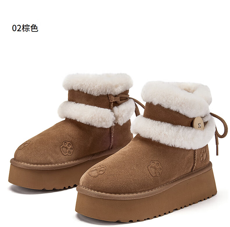 热风厚底雪地靴女2025年冬季新款加绒保暖棉鞋百搭增高短靴子女鞋 02棕色 34